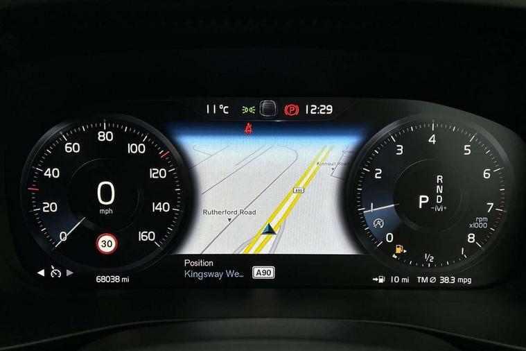 12.3" Active TFT crystal driver's instrument display, 9" centre console portrait touch screen, Adjustable steering wheel force, Bluetooth hands free telephone kit, Drive mode selector, Lane keep assist with driver alert control, Oncoming Lane Mitigation, Sensus navigation with European mapping and traffic information, Speed limiter, Speed sensitive steering, Voice activated control for key functions, Volvo on call, Sports chassis, DAB Digital radio, Steering wheel mounted remote controls, Adaptive brake lights with high level LED brake lights, Auto dimming interior mirror, Automatic headlamp levelling, Black stone door mirrors, Black stone roof, Colour coordinated auto folding and heated power door mirrors, Dark tinted windows for rear door side windows and cargo compartment, Dual integrated exhaust pipes with high gloss black surround, Front aluminium tread plates, Front and rear electric windows, High gloss black front and rear skid plate, High gloss black lower front bumper, High gloss black mesh front grille with high gloss black surround, High gloss black roof rails, High gloss black sensus surround deco, High gloss black window trim, Home safe and approach lighting, LED front fog lights, LED Headlights + Active high beam incorporating daytime running lights, Rain sensor with automatic windscreen wiper activation, Rear side wing doors, Rear wiper, Roof antenna, Roof spoiler, Visible VIN plate, 12V socket in front tunnel console and luggage compartment, 2 zone electronic climate control and rear air vent, 3 seat bench in 2nd row, 60/40 split folding rear seat, Ambient front door and instrumental panel lighting, Centre console cupholders and storage, Charcoal headlining, Driver's side lower dashboard credit card storage compartment, Front door pocket and front cupholder illumination, Front footwell illumination, Front headrests, Front reading light and theatre lighting, Front tunnel net pocket and integrated waste bin, Glovebox bag hook, Height/reach adjustable steering column, High gloss centre tunnel deco, Illuminated glovebox, Illuminated luggage compartment, Illuminated tailgate, Illuminated vanity mirrors, Isofix attachments on outer rear seats, Key integrated remote, Leather gearknob, Load protection net, Multi directional lumbar support, Multicolour theatre lights, Rear armrest / integral cup holders / storage tray, Rear coat hook, Rear reading and courtesy lights, Single front passenger seat, Sports Leather steering wheel, Sports pedals, Underfloor cargo storage, 3x3 point rear seatbelts, City safety includes pedestrian, cyclist and large animal detection and front collision warning with full auto brake, Drivers knee airbag, Dual stage driver/passenger airbags, Electronic parking brake with auto hold, First aid kit, Front and outer rear seatbelt reminder and pretensioners, Front seats SIPS airbags, Hill descent control, Hill start assist, Inflatable curtain, Passenger airbag cut-off device, Road sign information display, Run off Road Mitigation, Run off Road Protection, SIPS (Side Impact Protection System), Slippery road and hazard light alert, Stability and Traction Control with Spin control, Engine Drag Control and Corner Traction Control, Tyre pressure monitoring system, Vehicle deceleration control with Anti-lock Brake System, Electronic Brake Distribution and Emergency Brake Assist, Warning triangle, WHIPS whiplash protection system - front, Anti-theft alarm including immobiliser/volume sensor + level sensor, Care key with user defined top speed, Key integrated remote control central locking + fuel flap with deadlocking system and auto open/close power windows, Locking wheel nuts, Private locking for tailgate, Cutting edge aluminium inlay,