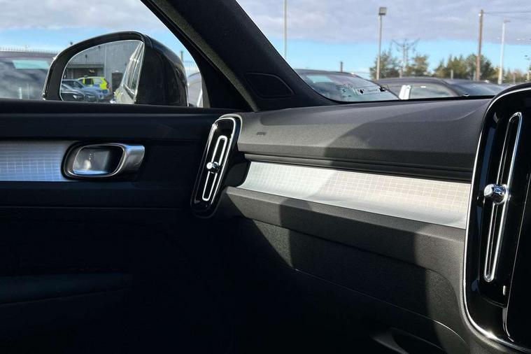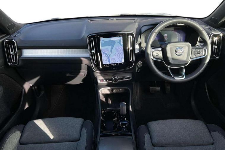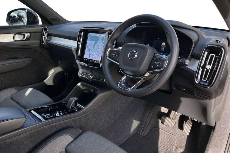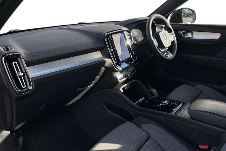 12.3" Progressive Driver Display, 360 degree surround view parking camera with side proximity sensors, 9" centre console portrait touch screen, Adjustable steering wheel force, Bluetooth hands free telephone kit, Cruise control, E-call, Front park assist, Google automatic services - Nav with google maps, apple carplay/android auto, voice recognition with google assistant, Hands free power tailgate, Lane keep assist with driver alert control, Oncoming Lane Mitigation, Rear park assist, Speed limiter, Speed sensitive steering, Wireless/Inductive Mobile Phone Charging, Dynamic chassis, DAB Digital radio, High performance sound, 8 speakers/250W, front USB and 2 rear type C USB, Steering wheel mounted remote controls, Adaptive brake lights with high level LED brake lights, Auto dimming feature for exterior door mirrors, Auto dimming interior mirror, Automatic headlamp levelling, Automatic LED Headlights + Active high beam incorporating daytime running lights, Front aluminium tread plates, Front and rear electric windows, High gloss black front and rear skid plate, High gloss black mesh front grille with high gloss black surround, High gloss black window trim, Home safe and approach lighting, Integrated roof rails in high gloss black, LED front fog lights, Puddle lights, Rain sensor with automatic windscreen wiper activation, Rear side wing doors, Rear wiper, Roof antenna, Roof spoiler, Visible VIN plate, 12V socket in front tunnel console and luggage compartment, 2-Zone electronic climate control with CleanZone air quality system and pollen filter, 3 seat bench in 2nd row, 3 Spoke tailored steering wheel with chrome trim, 60/40 versatile split folding rear seat, A-pillar parking ticket holder, Centre console cupholders and storage, Flexible load floor and grocery bag holder, Floor mats, Front door pocket, front cupholder, ambient front door, rear reading, rear courtesy, instrument panel and tailgate lighting, Front footwell illumination, Front headrests, Front reading light and theatre lighting, Front seat cushion extensions, Front tunnel pocket, Glovebox bag hook, Heated front seats, Height adjustable passenger seat, Height/reach adjustable steering column, High gloss centre tunnel deco, Illuminated glovebox, Illuminated luggage compartment, Illuminated vanity mirrors, Integrated waste bin, Isofix attachments on outer rear seats, Load protection net, Multi directional lumbar support, Power driver seat with memory + exterior mirrors memory, Rear armrest / integral cup holders / storage tray, Rear headrests, Single front passenger seat, Underfloor cargo storage, Climate pack without heated front seats - XC40, 3x3 point rear seatbelts, City safety with steering support with Pedestrian + cyclist + front collision warning with full auto brake and rear auto brake, Drivers knee airbag, Dual stage driver/passenger airbags, Electronic parking brake with auto hold, First aid kit, Front and outer rear seatbelt reminder and pretensioners, Front seats SIPS airbags, Hill descent control, Hill start assist, Inflatable curtain, Passenger airbag cut-off device, Power child locks on rear doors, Road sign information display, Run off Road Mitigation, Run off Road Protection, SIPS (Side Impact Protection System), Slippery road and hazard light alert, Stability and Traction Control with Spin control, Engine Drag Control and Corner Traction Control, Tyre pressure monitoring system, Vehicle deceleration control with Anti-lock Brake System, Electronic Brake Distribution and Emergency Brake Assist, Warning triangle, WHIPS whiplash protection system - front, Anti-theft alarm including immobiliser/volume sensor + level sensor, Key integrated remote control central locking + fuel flap with deadlocking system and auto open/close power windows, Keyless drive includes keyless entry and keyless start, Locking wheel nuts,