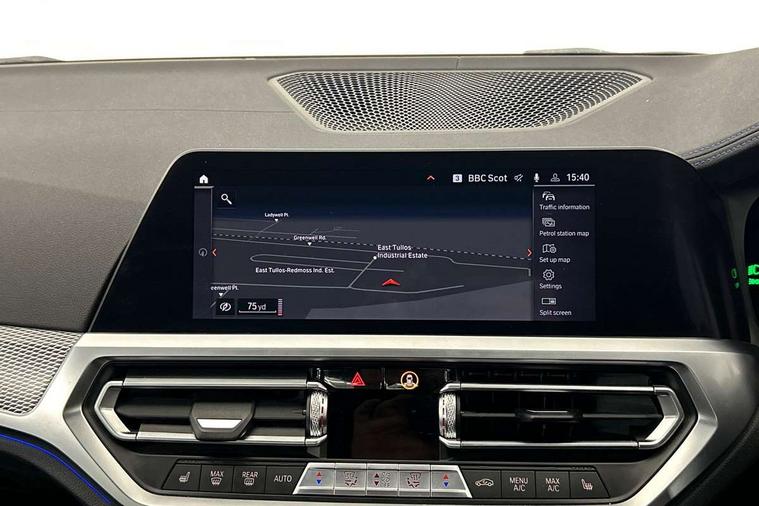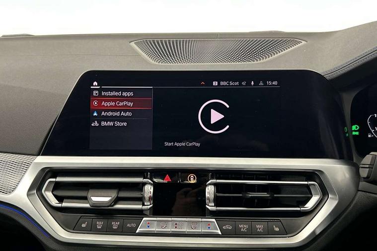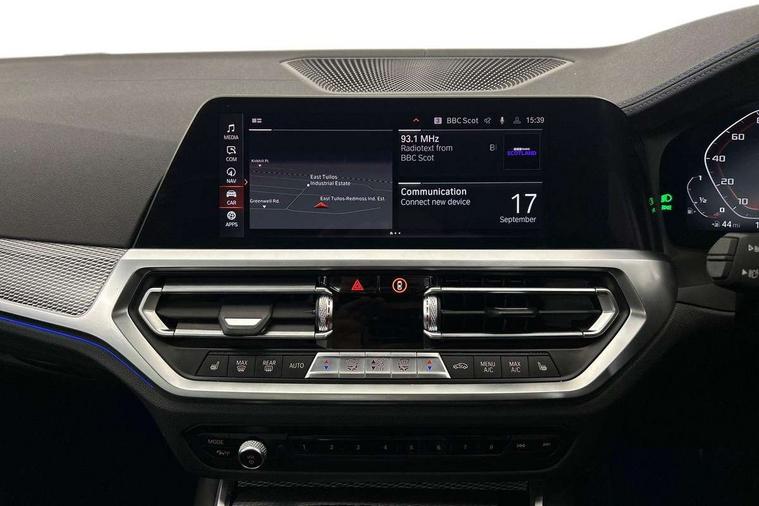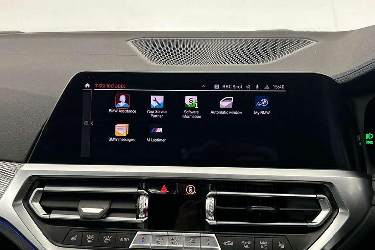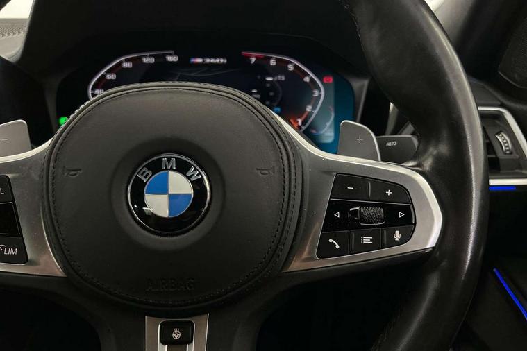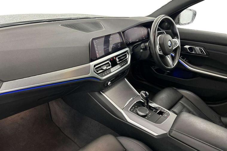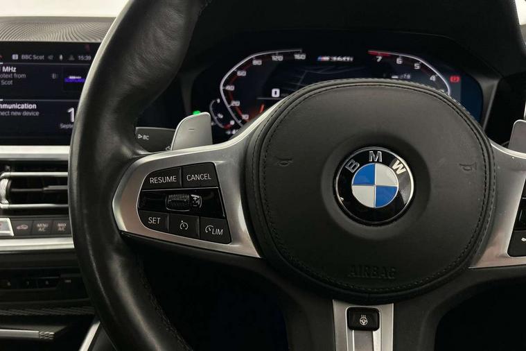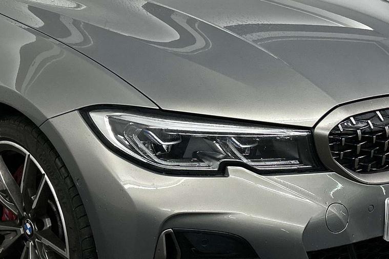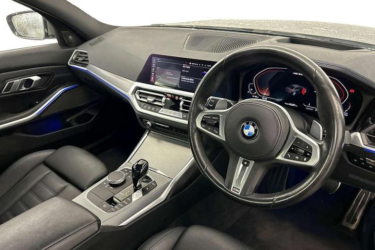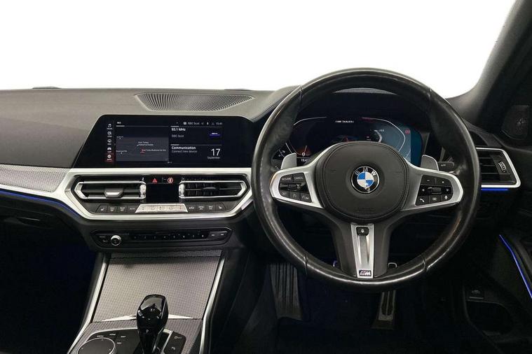 Active guard plus, Attentiveness assist, Auto start-stop, BMW Live Cockpit Professional Nav with 12.3" instrument display + 10.25" display, Intelligent Voice Assist, BMW OS 7, HDD, 2USB, 4G LTE connect, BMW service history, BMW Teleservices, Brake pad wear indicator in front and rear, Check Control warning system for monitoring of lights and door/luggage compartment open warning, Condition based service, Electric power steering with Servotronic steering optimised at all speed ranges, iDrive controller on centre console, Instrument cluster with speedometer with mph readout, tachometer, fuel gauge and oil temperature gauge, Integrated owners handbook, Oil sensor for level and grade, warning by check control system, On board computer - average speed+fuel consumption, service interval, clock/date, odometer/trip meter, outside temperature display and ice warning, Optimum shift indicator, Personal Profile - automatic lock when driving away selectable, Variable sport steering, 48V Mild hybrid technology, Adaptive M suspension, Balanced 50/50 weight distribution, Battery cut-out switch, Drive performance control - ECO PRO, comfort and sport modes, Larger capacity fuel tank, M Sport differential, Petrol Particulate Filter, Sport automatic transmission with steering-wheel mounted gearshift paddles and launch control, Stroke dependent dampers, DAB tuner, Electronic service booklet, 2 x square exhaust tailpipes, Acoustic glazing, Automatic headlight beam throw control with load dependent regulating reaction, dynamic compensation of braking dive and acceleration squat, Black roof mouldings, Body colour door handles, Body colour fuel filler flap, Dynamic brake lights, Electric windows - front and rear, with open/close fingertip control, anti-trap facility and comfort closing, Exterior mirrors - electrically folding with anti-dazzle, Fading support, Front and rear bumper system with replaceable deformation elements, Front black door sill finishers with BMW designation, Green tinted heat protection glazing, High gloss shadow line exterior trim, Interior rear view electrochromatic mirror with automatic anti dazzle function, LED daytime running lights, LED front fog lights, Lightweight engineering, M designation on front side panels, left and right, M rear spoiler, Matt black exterior B pillar, Rain sensor with automatic headlight activation, Shark fin antenna, Sun protection glass, Two part LED tailights in L-shape with components in smoked glass, brake light, LED turn indicator and rear fog light, Visible VIN plate, Welcome lights in interior and door handle area, Windscreen wipers with integrated washing jets, xDrive designation on left tailgate, 12V power socket in front storage compartment, 2 front cupholder in centre console with clamping elements and matt black inlay, 3 rear seats with non folding headrests with 3 point seat belts, 3 zone automatic air conditioning, 4 pieces lashing eyelets in luggage compartment, 40:20:40 split folding rear seat with loading system, Ambient lighting with welcome carpet light, Anthracite headlining, Armrest integrated in front and rear door trim + front centre console armrest, Centred top Luggage compartment lights, Four grab handles integrated in roof lining, Front and rear door exit lighting (left / right), Front and rear door pockets, Front and rear reading lights, Front and rear velour floor mats, Front head restraints, Heated driver and front passenger seats, Height adjustable mechanically and infinitely variable steering column, Illuminated armrest storage compartment, Illuminated glove compartment with separate small compartment, Interior lighting - front centre over interior mirror with soft light, rear centre and front and rear footwell lighting, M Sport multifunction leather steering wheel, Make-up mirror lights, Rear centre armrest with 2 cupholders, Rear centre console with storage compartment and ventilation grille, Sunvisors with vanity mirrors and ticket pocket, Toolkit located in luggage compartment, Connected pack professional - 3 Series Saloon/Touring, M Aerodynamics pack - 3 Series Saloon/Touring, 2 tone horn, BMW emergency call, Brake energy regeneration, Braking pre-tensioning, Child proof locking system in rear door, Child seat ISOFIX attachment rear outer seats, Coasting in idle in ECO PRO mode, Crash sensor activating of airbags, Unlocking doors, hazard warning lights, fuel cut off, interior lighting+activation of safety battery terminal clamp, Driver and front passenger side airbags, integrated in the door side seat backrest bolsters for all seat variants, Driver/Front Passenger airbags, Dry braking, Dynamic brake control, Dynamic stability control + (DSC+) - Anti-lock Braking System (ABS) with brake assist and cornering brake control + Automatic Stability Control (ASC), Dynamic Traction Control - DTC, Electromechanical parking brake including automatic hold function and automatic release of the parking brake when pulling away, Electronic differential lock control (EDLC), Front passenger manual airbag deactivation, Head airbags for all 4 outer seats, Hill start assist, M sport seatbelt, Seat belt security check for driver and front passenger, Side impact protection, Three 3 point seat belts on all seats including front belt stopper, pyrotechnic belt tensioners and belt force limiters, Tyre pressure monitoring with three level warning strategy, Ventilated front and rear disc brakes, Warning triangle and first aid kit, Alarm system (Thatcham 1) with remote control and electronic engine immobiliser, Central locking switch for all doors, fuel filler cap and luggage compartment, Remote control with integrated key one button open/close vehicle and windows, sole opening of the luggage compartment lid and panic mode, Start/stop button with Comfort Go keyless engine start and auto Start/stop deactivation button, Vehicle key with M specific designation, Reduced rolling resistance tyres,