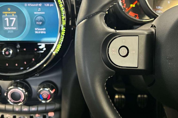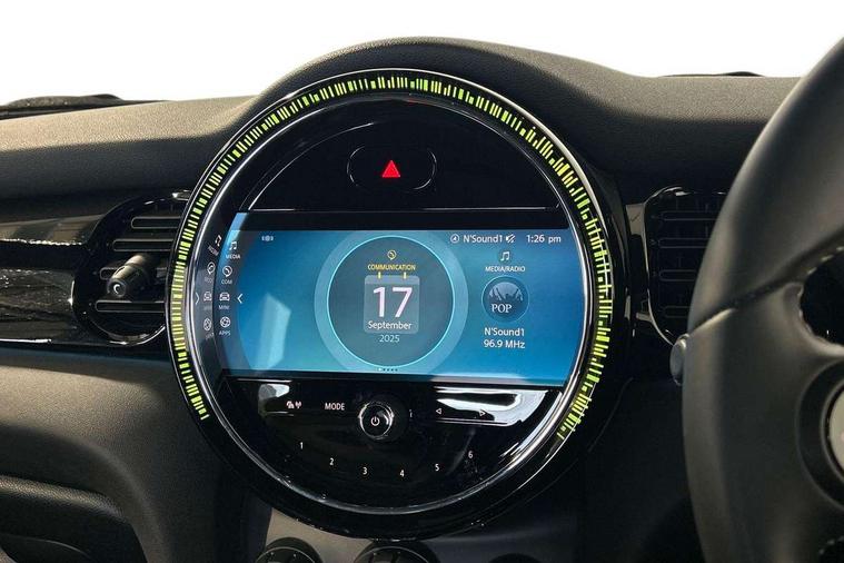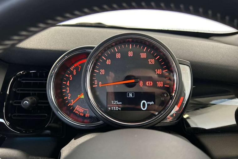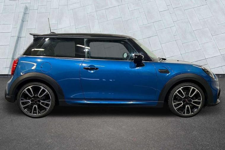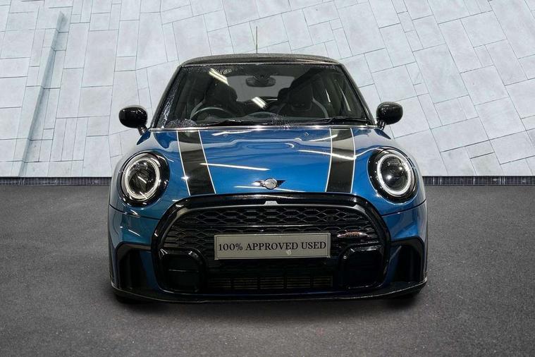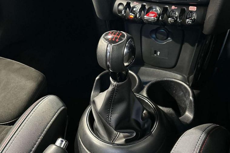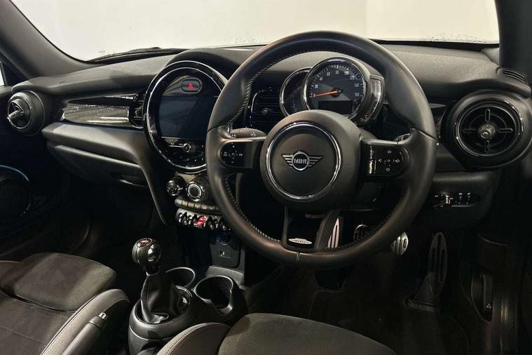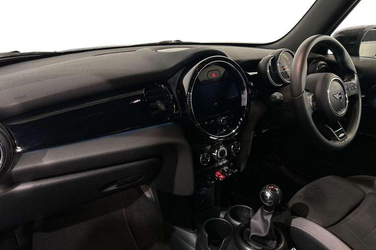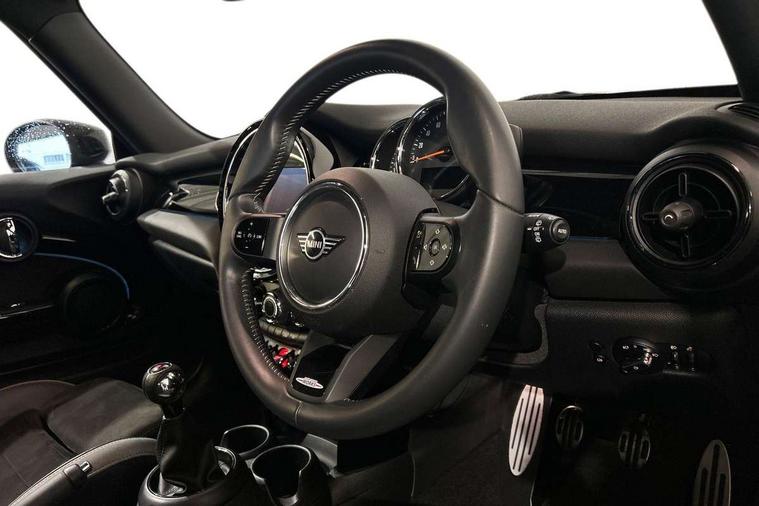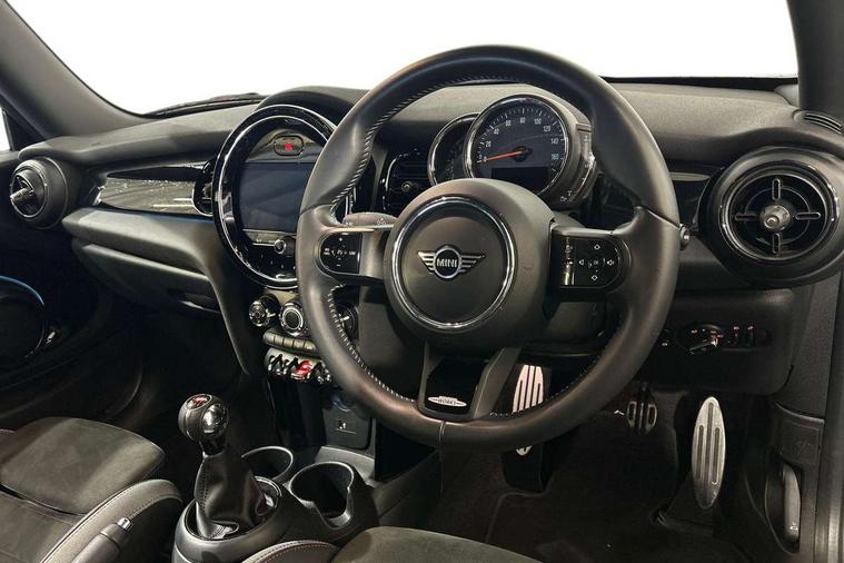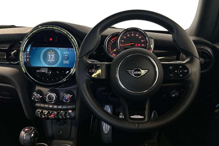 Automatic start/stop function with brake energy recuperation, Compatible mobile phone bluetooth with audio streaming, Cruise control with brake assist, Electro-mechanical speed dependant steering assistance, Flexible car sharing preparation, Instrument cluster, MINI Driving Modes - centre toggle switch to control driving setting (sport, mid and green), Mini E-call, MINI TeleServices, On board computer, Rear park distance control, Service interval indicator, 6 Speed manual transmission including gear change indicator display, Adaptive suspension, Double Vanos system, Fully variable valve control, High precision injection, Performance Control, 4 speakers in front door trims and underneath front seats, 8.8" touchscreen with LED ring, FM tuner and DAB digital radio, Automatic headlight activation switch, Body colour fuel filler cap, Chrome border high gloss black slats radiator grille, Dynamic brake lights, Electric front windows, Exhaust tailpipe on left with chrome finisher, Heated rear window, Heated windscreen washer jets, JCW Aerodynamic kit - Front and rear bumpers with sporty JCW styling and part-painted side sills with MINI John Cooper Works door sill finishers, John Cooper Works rear spoiler, LED headlight with closed ring and daytime driving lights, Metal door sill strips with MINI imprint, Model logo Cooper on right of tailgate, Rain sensor window wipers, Rear fog lights, Rear LED lights with union jack design, Rear window wiper, Side scuttle panel with integrated indicator, Sun/heat protection glass, White indicator lenses, 12V Accessory socket in centre console, 4 lashing eyes in luggage compartment, 60/40 split folding rear seat, Anthracite headliner including grab handles and clothes hooks, Carbon black colour line - Knee roll and door armrest, Chrome interior highlights, Cupholders, Front and rear isofix with front passenger airbag deactivation, Glove compartment, Height and length steering column adjustment, Interior lighting with 12 different colours across the dashboard, underneath door bezel with illuminated laser-engraved design on central display, JCW Sport seats with integrated headrests, adjustable thigh support and John Cooper Works logo, Leatherette gearshift lever and handbrake gaiters, LED reading lights, vanity mirror lights, front foot well light and spotlight on front seats, Manual air conditioning, Mechanical seat adjustment - forward/back & backrest for front seats and driver seat height adjust, Multifunction steering wheel, Passenger seat height adjuster, Storage compartments in doors, Sunvisors with vanity mirrors, Velour floor mats, Walknappa leather steering wheel with grey seam and John Cooper Works badge on Piano Black lower steering wheel spoke, Piano black exterior pack - Mini Hatchback Cooper, 3 point seatbelts on all four seats, 6 Airbags - front, side, head and seat belt tensioners, Anti-lock braking system (ABS), DSC - Dynamic Stability Control, Front and rear disc brakes, Single tone fanfare horn, Tyre pressure monitoring system, Alarm system with tilt sensor, monitoring doors, bonnet interior and tailgate, Electronic vehicle immobiliser, Start/stop toggle with keyless go, Piano black interior trim, Tool kit,