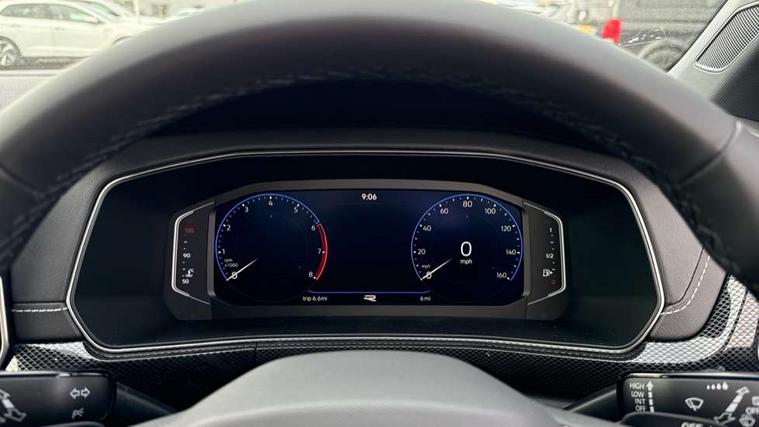 'Lights On' Reminder warning buzzer, 10.25" Digital cockpit pro, Advanced driver attention and drowsiness monitor, Car information display, Driver profile selection including ECO function, Dynamic road sign display, E-Sim card for online connectivity, eCall emergency call system, Front and rear parking sensors, Front assist, forward collision warning, autonomous emergency braking and speed limiter, Low washer fluid warning light, Multifunction computer with visual gear change recommendation for fuel consumption, Multifunction front facing camera for distance control, Operating permit alteration, Power assisted steering, Predictive adaptive cruise control, Preparation for navigation system with media and internet package, Preparation for We connect and We connect plus, Semi-automated driving assistance, travel assist including lane keeping system Lane Assist and emergency assisst, Side assist, Speedo, rev counter, electronic odometer, trip, service interval display, exterior temperature and fuel gauge, Warning sound and light for doors and tailgate open, Warning sound and light for front seatbelts unfastened, Wireless Car net app connect with Apple CarPlay, combined functionality of Apple CarPlay/Android Auto and MirrorLink, Wireless charging, Misfuel prevention device, Start-stop system with battery regeneration (recuperation - energy recovery during braking), 2 USB C ports in front, 2 USB charging sockets on the centre console in the rear charging capacity upto 45W, Diversity antenna for FM reception, Music playback - MP3, WMA and AAC files, Radio, Automatic dimming interior rear view mirror, Automatic hazard lights activation under emergency braking, Automatic headlight control with LED separate daytime running light and coming home and leaving home feature, Body colour door handles, Body coloured bumpers, Dynamic headlight range control with self adjusting whilst driving, Electric folding door mirror, adjustable, heated with front passenger exterior mirror lowering function, Exterior mirrors convex on the left and aspherical on the right, Front and rear electric windows, Front door sill protectors with R-Line logo, Galvanised body, Heat insulating and laminated safety glass windshield, Heat insulating darkened glass in side and rear windows, High Beam Assist, automatic sensing for switching between dipped and main beam, LED rear combination lights, LED third brake light, Lower door sills and door pillars in black, Rain sensor, Rear fog light on one side, reversing light on both sides, Rear side wing doors, Rear window aerial, Rear window wiper with intermittent control, Reflectors in all doors, Scuff plates, Tailgate with integrated roof spoiler, 12V Accessory socket in centre console, 2 Front and rear reading lights incorporating LED technology, 3 rear head restraints, 3 seat bench in 2nd row, 60/40 split folding rear seat backrest, Air care climatronic 2 zone air conditioning system, Ambient lighting, Brushed stainless steel pedals, Chrome plated radiator grille inserts, air vent surrounds and light switch surrounds, Cloth upholstery, Comfort front sport seats, Door and side trim panel, Driver and front passenger sunvisor with vanity mirror, Dust and pollen filter, Front + rear carpet mats, Front centre armrest with storage compartment, Front footwell illumination, Front seat back storage pockets, Glove compartment door with light, Heated front seats, Heating and fresh air system with 4 stage blower, Height/reach adjust steering wheel, Instrument lighting white adjustable panel illumination, Interior light with switch off delay and dimmer, Isofix anchors for child seats on outer rear seats and front passenger seats, Leather gearshift handle, Leather wrapped multifunction steering wheel, Luggage compartment floor, Luggage compartment lighting, Manual front seats with height adjustment, Padded dashboard, Removable luggage compartment cover, Single front passenger seat, Storage compartment in drivers and front passengers door, Titanium black roof lining, Unsplit sliding rear seat bench, Without drawers under front seats, 3 point outer rear seat belts with ECE label, 3 Point seatbelt for centre rear seat, Anti-lock Braking System (ABS) with Hydraulic Brake Assist (HBA), Automatic post collision braking system, Disc brakes in front, Disc brakes in rear, Driver and front passenger safety-optimised head restraints, Drivers and Front Passengers airbags with front passengers airbag deactivation switch, ESC with EDL and ASR (traction control), Extended and predictive pedestrian/cyclist protection, Front and rear passenger curtain airbag system including front side airbags, Height adjustable front 3 point seatbelts + pretensioners, Hill start assist, Pre crash preventive occupant protection, Proactive passenger protection system in combination with front assist, Rear door child safety locks, Rigid safety cell with front and rear crumple zones, Single tone horn, Tyre pressure loss indicator, Volkswagen roadside assistance, Alarm with interior protection, Anti theft alarm system, Electronic engine immobiliser, Remote tailgate unlocking using key fob, Titanium Black Decorative inserts - R Line, Low rolling resistance tyres,