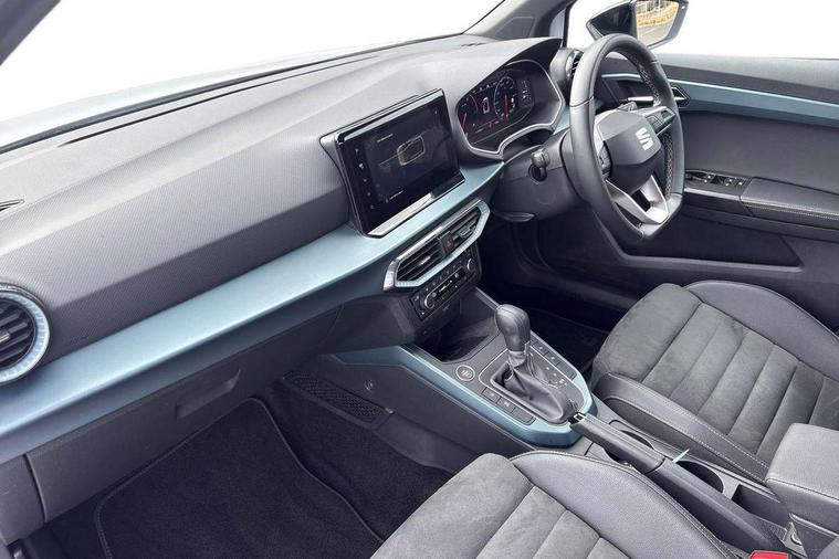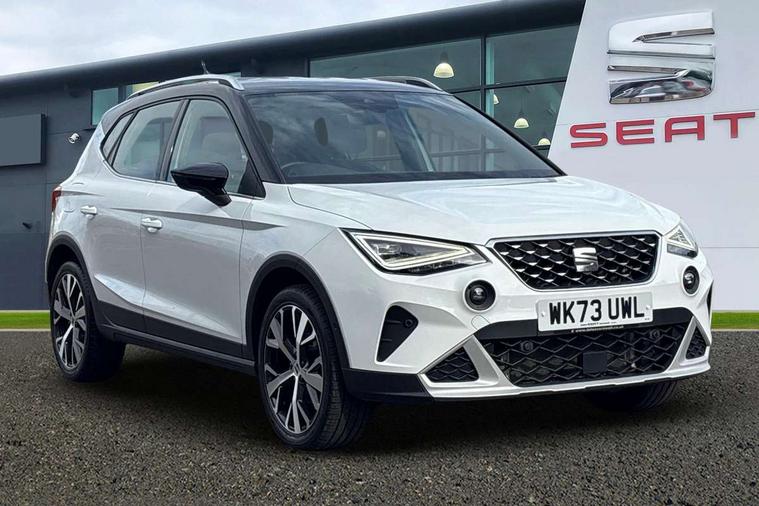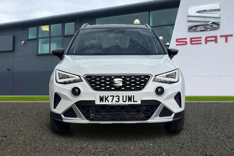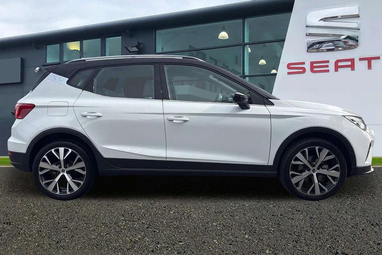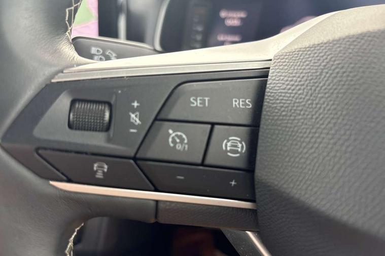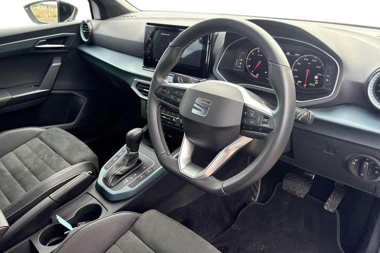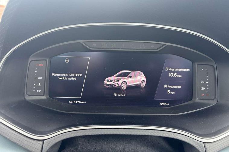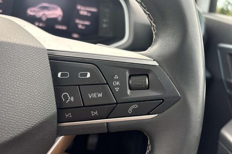 'Lights On' Reminder warning buzzer, 10" Digital cockpit, Digital clock, E-call, Electric speed sensitive power steering, Front parking sensor, Full Link Smartphone Integration with Mirror Link, Apple Car Play, Google Android Auto with USB Type C cable for Apple and Android compatibility, Low fuel warning light, Outside temperature display, Park assist system, Rear parking sensor, Rear view camera, RPM counter, Seat connect with safety, service, remote and online, Trip computer, Wireless phone charger, 9.2" colour touchscreen with navigation system, voice control and USB port (type c), Bluetooth interface for hands free and audio streaming, DAB digital radio and AM/FM radio, Steering wheel mounted audio controls, Anti theft roof antenna, Auto dimming interior rear view mirror, Automatic activation of hazard warning lights, Body coloured bumpers, Body coloured door handle inserts, Chrome roof rails and window surrounds, Electric front/rear windows, Electrically adjustable, heated and folding door mirrors, Front fog lights with cornering function and rear fog light, FULL LED automatic headlights with dynamic headlight range control, coming and leaving home, LED daytime running lights, Hidden exhaust pipe, LED rear tail lights and licence plate lights, Protective side mouldings, Rain sensing wipers, Rear side wing doors, Rear spoiler, Rear window wash/wipe, Roof colour door mirrors, Third brake light, Visible VIN plate, Windshield wiper with intermittent control and potentiometer, 2 cupholders, 3 seat bench in 2nd row, 60/40 split folding rear seat, Aircare filter, Black interior roof, Double boot floor, Driver sunvisor with covered mirror + card holder, Dual zone climate control, Flat bottomed leather steering wheel/gear knob/handbrake, Front comfort seats, Front courtesy light with front reading lights, Front seat back storage pockets, Gear shift indicator, Heated front seats, Height adjustable front seats, Height/reach adjustable steering column, Illuminated boot, Instrument lighting with brightness control, Interior ambient lighting, Interior light in footwell, central console and door panel, ISOFIX points in outer rear seats with top tether anchorage points, Leather steering wheel/gear knob/handbrake, Microsuede cloth upholstery, Passenger sunvisor with vanity mirror, Single front passenger seat, Storage net on centre console, Two front and three rear height adjustable headrests, Interior chrome pack - Arona, Storage pack - Arona, 3 point seatbelts on all rear seats, ABS, Active front headrests, Child locks on rear doors, Driver and front passenger airbags with front passenger airbag de activation, front side and curtain airbags, Electronic stability control, Emergency Brake Assist (EBA) and front assist, Front and rear seatbelt reminder, Hill hold control, Multi-Collision braking, Tiredness recognition system, Traction control, Tyre pressure monitoring system, Alarm with back-up horn, Electronic engine immobiliser, KESSY Keyless entry and go, Locking wheel bolts, Remote central locking + deadlocks, Tow away protection, Titan black dashboard, 18" Performance Nuclear grey alloy wheels,