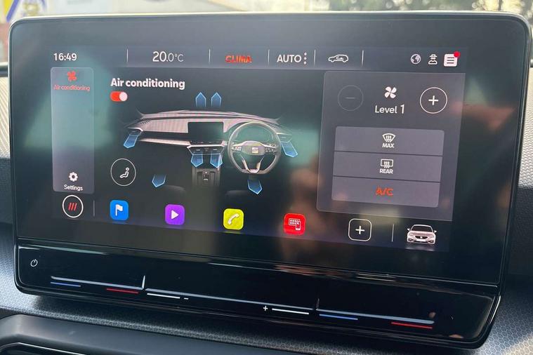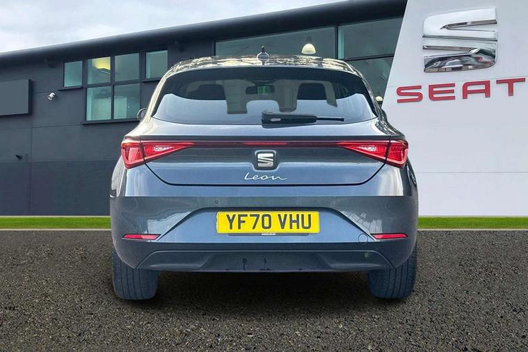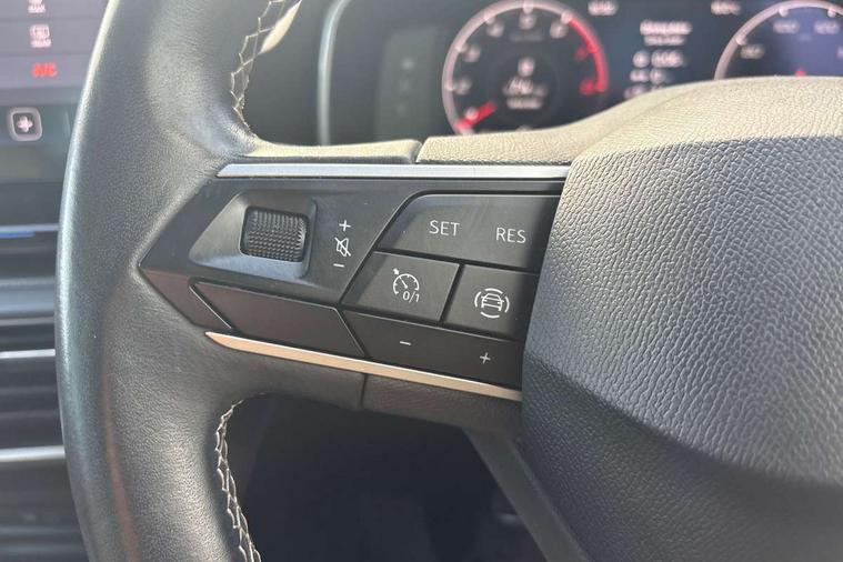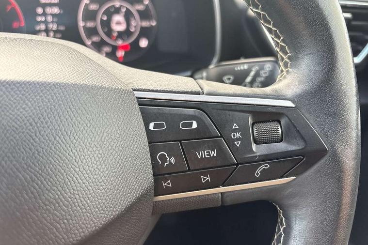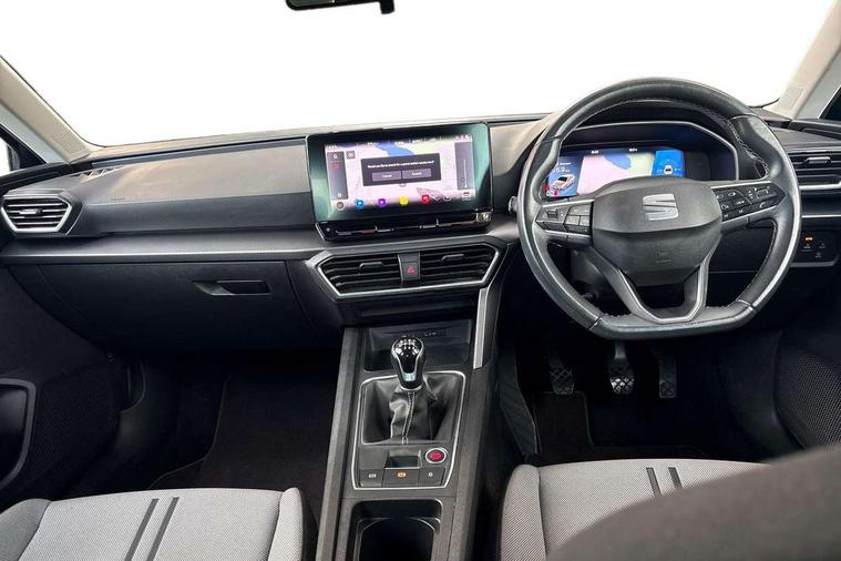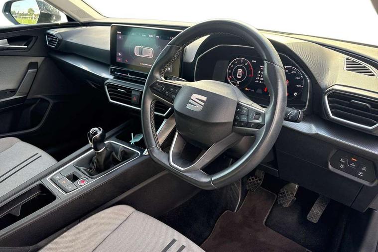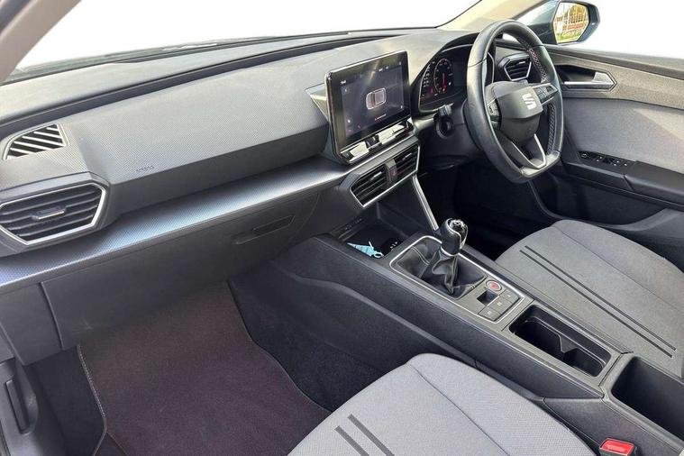 Cruise control with speed limiter, Digital cockpit, Front assist with forward collision warning braking reaction to vehicles, pedestrians and cyclists, Full link smartphone integration with Mirror Link, wireless Apple CarPlay and wired Google Android Auto, Lane keeping system, Lockable tailgate, Park assist (inc front/rear parking sensors), Power assisted speed sensitive electro-mechanical steering, RPM, trip computer, outside temp gauge, instrument light brightness, low fuel warning light, lights on reminder, gearshift indicator, Service interval indicator, Start/stop system with regenerative braking, Standard suspension, XDS electronic differential lock and dynamic traction support, Auxiliary input socket, Body colour door handles, Body coloured bumpers, Body coloured exterior mirrors with integrated LED indicators, Dark tinted rear windows, Electric front/rear windows, Electrically adjustable and heated door mirrors, LED front fog lamps with cornering function, LED headlights and LED tail lights, LED rear fog lamp, Manual dimming rear view mirror, Rear wash/wipe, Separate daytime running light with automatic headlight control, 12v power point in centre console, 60/40 split rear bench seat, Air conditioning, Cloth upholstery, Driver seat lumbar adjustment, Driver/passenger manual seat height adjustment, Dust/pollen filter, Folding boot cover, Front and rear height adjustable headrests, Front and rear reading lights X 4, Front seatback storage pockets, Height/reach adjust steering wheel, Interior lighting with LED lighting in sunvisor, glovebox and rear headlining, ISOFIX points in outer rear seats with top tether anchorage points, Leather flat bottomed, perforated steering wheel and leather gearstick, Luggage tie-down hooks, Sunvisors with covered illuminated mirror, Media system plus with navigation - Leon SE, 3 point seatbelts on all rear seats, ABS, Brake control system - ESC and brake booster, Child proof door locks, Driver and front passenger airbags with front passenger airbag de-activation, front side and curtain airbags, Electronic parking brake, Extended safety system - seat belt tensioner, window closure and hazard lights, Hill hold control, Rear disc brakes, Seat belt reminder for front and rear seats, Tiredness recognition system, driver alert system, Tyre pressure monitoring system, Anti theft alarm system with interior monitoring in cab, backup horn and towing protection, KESSY Go (Keyless start), Locking wheel bolts, Chrome interior detailing, 17" Dynamic tri-spoke alloy wheels with 91W tyres, Tool kit,