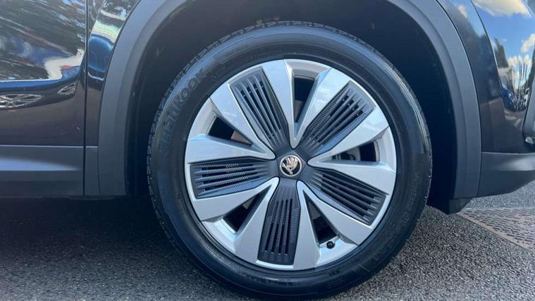13" satellite navigation touchscreen display, Blind spot detection with door exit warning, Bluetooth system, ChatGPT functionality, Drive mode selector, Driver alert with fatigue sensor, Driver drowsiness alert system, Dry display cleaner, e call+, Front cross traffic assist, Lane assist, PAS, Rear traffic assist, Tailgate unlocking from outside, Traffic sign recognition, USB C Port x 2 in front centre console, Virtual Cockpit - 10.25" digital display, Voice control system, Wireless charging for two smartphones (15W) with cooling function, Wireless SmartLink for Apple CarPlay and Android Auto, 32A charging cable, Stop/start function, 2x USB-C in the rear, DAB Digital radio, Aero front windscreen wipers with intermittent function, Auto dimming rear view mirror, AWL (all weather lighting) and all weather light with cornering function, Black wheel arch surrounds, Body colour bumpers, Body colour door mirrors and handles, Cornering light and poor weather light, Electric folding /adjustable/separted heated/folding door mirrors, auto dimming with boarding sports and memory function, Electric front and rear windows, Exterior black decorative trims, Heat insulating glass in windshield, Heated rear window, Ice scraper in fuel tank cap, Invisible tailpipe, LED daytime running lights, LED rear fog light, LED third brake light in rear spoiler, Light assistant with automatic headlight control and coming home feature, Logo projection in door mirrors, Privacy glass, Rear side wing doors, Rear spoiler, Rear window wiper, Red decorative strip between rear LED lights, Safety reflectors on front and rear doors, Window control switches with black trim, Windscreen wipers with rain sensor, Without engine designation, 1.5l bottle holder points in all door, 12V socket in boot, 1x centre rear reading light, 3 configurable smart dials with 32mm coloured display, 3 seat bench in 2nd row, 4 foldable roof handles with rear coat hooks, Ambient interior lighting - Dashboard, front-door stowage compartments, front and rear door panels and footwell lighting, Automatic gear selector on steering wheel, Chrome interior door handles, Driver/front passenger reading lights, Fabric headlining, Fixed bench 40:60:40 split folding backrests, Front and rear floor mats, Front centre armrest with jumbo box storage compartment, cup holder and 12V socket, Front courtesy lights, Height adjustable front headrests, Isofix child seat fittings in outer rear seats and front passenger with top tether, iV badging on boot, Manually adjustable steering column, Pollen filter, Rear centre armrest with cupholders, Rear seat boot backrest release, Retractable luggage compartment cover, Single front passenger seat, Sliding trunk cover, Small Bags on the inner sides of the front backrests, Storage pocket including mobile phone pockets on the backs of the front seats, Sunvisors with illuminated vanity mirrors, Three rear height adjustable headrests, Ticket holder on A Pillar, Tri zone climate control, Umbrella in door panel x1 made from sustainable materials, Upper and lower glovebox with card holder and coin compartment, USB C port by rear view mirror for charging only (15W), Exterior styling pack - Kodiaq, Auto door release and activation of warning lights in the event of an accident, Driver and front passenger airbag with knee airbag and front passenger airbag deactivation, Electric child locks, Electronic parking brake, ESC (incl. ABS+EMD+MSR+ASR+EDL+HBA+DSR+RBS+ESBS+MCB+TSA+XDS), Front assist with braking reaction to vehicles, pedestrians and cyclists, Front disc brakes, Fuel cut off safety device, Height adjustable front 3 point seatbelts + pretensioners, Hill hold control, Junction assist with automatic emergency braking, Rear disc brakes, Safety vest holder in door, Seat belt reminder for all seats, Three point rear seat belts, Two tone horn, Tyre pressure monitor, Anti-theft wheel bolts, Immobiliser, Remote central locking with 2 keys, Breakdown kit,
