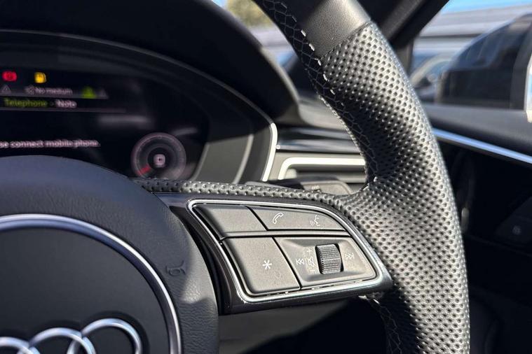 Audi connect safety and service (e-call), Audi drive select, Audi smartphone interface, Audi virtual cockpit, Automatic start-stop system with coasting functionality and efficiency programme, Bluetooth interface, Camera based traffic sign recognition, Electric boot lid release, Electromechanical power steering, Email, calendar and text messages displayed via MMI, Front and rear parking sensors, Lane departure warning, MMI Navigation plus with MMI touch includes 10.1" high resolution colour MMI display, 3D map, Rear view camera, Voice control system, Sports suspension lowered by 23mm, 2 USB charging ports, 8 passive loudspeakers, DAB digital radio reception, Audi beam uses LEDs to project the audi logo onto the ground as you exit your A4, Auto dimming rear view mirror, Black Audi rings and black badging (with removed engine badging), Body colour door handles, Body colour front spoiler lip, Body colour side sill trim, Electric adjustable/heated/folding door mirrors with auto dimming, Exhaust tailpipes in dark chrome, Grained matt black side air inlets with matt aluminium silver inlay, High beam assistant, High gloss black B pillar trims and triangular rear door trim, LED headlights with LED rear lights + dynamic rear indicators + headlight adjustment and high beam, turning light + LED daytime running lights, LED third brake light, Privacy glass, Rain and light sensors, Rear boot, Rear diffuser in matt black with trim strip in matt aluminium silver, Rear side wing doors, Sport front and rear bumpers with side skirts, Variable intermittent front wash/wipe, Windscreen with acoustic glazing, 4 way electric lumbar support for driver and front passenger, 40/20/40 split folding 3 rear seat bench in 3 parts with rear centre armrest, Black carpets, Black cloth headlining, Black perforated leather gearknob, Contrast stitching on seats, steering wheel and gear lever gaiter, Deluxe 3 zone electronic climate control, Front and rear head restraints, Front centre armrest, Heated front seats, Illuminated door sill trims with S logo, ISOFIX child seat mounting and top tether, Manual seat adjustment, Single front passenger seat, Stainless steel pedals and foot rest, Black styling pack - A4 Saloon, LED Interior light pack - A4/S4, 3 rear seatbelts, 6 airbags - Driver, front passenger, curtain and side windows, Attention and drowsiness assist, Electronic Stabilisation Control (ESC) including ABS, ASR and EDL, Hill hold assist, Multi collision brake assist, Pop-up bonnet for pedestrian protection, Pre sense city, Rear door child safety locks, Seatbelt monitoring, Warning triangle and first aid kit, Anti theft alarm, Anti theft wheel bolts, Central locking, Keyless Go, Piano black finish inlay, Tool kit, Tyre repair kit,