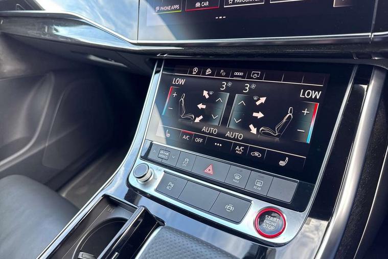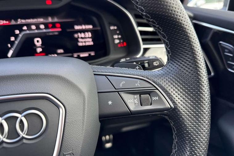 All wheel steering, Audi connect safety and service (e-call), Audi connect with Amazon Alexa Integration, Audi drive select (Auto, Comfort, Dynamic, Efficiency, Individual, Off-road and All road), Audi virtual cockpit - 12.3" high-resolution LCD display with fully customisable instrument cluster, Bluetooth interface, Camera based traffic sign recognition, MMI navigation plus with MMI touch screens includes 10.1" and 8.6" screens with haptic feedback, Natural voice recognition, Parking system plus with 360 degree display (front, rear and side sensors) - acoustic and visual park assist system, Power operated tailgate, Rear view camera, Smartphone interface includes wireless Apple carplay/Android Auto, Start/stop system, 48V Mild hybrid technology, 85 litre fuel tank, Quattro all wheel drive with self locking centre differential, S specific adaptive air sport suspension, Audi music interface - front 2 USB-C ports with charger and data functions, Audi sound system with 6 channel amplifier, 180 watt amplifying capacity and 10 loudspeakers including subwoofer, DAB digital radio module, 3rd brake light, Audi Beam uses LEDs to project Audi logo onto the ground as you exit your SQ7, Audi matrix LED headlights with dynamic front and rear indicators, Auto dimming frameless rear view mirror, Black roof rails, Electrically adj heated/folding + automatically dimming exterior mirrors with memory + automatic kerb side function for passenger side exterior mirror, Gloss black finish for exterior Audi rings and SQ7 logos, Heat insulating glass in windshield, Integrated LED indications in door mirrors, LED daytime running lights, LED rear tail lights, Privacy glass - dark tinted rear and rear side windows from B-pillar backwards, Rear side wing doors, Rear wiper, S front and rear bumpers, S specific rear bumper with 4 exhaust pipes, 2 seat bench in 3rd row, 3 seat bench in 2nd row, 4 zone deluxe automatic climate control, 7 seat layout with ISOFIX points for the front passenger seat and rear passenger seat, Black cloth headlining, Comfort front centre armrest, Electric adjustable front seats/backrest bolsters, lumbar support, memory functionality, Folding rear seats, Front head restraints, Front/rear floor mats, Heated front seats, Illuminated door sill trims with S logo, LED interior ambient lighting, Luggage compartment cover, Luggage compartment sill protection in stainless steel, Rear head restraints, Single front passenger seat, Stainless steel pedals, Sunvisors with illuminated vanity mirrors, Valcona leather upholstery with front super sport seat S embossed logo, Titanium black styling pack - Q7/SQ7, 3 point seatbelts on all rear seats, Audi pre sense front, Child locks on rear doors, Driver and front passenger, front side and curtain airbags, Electromechanical parking brake, Electronic Stabilisation Control (ESC) including ABS, ASR and EDL, Extended pedestrian protection measures, Hill hold assist, Seatbelt monitoring, Tyre pressure loss indicator, Warning triangle and first aid kit, Anti theft alarm, Anti-theft wheel bolts and wheel loosening detection, Keyless Go, Remote central locking, Polished oak trim with grey finish inlay, 22" 5 arm trapezoid design audi sport alloy wheels in anthracite black with gloss turned finish, Tool kit, Tyre repair kit,
