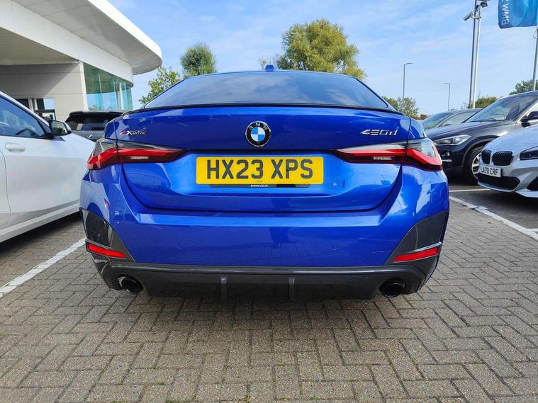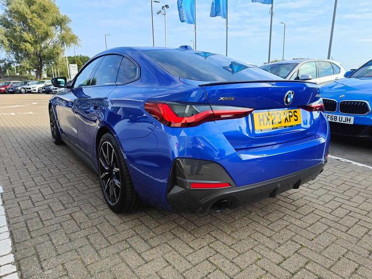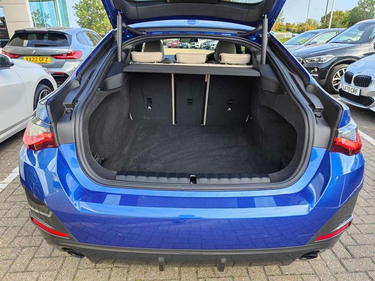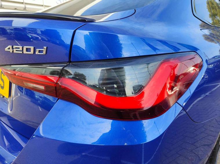 Active guard plus, Attentiveness assist, Auto start-stop, BMW ConnectedDrive online services, BMW iDrive controller on centre console, BMW Live Cockpit Professional Nav with 12.3" instrument display + 10.25" display, Intelligent Voice Assist, BMW OS 7, HDD, 2USB, 4G LTE connect, BMW service history, BMW Teleservices, Brake pad wear indicator in front and rear, Check Control warning system for monitoring of lights and door/luggage compartment open warning, Condition based service, Cruise control with speed limit function, Electric bootlid, Electric power steering with Servotronic steering optimised at all speed ranges, Gearshift time display in manual mode, Instrument cluster with speedometer with mph readout, tachometer, fuel gauge and oil temperature gauge, Integrated owners handbook, Oil sensor for level and grade, warning by check control system, On board computer - average speed, fuel consumption, outside temp display with acoustic warning, clock/date, service interval, odometer/trip meter, Optimum shift indicator, Shifting point display, Variable sport steering, 48V Mild hybrid technology, 8 speed automatic steptronic transmission with gearshift paddles, Diesel particulate filter, Double joint spring strut front axle, Drive performance control - ECO PRO, comfort and sport modes, Incorrect fuelling protection, Low centre of gravity, M sport suspension, Stroke dependent dampers, xDrive system permanent all-wheel drive variable torque distribution, 2x USB Type C ports in front centre console for charging and data transfer, DAB tuner, Electronic service booklet, 3rd brake light, Acoustic glazing, Automatic headlight beam throw control with load dependent regulating reaction, dynamic compensation of braking dive and acceleration squat, Automatic windscreen wipers and automatic headlight, Automatically dimming electrochromatic rear view mirror, BMW emblem on engine compartment lid and tailgate, BMW kidney grille with mesh grille front side of the nuggets in matt aluminium and frame in chrome high gloss, Body colour fuel filler flap, Body colour roof fin, Brushed aluminium inserts in the front door sill finishers with BMW designation, Door sill strips, Dynamic brake lights, Electric windows - front and rear, with open/close fingertip control, anti trap facility and comfort closing function all round, Exterior mirrors - electrically folding with anti-dazzle, Fading support, Follow me home headlights, Front and rear bumper system, Front apron plastic in body colour, Green tinted heat protection glazing, High gloss shadow line exterior trim, Illuminated bow type door handles in body colour drivers side with door lock, Interior rear view electrochromatic mirror with automatic anti dazzle function, LED daytime running lights, LED front fog lights, LED front indicators, Licence plate panel integrated into front bumper and tailgate, Lightweight engineering, M designation on front side panels, left and right, M sport rear boot spoiler with body colour gurney, Model designation on right side of tailgate, One piece front bumper cover including towing eye cover in body colour, Preparation for high beam assistant, Rear side wing doors, Rear wiper, Reversing light, Side frame decorative moulding black matt, Two part LED tailights in L-shape with components in smoked glass, brake light, LED turn indicator and rear fog light, Visible exhaust tailpipe finisher, Visible VIN plate, Welcome lights in interior and door handle area, Widened track and increased camber values for max transverse dynamics, agility and steering precision, Window recess cover black high gloss, Windscreen wipers with integrated heated washing jets, xDrive designation on left tailgate, 12V power socket in front centre console, 2 front cupholder in centre console with clamping elements and matt black inlay, 3 rear headrests, 3 seat bench in 2nd row, 3 spoke M sport leather multifunction steering wheel, 3 zone automatic air conditioning, 4 pieces lashing eyelets in luggage compartment, 40:20:40 split folding rear seat and rear centre armrest with two cupholders, Anthracite headlining, Armrest integrated in front and rear door trim + front centre console armrest, Battery in luggage compartment, BMW ID, Driver seat backrest width adjustment, Four grab handles integrated in roof lining, Front and rear door pockets, Front and rear reading lights, Front sport seats, Heated driver and front passenger seats, Height adjustable front headrests, Height adjustable mechanically and infinitely variable steering column, Illuminated armrest storage compartment, Illuminated glove compartment with separate small compartment, Make-up mirror lights, Single front passenger seat, Storage compartment in rear centre console, Sunvisors with illuminated vanity mirrors and ticket pocket, Toolkit located in luggage compartment, Velour front floor mats, Vernasca leather upholstery, Ambient lighting pack - 4 Series, Connected professional pack - 4 Series, M sport exterior styling pack - 4 Series, 3 point seatbelts on all seats, Battery safety cut-off, BMW emergency call, Brake energy regeneration, Braking pre-tensioning, Child proof locking system in rear door, Child seat ISOFIX attachment for the two outer rear seats, Coasting in idle in ECO PRO mode, Cornering brake control (CBC), Crash sensor activating of airbags, Unlocking doors, hazard warning lights, fuel cut off, interior lighting+activation of safety battery terminal clamp, Driver and front passenger side airbags, integrated in the door side seat backrest bolsters for all seat variants, Driver/Front Passenger airbags, Dry braking, Dynamic brake control, Dynamic stability control + (DSC+) - Anti-lock Braking System (ABS) with brake assist and cornering brake control + Automatic Stability Control (ASC), Dynamic Traction Control - DTC, Electric parking brake including automatic hold function and automatic release of the parking brake when driving off, Electronic differential lock control (EDLC), Front and rea