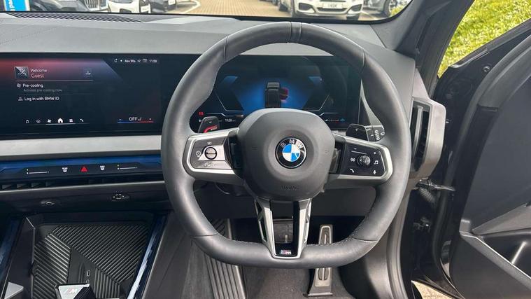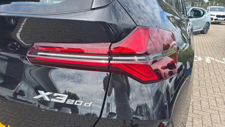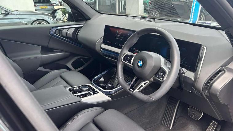 Active guard professional, Attentiveness assist, Automatic operation of tailgate, BMW ConnectedDrive online services, BMW iDrive, BMW Online services, BMW Teleservices, Brake pad wear indicator, Condition based service, Cruise control with brake function + speed limiter, Drive off assistant, Driving Assistant Plus Preparation, Flat tyre monitor, Language version English, My Mode - Personal, Efficient, Sport, Relax, Expressive, Parking assistant, Reversing assist camera, Servotronic system, Variable sport steering, Dynamic stability control, Multiple control arm rear axle, Steptronic transmission with gearshift paddles, Two-joint strut-type front axle with tension strut, DAB tuner, Personal eSim, 4 tailpipe tips, B-pillar trim panel in black high-gloss, BMW badge on front and rear, BMW M-specific front/rear bumpers and side sills, BMW M-specific radiator grille with horizontal bars in Dark Silver and M logo, Daytime running lights, Door handles flush to the surface with lock barrel on driver's side, Dynamic brake lights, Electric adjustable and heated door mirrors, Electric window trap release and convenient opening/closing feature, Headlight beam throw control, Heated rear window, Heated windscreen washer jets, High beam assistant, LED 3rd brake light, LED rear lights, LED tail lights, Locking of the doors, M high-gloss shadowline, M-specific Exterior mirrors, Mirror base and mirror blade in black high-gloss, Mirror triangle in black high-gloss, Rain sensor with automatic headlight activation, Rear side wing doors, Rear wiper, Reversing light, Side window frame in black high-gloss, Windscreen wipers, 12v power socket in front centre console and luggage compartment, 2 x USB Type C ports for charging and data transmission (front centre console) and 2 x USB Type C ports for charging (rear centre console), 3 rear headrests, 3 seat bench in 2nd row, 3 zone automatic air conditioning, 40:20:40 split folding rear seat with loading system, Ambient lighting, Anthracite headlining, Electric adjustable seats with memory function, Floor mats in velour, Footrest and pedals in black plastic, Four grab handles integrated in roof lining, Front armrest with integrated control panel, Front centre console trim in black high-gloss, Front head restraints, Front passenger seat, Front sports seats, Glove compartment, i-Size / ISOFIX attachment points on both outer rear seats, with covers in black, Luggage compartment separating net, M sport leather steering wheel, Multifunction steering wheel, Rear side armrests integrated into door trim, Selector lever with toggle operation, Steering column adjustment, Sun visors with illuminated vanity mirrors, Three upper retaining strap clips integrated into the rear panels of the seat backrests, Through loading system, Two front cupholders and two in the rear center armrest, Wireless charging tray, Connected pro package - X3, Driving assistant package - X3, Interior and exterior mirror package - X3, 3 point seatbelts, Airbag deployment is controlled with respect to the intensity and scope, Anti-lock braking system (ABS), Automatic hold function, BMW emergency call, Brake assist, Brake drying, Brake energy regeneration, Braking readiness, Central airbag, Child locks on rear doors, Cornering brake control (CBC), Crash Sensor - activation of central locking release, hazard warning light and interior lighting, Driver and front passenger front and side airbags, Dynamic brake control, Electromechanical parking brake, Front and rear disc brakes, Head airbags, Integrated braking system, Post Crash Collision Warning with braking function, Trailer stability control, Tyre pressure sensor, Warning triangle, Alarm system, Closing system with central locking, Comfort access system, Locking wheel bolts, Start/stop button with keyless motor start with acoustic drive, Tyre repair kit,