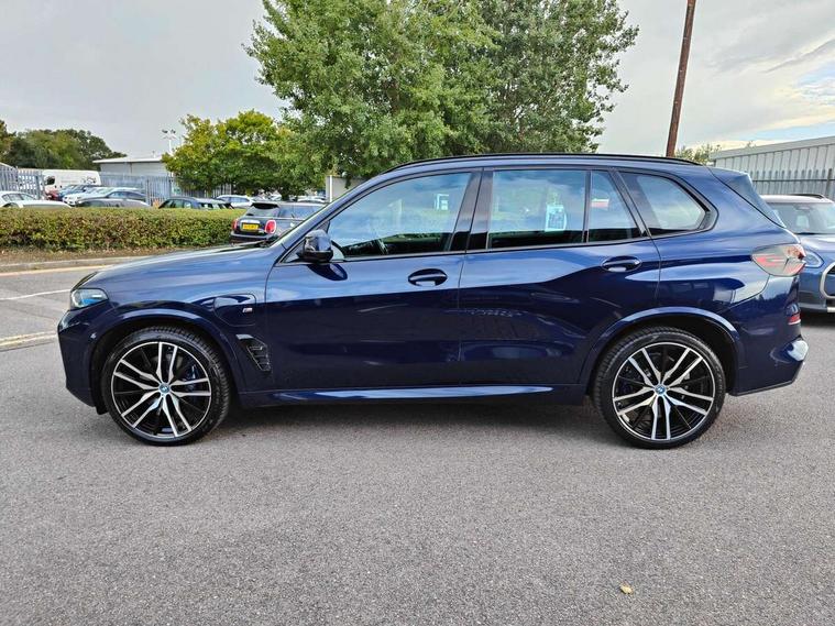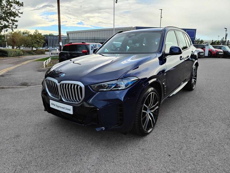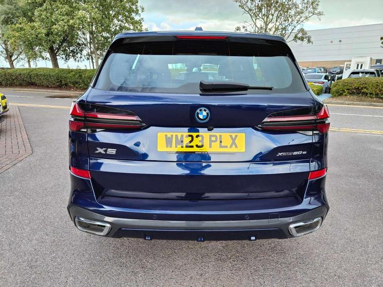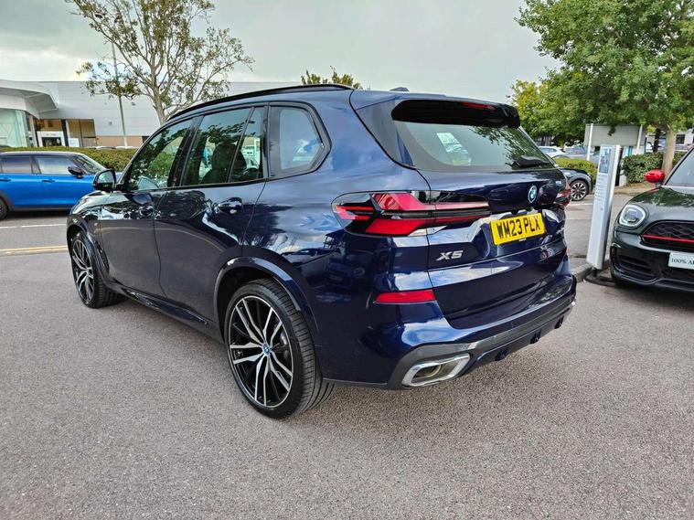 Attentiveness assist, Automatic tailgate operation, BMW ConnectedDrive online services, BMW live cockpit + with curved 12.3 instrument cluster/14.9 central display, nav/Tuner with diversity reception, RDS/4GLTE/remote software upgrade, BMW Teleservices, Condition based service, Cruise control with brake assist, eCall emergency call system, Enhanced bluetooth with wireless charging, Integrated owner's handbook, PAS, Speed limiter, Wi-Fi hotspot, Adaptive 2-axle Front and rear air suspension, Drive performance control with ECO PRO comfort + sport mode, Eight speed steptronic sport automatic transmission and gearshift paddles on the steering wheel, Flexible charger (Mode 2), Hi-Fi loudspeaker system, Adaptive LED Headlights, Front and rear electric windows, High beam assistant, High gloss black shadow line roof rails, LED daytime running lights, Rear side wing doors, Third brake light in rear spoiler, Variable intermittent rear wash/wipe, 12V - Power sockets with 2x centre console and 1x luggage compartment, 3 seat bench in 2nd row, Foldable rear centre armrest with 2 cupholders and storage compartment, Front and rear side armrest integrated into door trim, Headrests for all seats, Luggage compartment separating net, Single front passenger seat, Three spoke sport M leather steering wheel, Velour floormats, Ambient light interior pack - X5, Driving assistant pack with radar based driver assistance system - X5, Expanded exterior mirror pack - X5/X5 M, M aerodynamics pack - X5, 3 rear seatbelts, Acoustic protection for pedestrians, Active protection, Airbags - driver/front passenger, rear and side, first and second row seats head airbags, front passenger seat airbag deactivation + knee airbag, Anti-lock braking system (ABS), Automatic Stability Control (ASC), Brake energy regeneration, Cornering brake control (CBC), Crash sensor activating central locking release, hazard warning lights, fuel cut off, interior lighting + activation of safety battery terminal clamp, DSC - Dynamic Stability Control, Dynamic Traction Control - DTC, Electromechanical parking brake with automatic drive away release and auto hold function, Electronic brake force distribution, Hill start assistant, M Sport blue painted brake calipers with 'M' designation, Mechanical child proof lock on rear doors, Tyre pressure monitoring system, Tyre pressure sensors, Ventilated front and rear disc brakes, Warning triangle and first aid kit, Closing system with central locking, Comfort access system, Locking wheel bolts, Sensatec instrument panel,