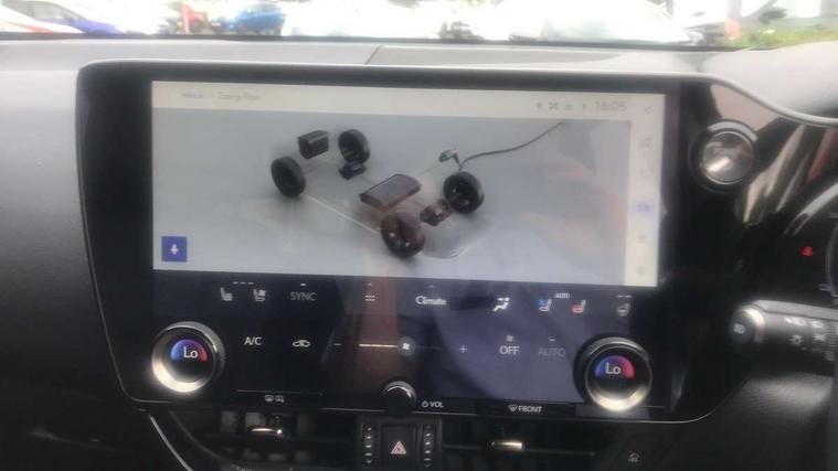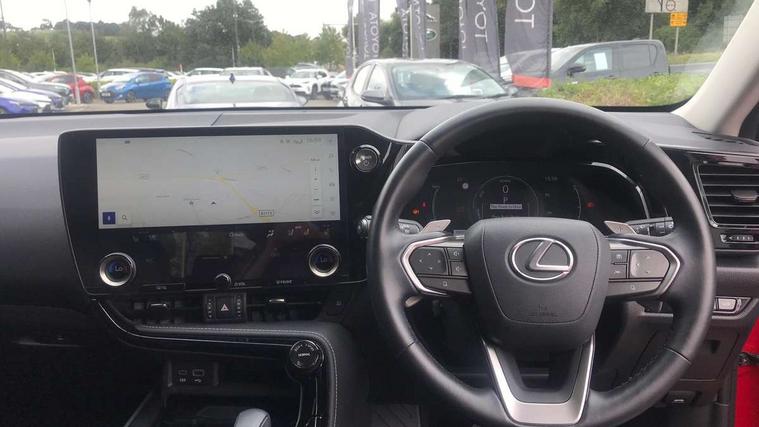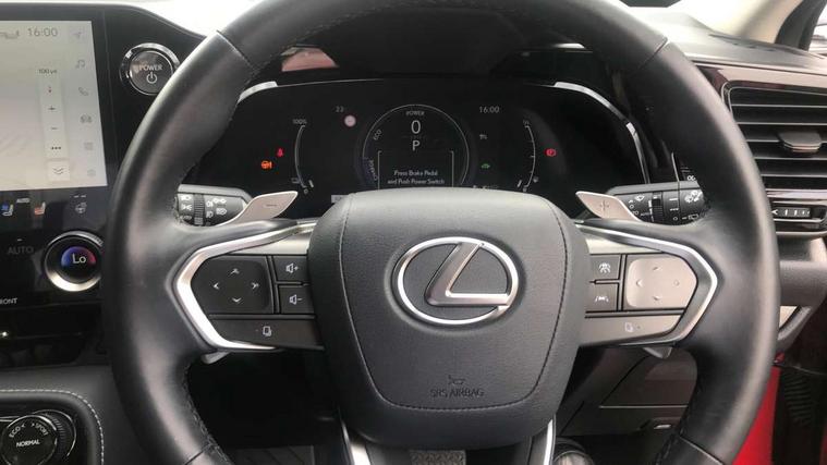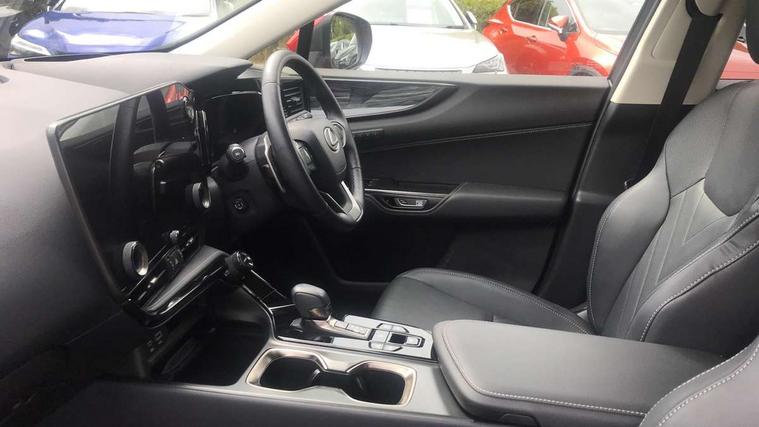 4 driving modes EV/Eco/Normal/Sport, 7" display in instrument binnacle, Blind spot monitoring with rear cross traffic alert, Bluetooth telephone connectivity, eCall emergency system, Electric speed sensitive power steering, Intelligent parking sensors - 4 front and 4 rear, Lane change flasher function, Lexus link connect - Cloud based navigation, cloud based voice assistant, always online and 9.8" VGA touchscreen, Push button starter, Reversing camera with back guidelines, Service interval indicator, Tailgate, Wireless Apple CarPlay and wired Android Auto, Wireless Smartphone charger, 6.6 kW onboard charger, All Wheel Drive (AWD), Hybrid automatic transmission, Vehicle Dynamics Integrated Management (VDIM), Vehicle Stability Control (VSC), 10 speakers, 4 USB ports - 2 front, one USB C, 2 rear USB C, DAB Digital radio, Auto dimming interior rear view mirror, Automatic headlights, Bi LED headlights, Double hidden exhaust pipes, Front and rear one touch power windows, with anti-jam protection, Heated, auto-folding, auto-dimming outside mirrors with reverse tilt function and turn indicators, Illuminated door handles with puddle light, LED brake lights and rear lights with emergency brake signal, LED cornering lights, LED daytime running lights, LED front fog lights, LED Indicators, Power back door with kick sensor, Privacy glass, rear doors and tailgate, Rain sensor windscreen wipers, Rear side wing doors, Rear wiper, Roof rails, 12V accessory port centre console and luggage compartment, 2 cupholders in front centre console, 2 way electrical lumbar adjustment for driver, 2 x fixed shopping bag hooks in boot, 2 x sun visors with vanity mirror and lamp, 3 seat bench in 2nd row, 4 x tie down hooks in the boot, 60/40 split folding rear seat, 8 way driver/passenger electrically adjustable front seats, Adjustable rear seat backrest, Card holder installed in driver and passengers sun visors, Centre armrest with storage box, Dual climate control air conditioning system, Front and rear head restraints, Front and rear textile carpet mats, Front passenger seat, Heated front seats, Heated steering wheel, Leather gear lever, LED interior illumination, Power adjustable leather steering wheel with paddle shifts, Premium Tahara leather upholstery, Rear centre armrest with 2 cupholders, Whiplash Injury Lessening (WIL) feature (active headrest) for seats, 2 x Isofix child rear seat restraints, 3 point ELR front seatbelts with pretensioners, 3x3 point rear seat belts, ABS, Adjustable seat belt anchor points, Driver and front passenger 2 stage airbag, Driver/front passenger side airbags, Drivers knee airbag, E-Latch with safe exit assist, EBD + Brake Assist, ECB (Electronically Controlled Brake System), Electronic parking brake, Front and rear curtain shield airbags, Front center airbag, Front passenger seat cushion airbag, Hill assist control, Lexus safety system - dynamic radar cruise control, pre collision system day and night, lane tracing assist, road sign, automatic high beam, OTA, Manual rear child locks, Passenger airbag cut-off device, Traction control, Tyre pressure warning, Anti-theft system with alarm, intrusion sensor, glass breakage sensor, tilt sensor and engine immobiliser, Locking wheel nuts, Smart keyless entry, Speed sensitive auto door locking, Two motion door lock with double lock, Ultra Wide Band (UWB) Anti-theft system, VIN Window etching, 3D prism black Inlay, Organic inlay, Tyre repair kit,