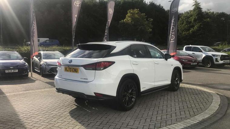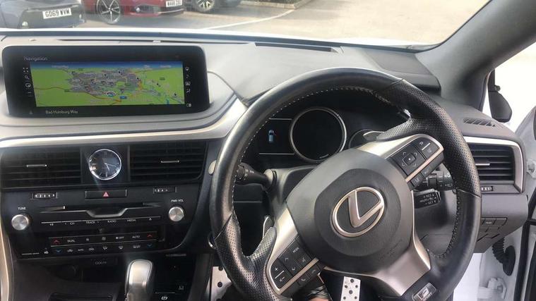 12.3" Touchscreen display and remote touch interface, 5 Driving modes EV/Normal/Eco/Sport/Sport+, Analogue clock with GPS function, Apple car play/Android Auto, Bluetooth mobile phone connectivity, Electric power steering, F SPORT combination meter, F SPORT steering, Front and rear parking sensors with intelligent clearance sonar, Hands free power boot lid operation with kick sensor, Lane change flasher function, Lexus link connected services with available optional wifi, Lexus Premium Navigation with full European map capability, street view and connected services, Multi-information display 4-inch TFT, Push button starter, Reversing camera with back guide lines, Wireless Smartphone charger, Adaptive variable suspension, F SPORT specific suspension tuning, Front and rear performance dampers, Vehicle Dynamics Integrated Management (VDIM), Vehicle Stability Control (VSC), 12 speakers Pioneer audio, AUX socket with VTR compatibility, DAB Digital radio, DVD, Front and rear USB ports, 3 eye LED headlights with adaptive high beam system with bladescan, Auto dimming rear view mirror, F SPORT exterior styling consists of Mesh front grille, front and rear bumper, badging, black outside mirror covers, Front and rear electric windows, Headlight washers, Heated, auto-folding door mirrors, auto dimming with rerverse tilt and memory, LED brake lights and rear lights with emergency brake signal, LED cornering headlights, LED daytime running lights, LED front and rear sequential indicators, LED front fog lights, Privacy glass, rear doors and tailgate, Puddle lights, Rain sensor windscreen wipers, Roof rails, 2 map pockets in the rear, 2 way electric lumbar support, 2 way manually adjustable front headrests, 2 way manually adjustable rear headrests, 2 x fixed shopping bag hooks in boot, 2 x Sunvisors with vanity mirror and lamp, 3 x 12V power sockets, 4 x tie down hooks in the boot, 60/40 split folding rear seat with 40/20/40 folding ability, 8 way electrically adjustable front seats, Active sound control, Card holder installed in driver and passengers sun visors, Centre and rear armrest with 2 cupholders, Centre armrest with storage box, Climate concierge, Drilled F SPORT aluminium sports pedals, Driver seat memory function, Driver's seat easy access auto retraction function, Dual zone climate control air conditioning system with S flow and Nanoe technology, Electrically adjustable F SPORT leather steering wheel with paddle shifts and auto retraction function, Electrically adjustable steering column, F SPORT leather gearlever, F SPORT seats - Leather upholstery, Glasses holder in roof lighting panel, Heated front seats, Heated steering wheel, Illuminated entry system, Isofix standard child seat restraint mounting, LED interior illumination, Rear armrest with storage, Rear door sunshades, Sliding/reclining rear seats, Small compartment to right of steering wheel, Textile carpet mats, Unique LED illumination instrumnet panel, Ventilated front seats, 3 point ELR front and rear seatbelts with pretensioners, ABS, Curtain airbags, Driver and front passenger 2 stage airbag, Driver/front passenger side airbags, Drivers knee airbag, EBD + Brake Assist, Electronic parking brake, Electronically controlled braking, Front passenger seat cushion airbag, Hill start assist, Lexus safety system + includes dynamic radar cruise control, pre collision system day and night, lane tracing assist, road sign, adaptive high beam, Passenger airbag cut-off device, Rear passenger side airbags, Traction control, Tyre pressure warning, WIL whiplash protection front seats, Anti theft system with alarm, intrusion sensor, tilt sensor, glass breakage sensor and engine immobiliser, Locking wheel nuts, Security window etching, Smart keyless entry, Two motion door lock with double lock, Aluminium inlays, 20" F SPORT alloy wheels, Temporary spare wheel,