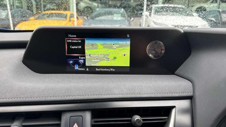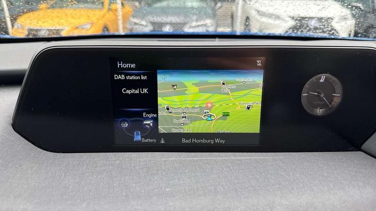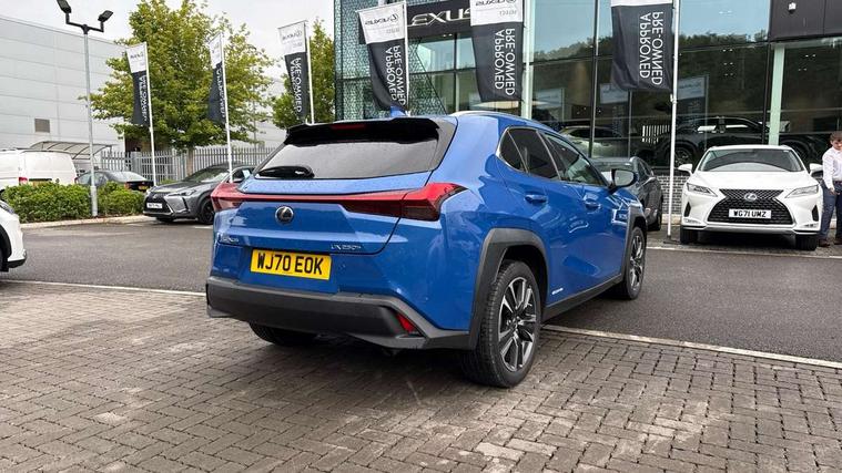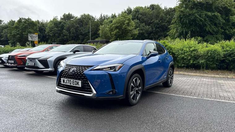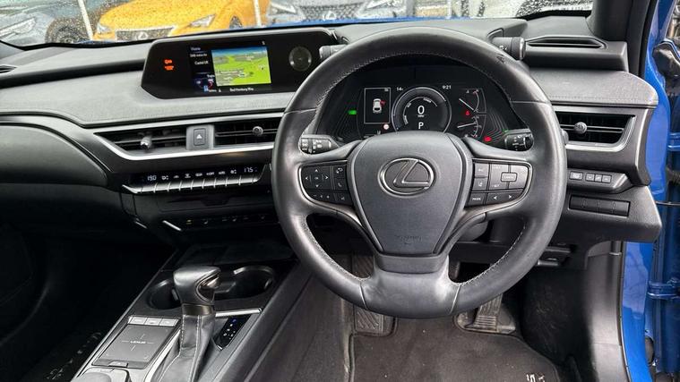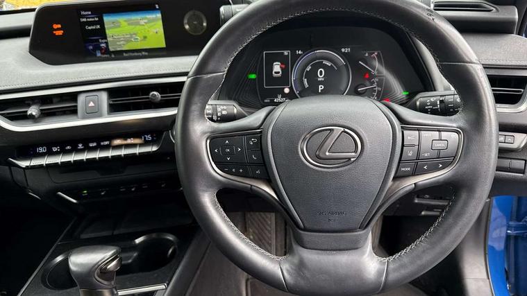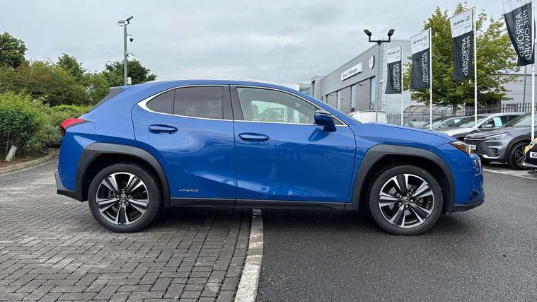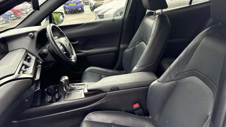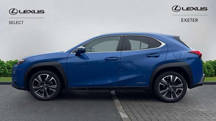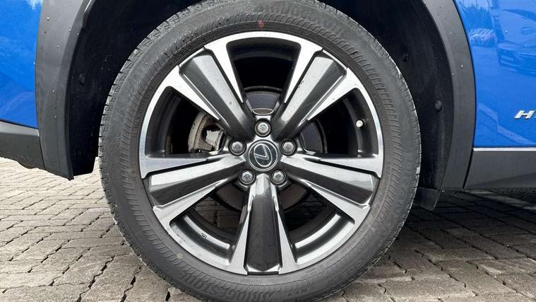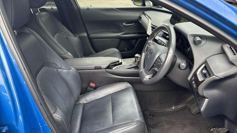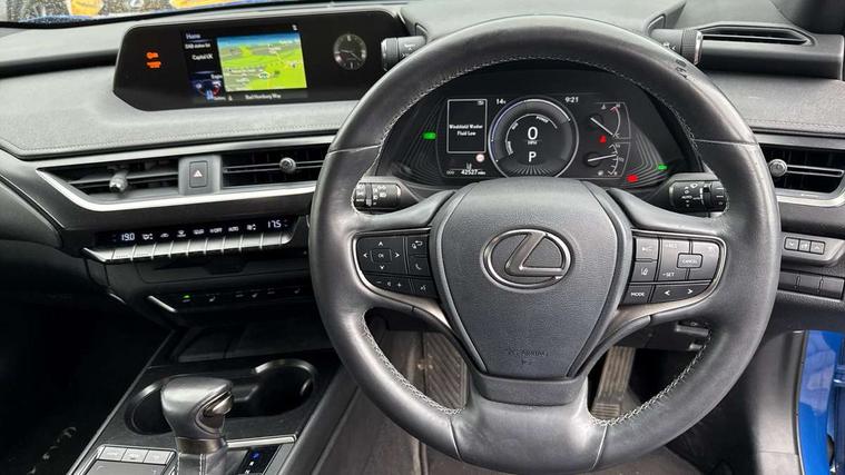17" alloy wheels, Tyre repair kit, 2 x remote key fobs, Anti theft system : Alarm instruction sensor, glass breakage sensor and engine immobiliser, Locking wheel nuts, Remote central door locking, Speed sensitive auto door locking, Two motion door lock with double lock, VIN Window etching, 2 front USB and 2 rear USB charging points, 6 speakers, AM/FM and DAB radio, AUX socket with VTR compatibility, CD player, 2 x Isofix child rear seat restraints, 3x3 point rear seatbelts, Anti-lock braking system (ABS), BAS (Brake Assist System), Driver and front passenger 2 stage airbag, Driver and front passenger knee airbag, Driver/front passenger side airbags, EBD - Electronic brakeforce distribution, ECB (Electronically Controlled Brake System), Electric parking brake, Front adjustable seatbelt anchor points, Front and rear curtain shield airbags, Front outer seatbelt+pre-tensioners, force limiter+tension reduction: 3-point with active safety link to PCS, Hill start assist control (HAC), Passenger airbag cut-off device, Rear outer seatbelt+pre-tensioners, force limiter+tension reduction: 3-point with active safety link to PCS, Centre belt w/o pre tensioner+force limiter, Secondary Collision Brake (SCB), TRC (Traction Control), Tyre pressure warning, Acoustic windscreen, Aero stabilising arch mouldings, Aero stabilising rear lights, Aero ventilated wheels, Aluminium roof rails, Bi-LED (low and high beam) headlights with Auto High Beam (AHB), Body adhesive, laser screw welding and laser brazed roof structure, Electric adjustable/heated door mirrors, Front and rear one touch power windows, with anti-jam protection, Headlight cleaners, LED daytime running lights, LED front and rear fog lights, LED tail lights, Light green UV glass, Rain sensor windscreen wipers, Rear wiper, Shark fin roof aerial, Single hidden exhaust pipe, Towing preparation, 12V accessory port centre console and luggage compartment, 2 cup holders in the front and rear centre console, 2 x folding shopping bag hooks in boot, 2 x sun visors with vanity mirror and lamp, 4 x tie down hooks in the boot, 5 headrests, 6 way driver and passenger manually adjustable front seats, 60/40 split folding rear seat, Card holder installed in driver and passengers sun visors, Centre armrest with storage, Driver and passenger door pocket, Dual zone electronic climate control + Nano-E humidity sensor, Glovebox, Leather gear lever, Leather steering wheel, LED interior illumination, Map pockets in the rear of passenger's front seat, Premium fabric upholstery, Rear air vents with 2 USB chargers, Rear armrest with 2 cupholders, Storage tray under audio panel, Textile carpet mats, Tilt/reach adjustable steering column, Under deck storage, Under desk side storage, 4 driving modes EV/Eco/Normal/Sport, 7" Lexus media display, 7" TFT instrument cluster, Analogue clock with GPS function, Apple car play/Android Auto, Compatible mobile phone bluetooth with audio streaming, E-call, Electric power steering (EPS) with speed sensitive features, Lane change flasher function, Lexus link connected services, Lexus navigation system, Lexus safety systems + includes dynamic radar cruise control, pre collision system day and night, lane tracing assist, road sign assist, Push button start, Remote touch interface, Reversing camera with back guide lines, Trip computer, Vehicle Dynamics Integrated Management (VDIM), Vehicle Stability Control (VSC),