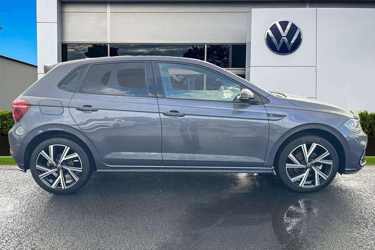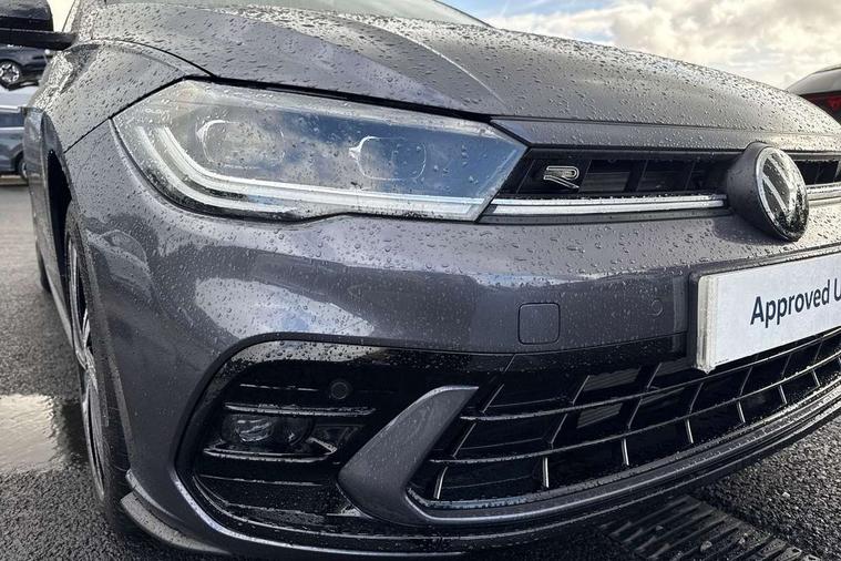 Adaptive cruise control with follow-to-stop and speed limiter, Advanced driver attention and drowsiness monitor, Bluetooth mobile phone interface, Digital Cockpit Pro with 10.25" Display, Dynamic road sign display, Emergency call service, Multifunction camera, Power assisted speed sensitive steering, Preparation for We connect and We connect plus, Speedo and rev counter, electronic odometer, trip, service interval display and fuel gauge, Standard rear axle, Travel Assist - Lane keeping system and traffic jam assist, Travel assist including emergency assist, Trip computer, Warning signal and warning light for front and rear seatbelts not fastened, Washer fluid level indicator, Wireless app connect, Front wheel drive, Rear shock absorpion, Start-stop system with battery regeneration (recuperation - energy recovery during braking), DAB Digital radio, Diversity antenna for FM reception, Front and rear 6 speakers, Body colour bumpers, Body colour door handles, Electric front windows, Front scuff plates with Black edition logo, Heat insulating glass windscreen, Power folding adjustable/heated exterior mirrors and front passenger exterior mirror lowering function, Rear electric windows, Rear fog light, Rear side wing doors, Rear windscreen washer and wiper with interval delay, Third brake light, 12V power socket in centre console, 2 USB-C ports in the front, 2 USB-C charging sockets on the center console in the rear, 3 rear head restraints, 60/40 split folding rear seat and rear seat bench not split, Air care climatronic air conditoning system with active combination filter and 2-zone temperature control, Black roof lining, Carpet mats, front and rear, Chrome plated radiator grille inserts, air vent surrounds and light switch surrounds, Door and side trim panel, Driver and front passenger seat height adjustment, Driver/passenger sunvisors with illuminated vanity mirrors, Front centre armrest, Front footwell illumination, Front seat backrest storage pockets, Front sports comfort seats, Handbrake lever handle in leather, Headliner in recycled material, Heated front seats, Isofix child seat preparation easy-fit (for two outer rear seats, and front passenger seat) compatible with I-size, Karoso artvelours cloth upholstery, Leather trimmed gear knob, LED interior light with switch off delay and dimmer, 2 reading lights front and rear, Luggage compartment cover, Luggage compartment floor, Luggage compartment lighting, Lumbar adjustment for front seats, Single front passenger seat, Stainless steel pedals, Standard pedal cluster, Three spoke leather wrapped multifunction steering wheel with shifting paddles, Black roof pack - Polo, IQ LED matrix headlights pack - Polo, Light and sight pack - Polo R-Line/Black Edition, 3 point height adj front seatbelts + pretensioners, 3x3 point rear seatbelts, ABS, Driver and front passenger airbag with front passenger airbag deactivation, Drivers and front passengers safety optimised head restraints, ESC (Electronic stability control) + EDL (Electronic Differntial lock) and ASR (Traction control), Extended and predictive pedestrian/ cyclist protection, Front curtain and side airbags with center airbag, Front/rear disc brakes, Hill hold control, Manual child lock in rear doors, Single tone horn, Tyre pressure loss indicator, Alarm with interior protection, Anti-theft alarm system with interior monitoring, backup horn, and towing protection, Anti-theft wheel bolts, Electronic engine immobiliser, Black dashboard, Chrome applications on rotary light, mirror adjustment, window regulator switches, outlet with frame in black, Dark grey anodised matt decorative inserts in dash and front door panels, 17" York alloy wheels, Low rolling resistance tyres,