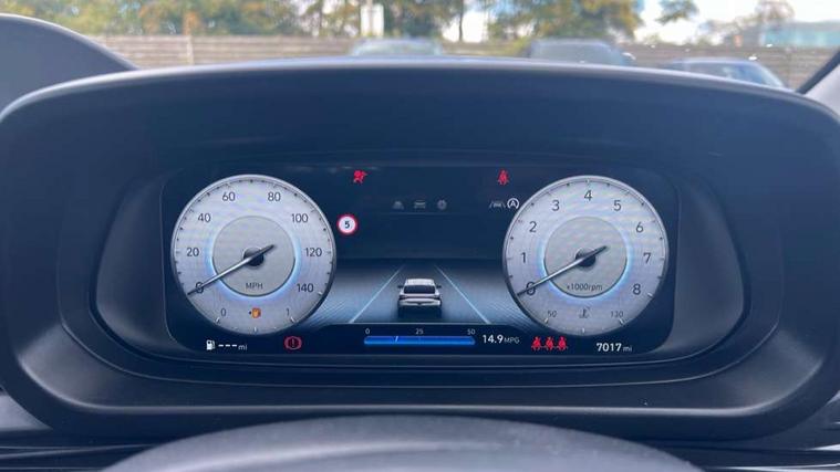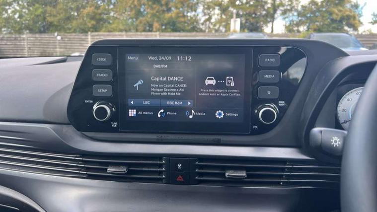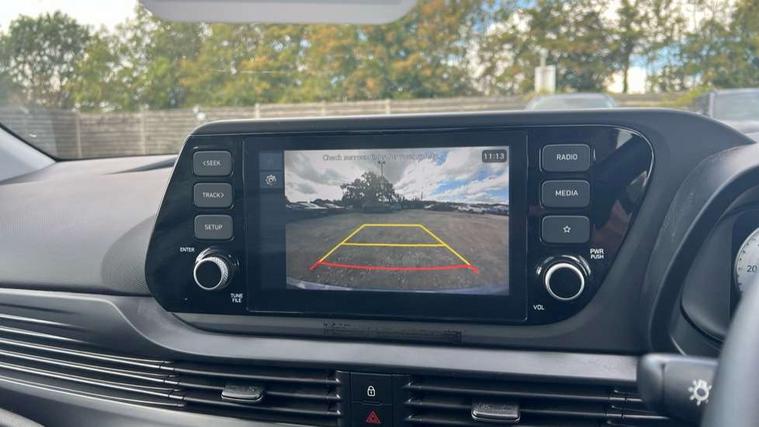 10.25" digital supervision cluster, 2nd Gen eCall, 8" Touchscreen with DAB, Apple car play/Android Auto, Cruise control + speed limiter, Forward collision assist with car, pedestrian and cycle detection, Intelligent speed limit warning, Lane follow assist, Lane keep assist, PAS, Rear parking sensor, Rear view camera with dynamic guidelines, USB C port front, 3rd brake light, Dusk sensor, Electric adjustable heated door mirrors, Front grille mesh pattern design, High beam assist, LED daytime running lights, LED Headlights, LED taillights, Rain sensor, Rear side wing doors, Rear wiper, Repositioned flat metal hyundai emblem, 3 seat bench in 2nd row, Adjustable head restraints, Air conditioning, Cloth upholstery, Floor mats, Leather steering wheel, Single front passenger seat, 3x3 point rear seatbelts, ABS with front and rear diagonally split, Autonomous emergency braking, Child locks on rear doors, Front ventilated disc brakes, Rear solid disc brakes, Tyre pressure monitoring system, 16" alloy wheels, Tyre repair kit,