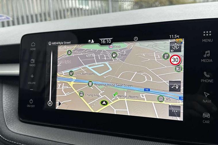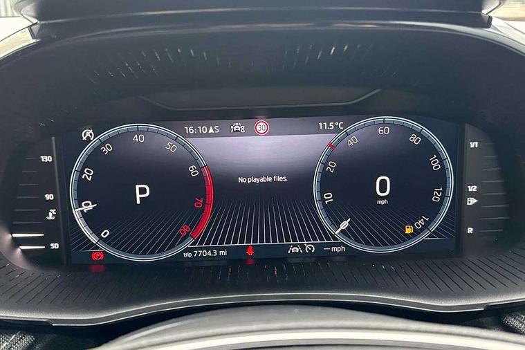 Advanced driver attention and drowsiness monitor, Bluetooth connection, Electromechanical power steering, Exterior temperature gauge, Service interval indicator, Traffic sign recognition, Virtual cockpit with 10.25" colour display, Wireless SmartLink for Apple CarPlay and Android Auto, 6 Speakers (4 in front and 2 in rear), 9.2" colour display skoda navigation system with voice control and web radio, Auxiliary socket for external MP3 player, DAB digital radio reception, Auto dimming rear view mirror, Body colour door mirrors, Body coloured bumpers, Chrome window surround, Door mirror integrated indicators, Front and rear electric windows, Front window wiper intermittent control, Headlight range control - Automatic, Ice scraper in fuel cap, LED daytime running lights with coming and leaving home feature, LED rear lights, Privacy glass, Rear LED fog light, Rear side wing doors, Rear window wiper with washing nozzles, Roof mounted spoiler, SKODA tailgate lettering in chrome, Third brake light, 2 reading lights in front and 2 reading lights in rear, 3 rear headrests, Backrest split and folding, Central console with removable cup holder and storage box, Chrome handbrake release button, Comfort seats, Door sills with fabia badging, Dual zone air conditioning with climatronic electronic control, Fabric upholstery, Front centre armrest, Gearshift knob/handle in leather, Hand brake lever handle in leather, Height adjustable front headrests, Height adjustable front seats, Height adjustable steering wheel, ISOFIX and TopTether anchorage points to the outer rear seats, ISOFIX and TopTether on the front passenger seat, Luggage compartment lighting, Manually adjustable lumbar support in front seats, Metallic grey interior door handles, Pollen filter, Rear seat bench unsplit, Single front passenger seat, Storm grey headlining, Sun visors with mirror and airbag label on passenger side, Textile floor mats, Ticket holder, Umbrella in drivers door, 3-point height adjustable front seats belts with pretensioner and force limiter, Automatic warning lights in case of crash, Driver and passengers airbag with switch off function, e-Call+, ESC including ABS, MSR, ASR, EDS, HBA and XDS, Front and rear seat belt warning, FRONT ASSIST (AEB City and AEB Inter Urban), Front side airbags, Head airbags, Hill hold control, One tone horn, Pedestrian protection, Three rear 3-points safety seat belts with pretensioner and force limiter including stop function for outer rear seat belts, Tyre pressure monitoring system, Anti-theft alarm system including immobiliser, interior monitoring, backup horn, and towing protection, Central locking with radio remote control, interior controls, SAFE function and 2 foldable keys, Chrome edged air vents, Metallic grey central console cover, Metallic grey upper decorative trim, Satin black door and side trim panel in front, Textile microsuede grey lower decorative trim with art grey stitching, Anti-theft wheel bolts protection, Super-low rolling resistance tyres,