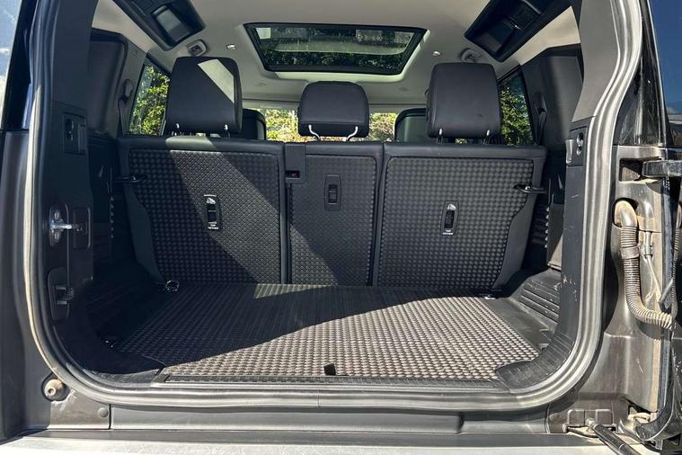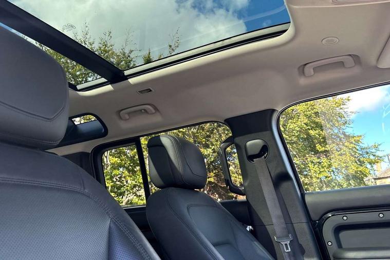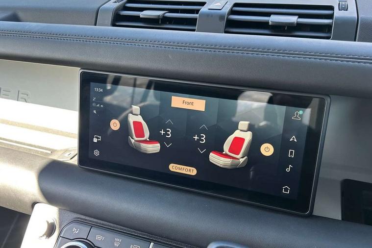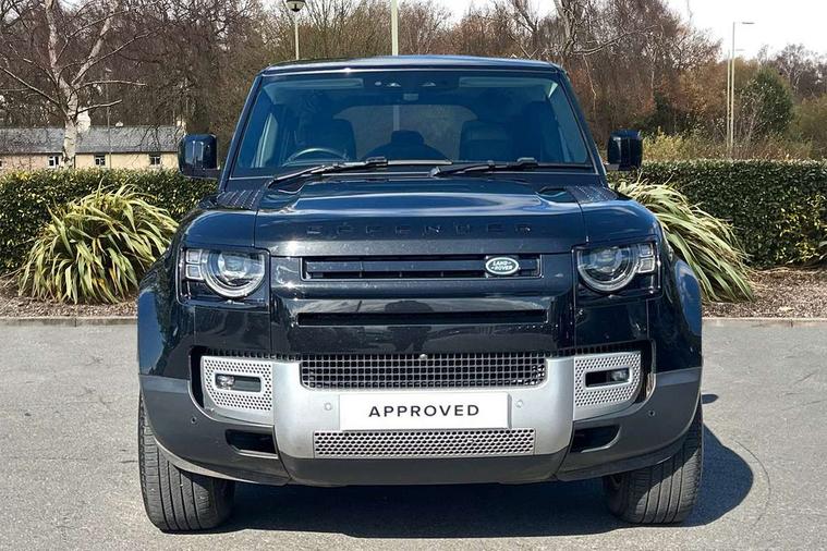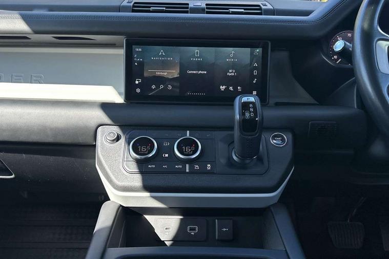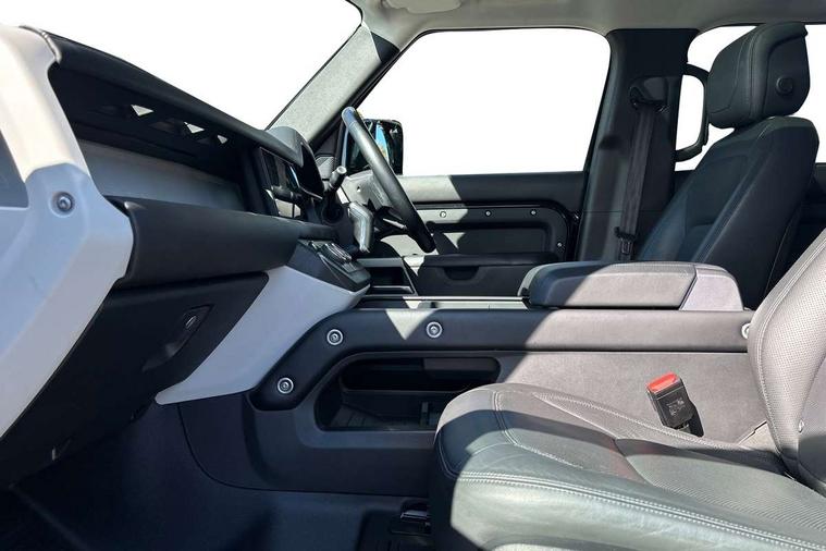 360 degree parking aid, 3D Surround Camera with 360 View, 180 Rear View, Front Traffic Detection, Forward Vehicle Guidance, Tow Hitch Assist and clear sight Ground View, Adaptive cruise control, Android Auto, Apple CarPlay, Assisted tailgate with soft close, Blind spot assist, Bluetooth system, Brake pad wear indicator, Clear exit monitor, Connected navigation pro, Driver condition monitor, Electric power assisted steering (EPAS), Interactive driver display, Lane keep assist, Push button start, Rear traffic monitor, Traffic sign recognition with adaptive speed limiter, Trip computer, Wade Sensing, 8 speed automatic transmission, All wheel drive system, Twin speed transfer box, DAB Radio (Digital Audio Broadcasting), Pivi pro connected, Automatic headlight levelling, Automatic headlights, Centre high mounted stop light, Electric heated/power fold door mirrors with approach lights and auto dimming driver side, Electric windows with one touch open/close and anti-trap, Follow me home lighting, Heated rear window with timer, Heated windscreen, LED tail lights, Puddle lights, Rain sensing windscreen wipers, Rear fog lights, Rear side wing doors, Rear wiper, Side hinged tailgate, Trailer stability assist, 12V power socket in loadspace, 3 seat bench in 2nd row, Alpine lights, Durable rubber cabin flooring, Durable rubber loadspace flooring, Footwell lights, Front passenger isofix child seat attachment, Loadspace cover, Loadspace Hook, Multifunction steering wheel, Overhead stowage for sunglasses, Premium cabin lighting, Rear headrests, Rear ISOFIX, Rear reading lights, Single front passenger seat, Standard seat configuration, Storage glovebox, Sunvisors with illuminated vanity mirrors, Online pack with data plan - Defender, 5 x 3 point seatbelts, ABS, Brake hold function, Cornering brake control (CBC), Customer configurable autolock, DSC - Dynamic Stability Control, EBD - Electronic brakeforce distribution, Electric parking brake (EPB), Emergency brake assist, Emergency braking, ESP + traction control, Front airbags with passenger seat occupant detector, HDC - Hill descent control, Hill launch assist, Low traction launch, Power operated child locks, Remote for (e-Call, Optimised assistance call, InControl app, Climate, beep and flash and door), RSC - Roll stability control, Seat belt reminder, TPMS (Tyre pressure monitoring system), Alarm, Immobiliser, Intrusion sensor, Keyless entry, Locking wheel nuts,