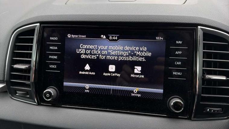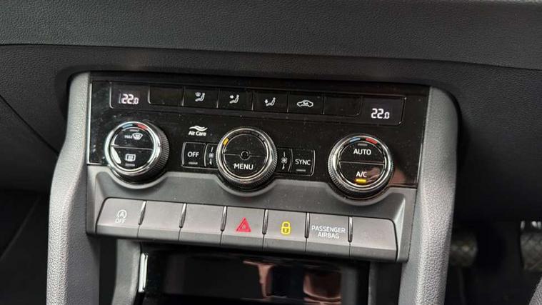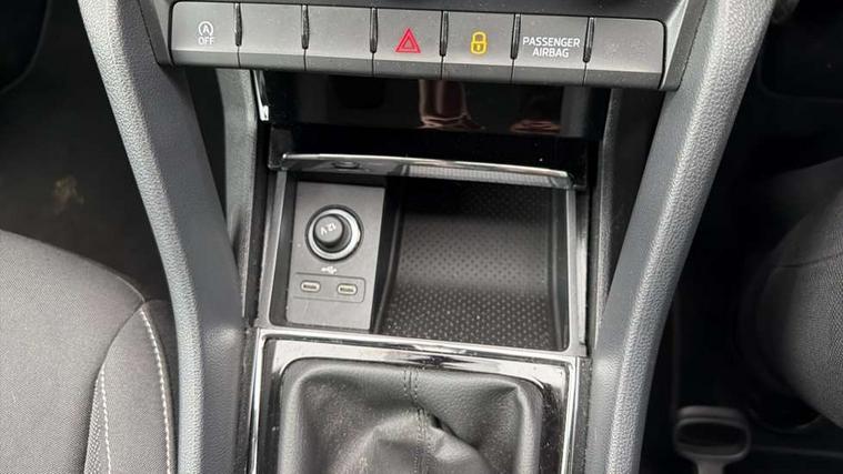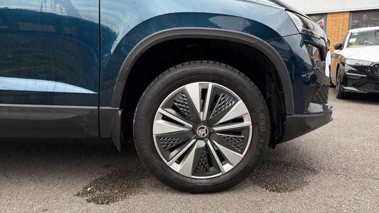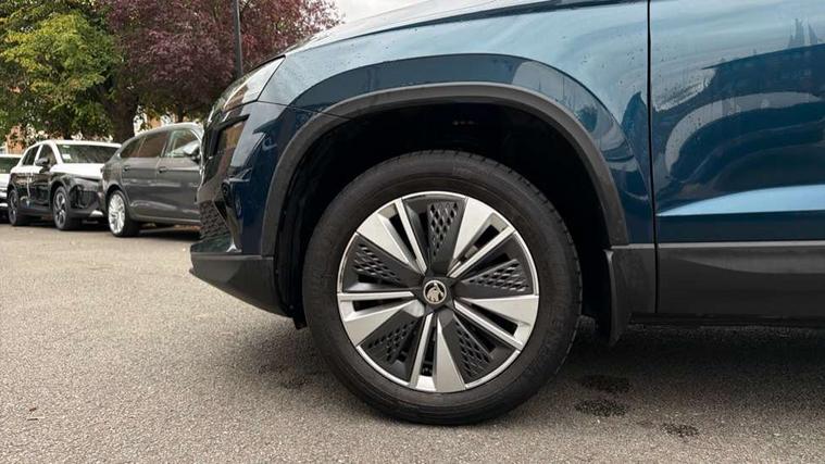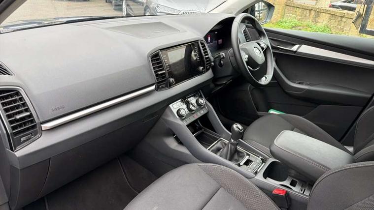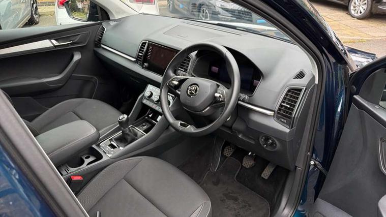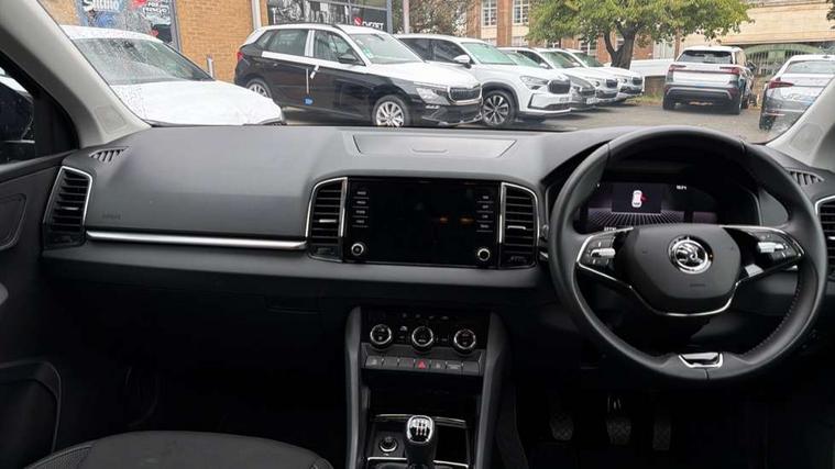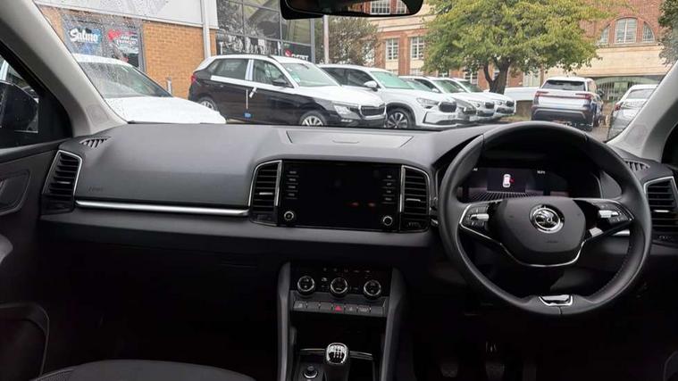 8" Digital display, Amundsen satellite navigation with 8" touchscreen display with maps Europe, WLAN and web radio, Care connect, Driver fatigue sensor, Electro-mechanical PAS, Emergency services call system, Outside temperature gauge, Service interval indicator, SmartLink wireless for Apple and wired for Android, Start/stop system with regenerative braking, USB C Port x 2 in front centre console, 8 Speakers, DAB radio with Bluetooth, USB connection, Acoustic glass, Aero front windscreen wipers with intermittent function, Auto dimming rear view mirror with light and rain sensors, Black electric window control buttons, Body colour door mirrors and handles, Dynamic headlight range control with cornering light function, Electric front and rear windows with child proof lock, Electrically adjustable heated folding and auto dimming door mirrors, Front fog lights, Heated rear windscreen, LED daytime running lights, LED Headlights, LED rear lights with high functionality welcome effect and dynamic indicators, Light assistant (coming/leaving home/tunnel light), Plastic scuff plates, Privacy glass, Rear side wing doors, Rear window wiper with washer system and intermittent control, Safety reflectors on front doors, Third brake light, 1.5 litre bottle holders in driver and front passenger door panels, 12V socket in boot, 12v socket in front centre armrest with storage compartment and rear air vents, 2 x Tablet holder, 3 rear height adjustable headrests, 3 seat bench in 2nd row, 4 foldable roof handles with rear coat hooks, Black floor carpet, Chrome inner door handles, Double sided boot floor, Driver/front passenger reading lights, Foldable hooks in the boot, Folding tables on the front seat backrests, Front head restraints, Height adjustable driver and passenger seat, Height adjustable front three point seats belts with tensioners, Height/reach adjust steering wheel, Ice scraper, Illuminated glovebox, Illuminated luggage compartment, Isofix child seat preparation for front passenger seat, Isofix child seat preparation outer rear, Manual lumbar support for front seats, Pearl grey interior ceiling, Pen holder, Pollen filter, Rear boot cover, Rear reading lights, Rubbish bin door, Safety vest holder, Single front passenger seat, Storage box in upper central dashboard closed, Sunvisors with illuminated vanity mirrors, Textile floor mats, Ticket holder, Umbrella under passenger seat, Boot pack - Karoq, Automatic door unlocking in case of crash, Automatic fuel cut off in case of crash, Child locks on rear doors, Driver airbag, Electronic parking brake with auto hold function, Emergency rear braking signal, ESC including ABS, MSR, ASR, EDS, HBA, DSR, RBS, MKB and traction control, Front side airbags, Hill hold control, Knee airbags, Passenger airbag with switch-off function, Pedestrian monitor, Seatbelt reminder signalisation and pretensioner for all seats, Three point seatbelts rear, Two tone horn, Tyre pressure display, Tyre pressure monitor, Alarm with interior monitoring, back up horn and tilt sensor with safe function, Electronic engine immobiliser, Remote central locking with 2 remote folding keys, Black centre console, Chrome framed air vents, Satin black dashboard, Satin black door trim, Anti-theft wheel bolts protection, Storage on wheel cover, Tool kit,