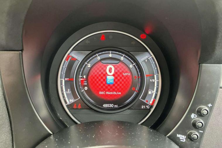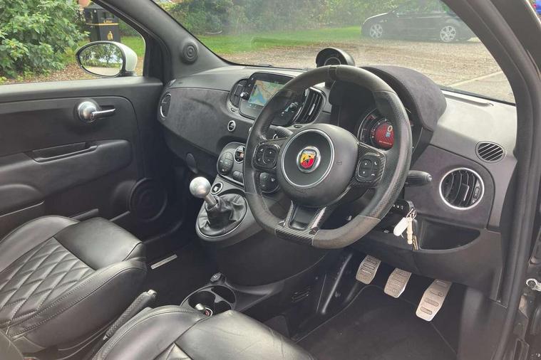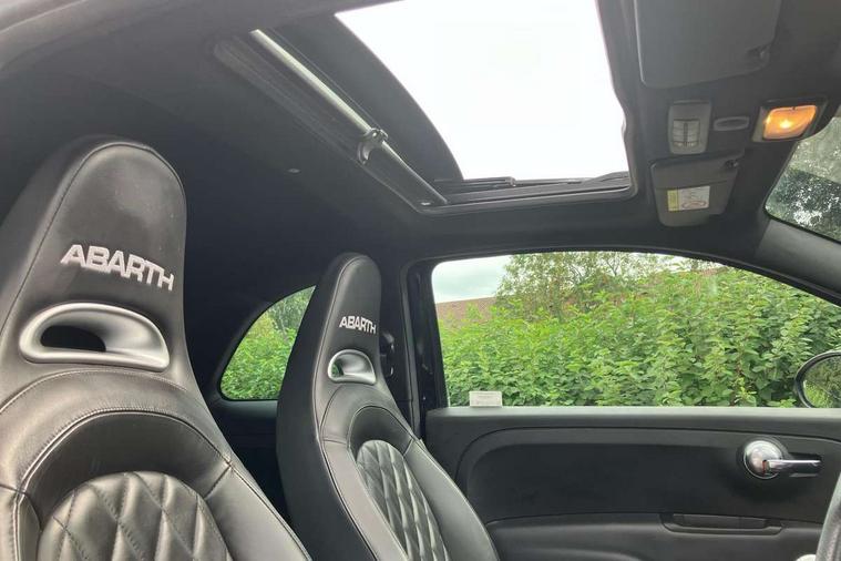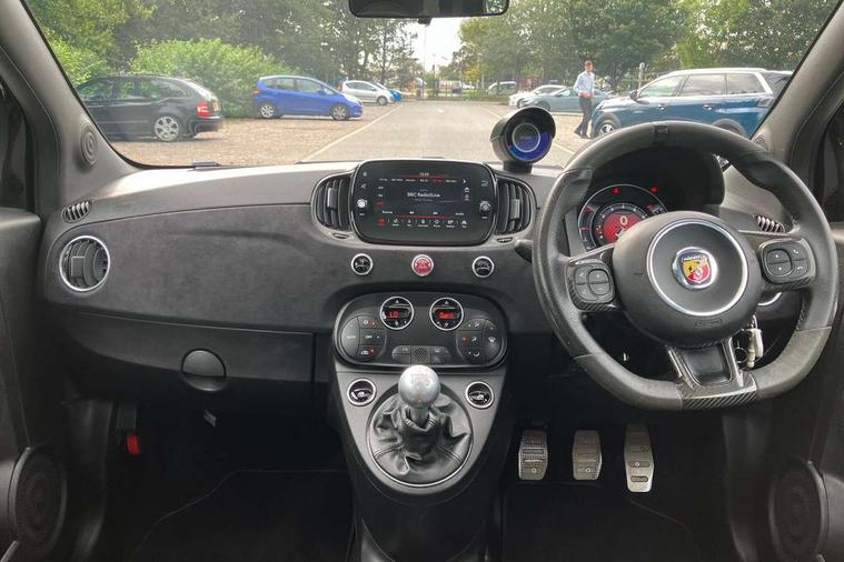 7" TFT instrument display with sports mode, Alcantara cockpit, Apple car play/Android Auto, Dualdrive PAS, eCall emergency call system, Garrett turbo, Rain and dusk sensors, Rear parking sensors, Sports button, Trip computer, Wakeup screen for 7" radio, Koni front and rear suspension with Frequency Selective Damping technology, Torque transfer control (TTC), 3rd brake light, 695 side badge, Dual mode record monza exhaust system with four tailpipes, Electric adjustable heated door mirrors, Electric front windows, Front fog lights, LED daytime running lights, Oil cap with key, Privacy glass, Rear window defroster, Rear wiper, Tar cold grey front and rear bumper mouldings and door handles, 12V socket, 2 seat bench in 2nd row, Aluminium gearknob, Driver/front passenger seat height adjustment, English handbook, Fabric abarth corsa racing seats upholstery by sabelt with anthracite grey shell, Floor mats, Front head restraints, Front passenger seat memory, Glovebox, Height adjustable steering wheel, High performance BMC air filter, Interior stowage net, Rear headrests, Single front passenger seat, Sports steering wheel in leather and Alcantara with carbon fibre detailing, Stainless steel pedal covers, Cool Pack - 695/695C, Tech Pack - 695/695C, 240x11 mm Drilled rear brake discs, 305x28 mm Drilled and ventilated front brake discs, ABS, Driver and passenger airbags, Drivers knee airbag, ESP + ASR/MSR + HBA + Hill holder, Front side airbags, Head protection side airbag, Tyre pressure monitoring system, Window airbags, Alarm, Immobiliser, Power door locks, Remote central locking, Tar cold grey dashboard, Fix and go kit,
