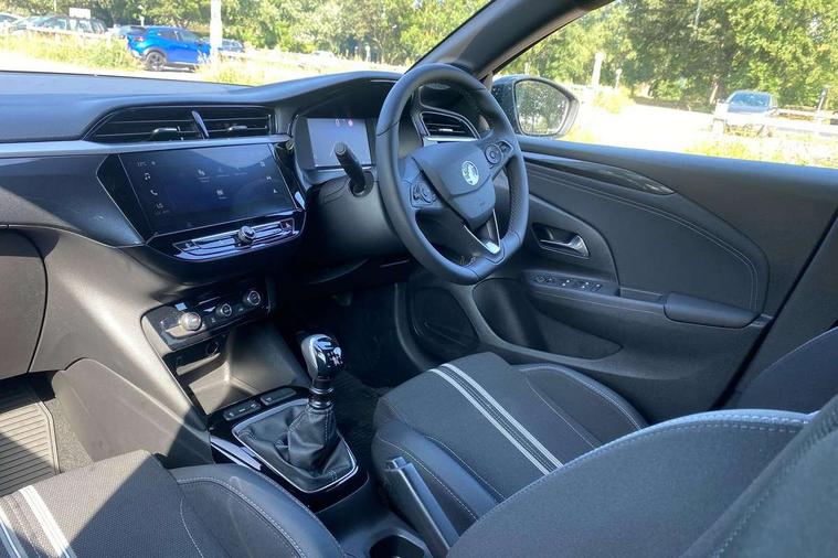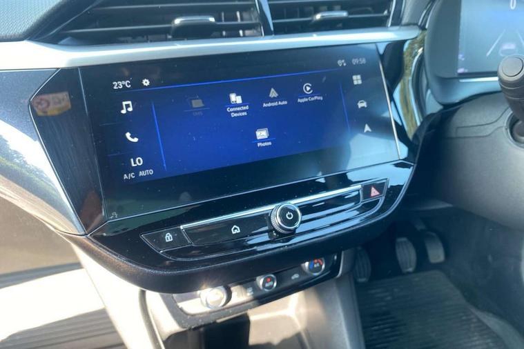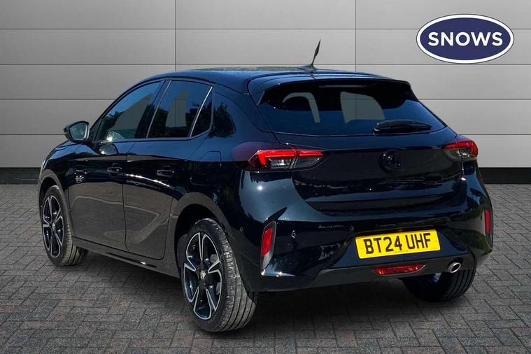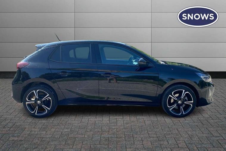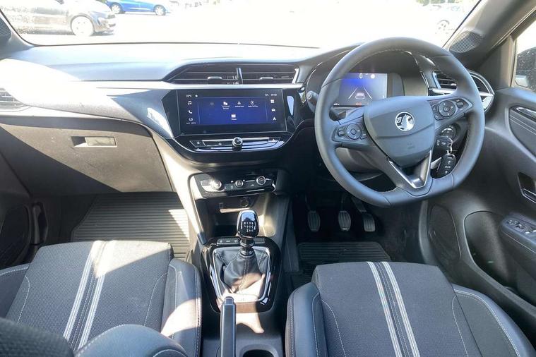130 degree rear view camera, 7 inch digital instrument cluster display, Auto tele unit 3S vehicle communication system, Breakdown call (b-call), Central facia display with digital clock, outside air temperature and audio information, Cruise control with intelligent speed limiter, Driver drowsiness alert system, E-call, Engine oil life indicator, Front and rear parking sensors, Front camera system, Instrumentation - Speedometer, rev counter, low fuel gauge warning light + water temperature gauge warning light, Lane departure warning, Lane keep assist, Lights on audible warning, Multi function trip computer, RDS with traffic programme, Service indicator, Side blind spot alert, Smartphone projection, Speed sensitive power steering, Speed sign recognition, Sport drive mode selector, Start/stop system, Vauxhall connect box, Wireless Apple CarPlay/Android Auto, Electronic returnless fuel system, Petrol Particulate Filter, Under body shield for aero, AM/FM stereo radio, Bluetooth A2DP audio streaming, DAB Digital radio, Multimedia with 10-inch touchscreen, Six speakers, Steering wheel audio, phone and cruise controls, USB type C port, 3rd brake light, Automatic headlight control system, Black DLO, Black door mirror housings, Black Griffin logo and vizor frame, Black lower side window mouldings, Body colour door handles, Body colour front and rear bumpers, Bonnet/headlight/wiper structure, Corsa lettering in tailgate, Dark tinted rear side windows + tailgate window, Electrically adjustable and heated door mirrors, Electrically folding door mirrors, Electrically operated front and rear windows with safety auto reverse and one touch up/down facility, Electrochromic automatic anti-dazzle rear view mirror, Flexible roof mounted aerial, Glazed tailgate and heated rear window with wash/wipe facility, Hazard warning lights, Headlamps for left side traffic, High beam assist, High gloss black finish B pillar, LED daytime running lights, LED fog lights, LED Headlights, LED tail lamp, Rain sensitive windscreen wipers, Rear fog lamp, Rear reversing lights, Rear side wing doors, Rear wiper, Solar heat absorbing windscreen and windows, Sports front and rear body styling for upper and lower bumper design, Two speed windscreen wipers with variable intermittent wipe, Windscreen and side window demist vents, 12V power sockets, 3 bench rear seats in 2nd row, 3 spoke flat bottomed leather effect steering wheel with satin chrome effect bezel, 4 speed fan with illuminated controls, 4 way manual co-driver seat reach fore/aft, backrest upright/recline, 6 way manual adjustable driver seat height up/down, reach fore/aft, backrest upright/recline, 60/40 split folding rear seat, Banda cloth upholstery, Black headliner, Cabin particulate filter - removes dust, airborne particles and pollen, Driver/passenger sunvisors with vanity mirrors + covers, Electronic climate control (ECC), Four adjustable facia vents, Front cupholder, Front headrests, Height adjustable head restraints, Illuminated glovebox with lid, Interior courtesy light, Internal chrome door handles, LED boot light, Polyurethane gear knob/lever, Reach and rake adjustable steering column, Rear cupholder, Rear headrests, Right hand drive (RHD), Rubber pedals, Single dome lamp with dual front reading lamps, Single front passenger seat, Sports style front seats, Two litre open door pockets, 3 rear 3 point seatbelts, Anti-lock braking system (ABS), Automatic emergency braking with pedestrian detection, Cornering brake control, Deactivation switch for front passenger's airbag, Drag torque control, EBD - Electronic brakeforce distribution, Electrical child lock system in rear door latch, Electronic Stability Programme (ESP), Emergency brake assist, Forward collision alert, Front seatbelt unfastened audible warning and warning light, Hill hold and start system, ISOFIX child seat mountings incorporating top tether anchor points located on second row rear seats, Manual handbrake, Seatbelt pretensioners, Single tone horn, Six airbags - Driver's dual stage airbag/front passenger's dual stage airbag/front seat side impact airbags/full size curtain airbags, Straight line stability control, Traction control, Tyre deflation detection system, Tyre pressure monitoring system, 2 keys one folding with integral remote, Electronically protected audio equipment, Engine deadlock and immobiliser, Freewheeling door locks, Locking wheel nuts, Remote control central locking, Remote control security alarm system, Remote locking fuel filler flap, Steering column lock, Visible vehicle identification number, Silent black facia with liquid palladium insert, 17" Diamond-cut hi-gloss black alloy wheels,