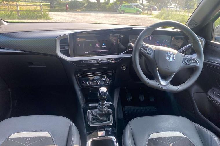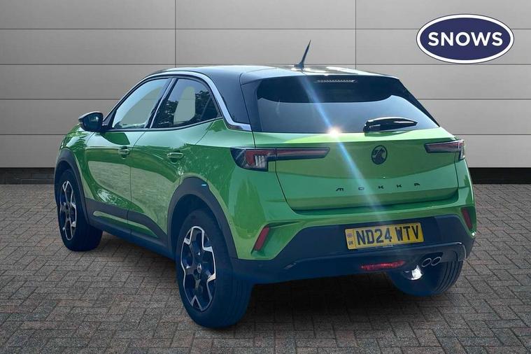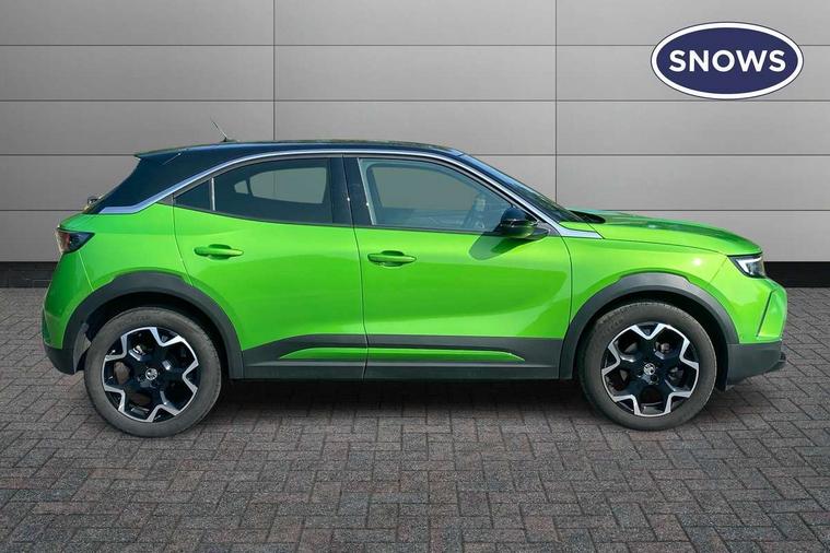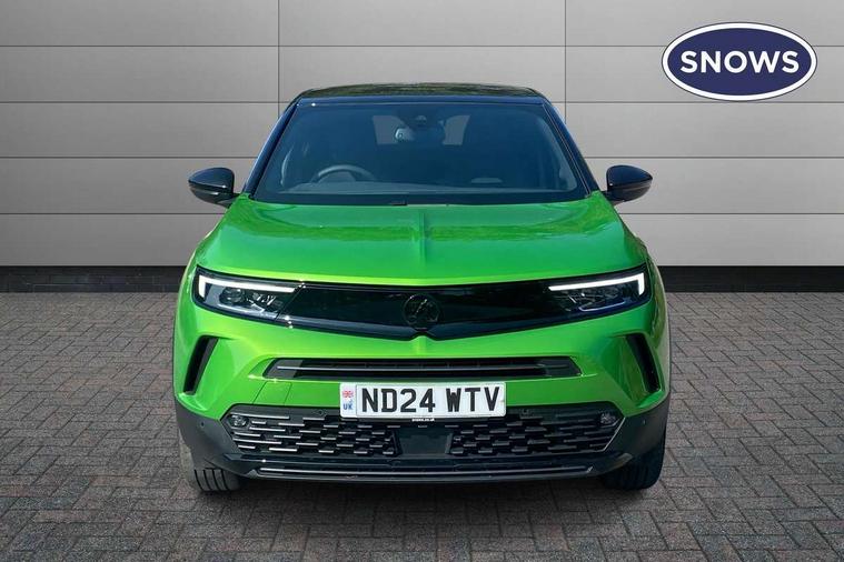 12" digital instrument cluster, Adaptive cruise control with speed limiter, Digital instrumentation with digital speedometer, rev counter, fuel and water temperature gauge, Driver drowsiness alert system, Driver information display with multi function trip computer, audio info, digital clock and outside air temperature with ice warning function, Engine start/stop button, EV information display, Extended traffic sign recognition, Front and rear parking distance sensors, Front camera and radar system, Gearshift up/down indication light, Lane keep assist system (LAS) with Lane departure warning system (LDWS), Lights on audible warning, Panoramic rear view camera, Power assisted speed sensitive steering, RDS with traffic programme, Side blind spot alert and flank guard, Smartphone integration compatible with Apple CarPlay and Android Auto, Sports switch with engine sound enhancement, Start/stop system, Vauxhall connect with e-Call, 6 speed manual transmission, 6 speakers, AM/FM stereo radio with 36 station presets, DAB Digital radio, Flexible Roof Mounted Radio Aerial, Front USB connection, Mobile phone portal - bluetooth connect, vehicle microphone, handsfree calls, SMS read out and reply, phone book access, Multimedia Navi Pro with 10" colour touchscreen, Steering wheel mounted controls, Two rear USB sockets, Adaptive brake lights, Auto high beam assist, Automatic headlamp levelling, Automatic lighting control with tunnel detection, Automatically dimming anti dazzle rear view mirror, Black door mirror housings, Black front and rear bumper inserts, Black Griffin logo and vizor frame, Body colour door handles, Body colour front and rear bumpers, Dark tinted rear side windows + tailgate window, Electric adjustable/heated/folding door mirrors + puddle lights, Electrically operated front and rear windows with safety auto reverse and one touch up/down facility, Hazard warning lights, Heated rear window+rear wash/wipe, Integrated black tailgate spoiler, IntelliLux Matrix LED headlights with adaptive forward lighting with anti glare beam, LED 3rd brake light, LED daytime running lights, LED front fog lamps, LED side repeat indicators, LED tail lights, Rear foglight, Rear side wing doors, Reversing light, Solar heat absorbing windscreen and windows, Two speed rain-sensitive windscreen wipers with variable intermittent wipe, Windscreen and side window demist vents, 12V Accessory socket, 3 seat bench in 2nd row, 3 spoke flat bottomed leather effect steering wheel with satin chrome effect bezel, 4 speed fan with illuminated controls, 4 Way driver seat with lumbar and massage function, 6 way manual adjustable driver fore/aft, up/down with reclining seatback, 6 way manual adjustable front passenger fore/aft, up/down with reclining seatback, 60/40 split folding rear seat, Air recirculation system, Alcantara/leather upholstery, Black headliner, Cabin particulate filter - removes dust, airborne particles and pollen, Centre console with two cup holders at front and one in rear, Chrome effect interior door handles, Door pockets with two litre capacity, Driver and passenger sun visors with vanity mirror, Electronic climate control (ECC), Four adjustable facia vents, Four load restraint lashing eyes, Front centre armrest with storage, Front head restraints, Front map reading lights, Front seat back storage pockets, Fully carpeted load area, Heated front seats, Heated steering wheel, Interior courtesy light, Interior tailgate handle, Luggage compartment cover, Luggage compartment lighting, Movable boot floor, Reach + rake adjustable steering column, Single front passenger seat, Three height adjustable rear seat head restraints, Twin gas assisted tailgate struts, Black Pack with badge - Mokka, 2x Isofix child seat fitting on outer rear seats, 3x3 point rear seat belts, Anti-lock braking system (ABS), Child proof locks on rear doors, Cornering brake control, Deactivation switch for front passenger front and side impact airbags, Drag torque control, Driver and front passenger airbags, front seat side impact airbags, full size curtain airbags, Electronic brake force distribution, Electronic Stability Programme (ESP), Emergency brake assist, Enhanced automatic emergency braking with pedestrian detection, Forward collision alert at all speed, Hill start assist, Inertia reel lap and diagonal seatbelts for all seats, Seatbelt unfastened audible warning and warning light, Straight line stability control, Traction control, Tyre pressure monitoring system, Electronically protected audio equipment, Engine deadlock immobiliser, Freewheeling door locks, Key left in ignition audible warning, Keyless entry and start, Locking wheel nuts, Remote control central locking, Remote control ultrasonic security alarm system, Visible vehicle identification number, Black facia with silver trim insert, Instrument panel bar in polar silver, Light grey trim inserts on front doors, 18" bi colour alloy wheels,