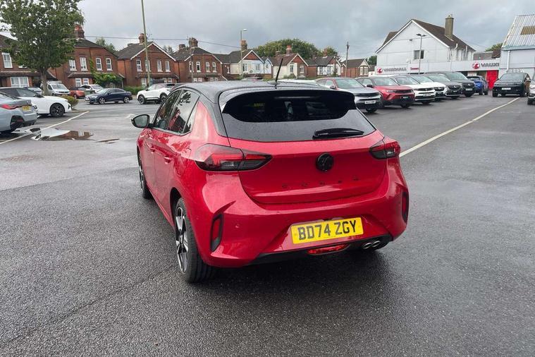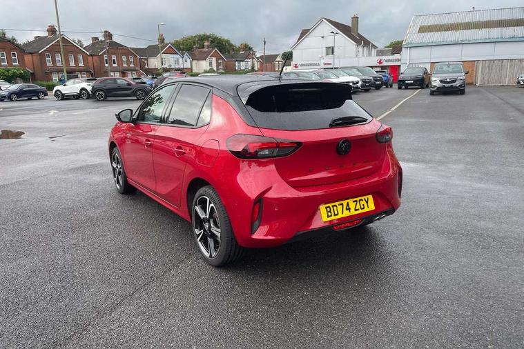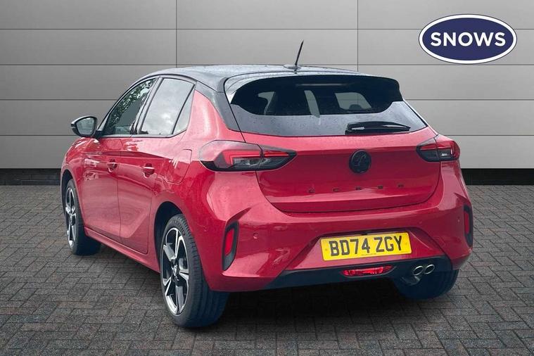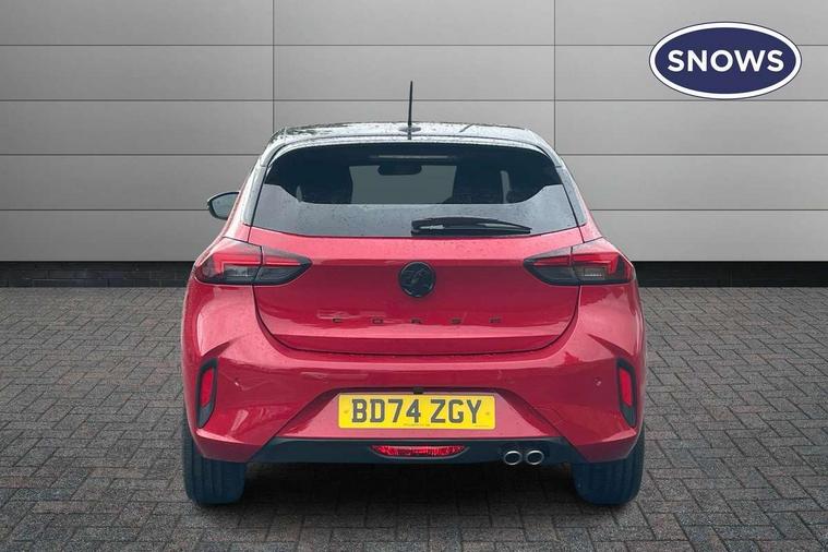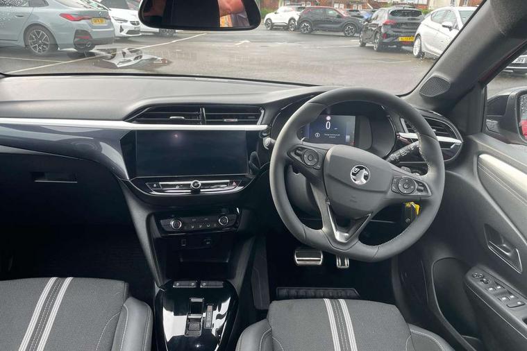 130 degree rear view camera, 7 inch digital instrument cluster display, Auto tele unit 3S vehicle communication system, Breakdown call (b-call), Central facia display with digital clock, outside air temperature and audio information, Cruise control with intelligent speed limiter, Drive modes (sport, normal, eco), Driver drowsiness alert system, E-call, Engine oil life indicator, Front and rear parking sensors, Front camera system, Instrumentation - Speedometer, rev counter, low fuel gauge warning light + water temperature gauge warning light, Lane departure warning, Lane keep assist, Lights on audible warning, Multi function trip computer, RDS with traffic programme, Service indicator, Side blind spot alert, Smartphone projection, Speed sensitive power steering, Speed sign recognition, Start/stop system, Vauxhall connect box, Wireless Apple CarPlay/Android Auto, Electronic returnless fuel system, Petrol Particulate Filter, Under body shield for aero, AM/FM stereo radio, Bluetooth A2DP audio streaming, DAB Digital radio, Multimedia with 10-inch touchscreen, Six speakers, Steering wheel audio, phone and cruise controls, USB type C port, 3rd brake light, Automatic headlight control system, Black DLO, Black door mirror housings, Black Griffin logo and vizor frame, Black lower side window mouldings, Body colour door handles, Body colour front and rear bumpers, Bonnet/headlight/wiper structure, Chrome effect tailpipe extension, Corsa lettering in tailgate, Dark tinted rear side windows + tailgate window, Electrically adjustable and heated door mirrors, Electrically folding door mirrors, Electrically operated front and rear windows with safety auto reverse and one touch up/down facility, Electrochromic automatic anti-dazzle rear view mirror, Flexible roof mounted aerial, Glazed tailgate and heated rear window with wash/wipe facility, Hazard warning lights, Headlamps for left side traffic, High beam assist, High gloss black finish B pillar, Intelli-LED headlights, LED daytime running lights, LED tail lamp, Rain sensitive windscreen wipers, Rear fog lamp, Rear reversing lights, Rear side wing doors, Rear wiper, Solar heat absorbing windscreen and windows, Sports front and rear body styling for upper and lower bumper design, Two speed windscreen wipers with variable intermittent wipe, Windscreen and side window demist vents, 12V power sockets, 3 bench rear seats in 2nd row, 3 spoke flat bottomed leather effect steering wheel with satin chrome effect bezel, 4 speed fan with illuminated controls, 4 way manual co-driver seat reach fore/aft, backrest upright/recline, 6 way manual adjustable driver seat height up/down, reach fore/aft, backrest upright/recline, 60/40 split folding rear seat, Air conditioning with air recirculation facility, Alloy effect sport pedals, Banda cloth upholstery, Black headliner, Cabin particulate filter - removes dust, airborne particles and pollen, Driver/passenger sunvisors with vanity mirrors + covers, Four adjustable facia vents, Front centre armrest with storage, Front cupholder, Front headrests, Gearshift paddles, Height adjustable head restraints, Illuminated glovebox with lid, Interior courtesy light, Internal chrome door handles, LED boot light, Polyurethane gear knob/lever, Reach and rake adjustable steering column, Rear cupholder, Rear headrests, Right hand drive (RHD), Single dome lamp with dual front reading lamps, Single front passenger seat, Sports style front seats, Two litre open door pockets, 3 rear 3 point seatbelts, Anti-lock braking system (ABS), Automatic emergency braking with pedestrian detection, Cornering brake control, Deactivation switch for front passenger's airbag, Drag torque control, Driver and front passenger airbags, front seat side impact airbags, full size curtain airbags, EBD - Electronic brakeforce distribution, Electrical child lock system in rear door latch, Electronic parking brake, Electronic Stability Programme (ESP), Emergency brake assist, Forward collision alert, Front seatbelt unfastened audible warning and warning light, Hill hold and start system, ISOFIX child seat mountings incorporating top tether anchor points located on second row rear seats, Seatbelt pretensioners, Single tone horn, Straight line stability control, Traction control, Tyre deflation detection system, Tyre pressure monitoring system, 2 keys one folding with integral remote, Electronically protected audio equipment, Engine deadlock and immobiliser, Freewheeling door locks, Locking wheel nuts, Remote control central locking, Remote control security alarm system, Remote locking fuel filler flap, Steering column lock, Visible vehicle identification number, Silent white fascia with blanc banquise insert, 17" Diamond-cut hi-gloss black alloy wheels,