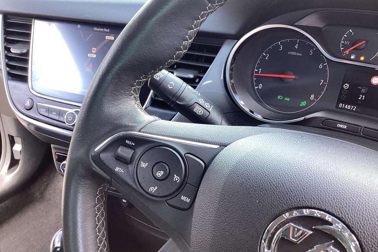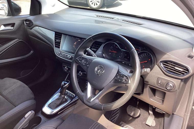 2D/3D street level mapping, 3.5" colour instrument display, Advanced parking assist and blind spot detection with front and rear parking sensors, Audible lights on warning, Central facia display - Audio information, Digital clock with automatic RDS time adjustment and outside air temperature with ice warning function, Cruise control + speed limiter, Driver drowsiness alert system, Driver information display - Total mileage, service due indicator, oil life, E-call, European coverage, Forward collision warning, Front camera system, Instrumentation - Speedometer, rev counter, low fuel gauge warning light + water temperature gauge warning light, shift up/down indicate light, Lane departure warning with lane keep assist, Multi function trip computer, Multimedia sat nav pro with 8" colour touchscreen, AM/FM, Bluetooth streaming, Bluetooth mobile phone portal, apple CarPlay/Android Auto + 6 speakers, Panoramic rear view camera, Points of interest search and Map updates via USB, RDS with traffic programme, Refridgerant low indicator, Smartphone projection, SMS read out and reply, Speed sensitive power steering, Speed sign recognition, Start/stop system, Vauxhall connect, Vehicle microphone, Front suspension - Independent, Lightweight MacPherson struts with gas pressure dampers and coil springs with anti-roll bar, Front wheel drive, Rear suspension - Compound crank with coil springs and hydraulic dampers, 2 x USB connections, DAB Digital radio, Steering wheel mounted audio/phone/cruise controls, 2 speed wipers/wash wipe/intermittent wipe, Automatic anti dazzle rear view mirror, Automatic headlamp levelling system, Automatic high beam control with cornering light, Automatic lighting control, Black door mirror caps, Black griffin logo, vizor frame, rear lettering and skid plates, Body colour door handles, Body colour front and rear bumpers, Chrome effect upper window moulding, Collapsible windscreen wipers, Dark tinted rear side windows + tailgate window, Electrically adjustable, heated and power folding door mirrors, Electrically operated front and rear windows with safety auto reverse and one touch up/down facility, Flexible roof mounted aerial, Hazard warning lights, Headlamps for left side traffic, Heated rear window, Integrated tailgate spoiler, Intermittent rear wash/wipe, LED 3rd brake light, LED daytime running lights, LED front fog lights, LED Headlights, LED side repeat indicators, LED tail lights, Rain sensitive windscreen wipers, Rear fog lights, Rear side wing doors, Reversing light, Side window demist vents, Silver roof rails, Solar heat absorbing windscreen and windows, Upper and lower bumper design, Welcome lighting, Windscreen demist vents, 12v power outlet - front, 12V power outlets on rear seat, 3 seat bench in 2nd row, 3 spoke leather covered steering wheel, Air recirculation facility, Alcantara upholstery, Ambient lighting, Anti submarining ramps in front seats, Cabin particulate filter - removes dust, airborne particles and pollen, Centre console storage box with sliding lid, Centre console with two cup holders and open storage box, Chrome effect digital instrument cluster surround, Driver's vanity mirror with flip up cover, Dual zone electronic climate control, Ergonomic active driver’s and front passenger’s seat with AGR approved 8 way adjustable, seat cushion extension, 4 way electrical lumbar adjustment, Fade up/fade down on interior lighting, Four adjustable facia vents, Front and rear central courtesy light, Front centre armrest for drivers seat, Front door pockets with 1.5 litre bottle holder, Front map reading lights, Fully carpeted luggage area, Glovebox with lid, Height adjustable front/rear head restraints, Illuminated load area, Isofix system on outer rear seats, Jet black fabric side bolsters, Luggage compartment cover, Multi-speed fan with Illuminated control, Passenger assist handles, Passenger's illuminated vanity mirror with flip up cover, Reach + rake adjustable steering column, Rear dome lamp, Rear door pockets with 0.5 litre bottle holder, Rear floor ventilation ducts, Satin chrome effect bezel on steering wheel, Single front passenger seat, Storage pockets on front seat backs, Versatility pack - Crossland, Winter pack - Crossland, 3x3 point rear seatbelts, ABS, Automatic emergency braking with pedestrian detection, Child locks on rear doors, CSC - Cornering stability control, Deactivate switch for side impact airbags, Deformation zones front and rear, Driver and front passenger airbags, Dual seatbelt pretensioners on front seats, EBD - Electronic brakeforce distribution, Energy absorbing steering column, Engine drag torque control, ESP + traction control, Front side impact airbag, Full size curtain airbags, Hill start assist, Hydraulic Brake Assist (HBA), Hydraulic brake boost, Inertia reel lap and diagonal seatbelts for all seats, Passenger airbag deactivate switch, Rear seat belt pretensioners, Reinforced passenger safety cell, Seatbelt load limiter, Side impact protection beams, Smart seatbelt reminder for front and rear seats, Tyre pressure monitoring system, 2 remote folding keys, Electronically protected audio equipment, Engine immobiliser, Keyless entry and start, Locking wheel bolts, Remote control central locking, Remote control security alarm system, Visible vehicle identification number, Black facia with dark grey trim inserts, Cluster black with chrome rings, Silver trim inserts on front doors, 17" Five twin spoke diamond cut bi colour alloy wheels,