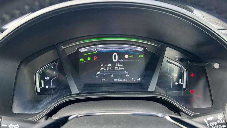 Adaptive cruise control, Agile handling assist, Bluetooth hands free telephone connection, Economy mode, Electric power steering, Emergency stop signalling system, Forward collision warning, Front and rear parking sensors, Honda CONNECT with GARMIN Navigation + 7" touchscreen, DAB radio, Apple CarPlay, Android Auto, Aha app integration and internet browsing, Intelligent multi info display, Lane departure warning system, Lane keep assist system, Low speed following, Rear view camera, Road departure mitigation, Speed limiter, Traffic sign recognition, Vehicle stability assist, 2 USB sockets in rear, 2x USB sockets in front, 9 speakers, DAB Digital radio, Dashboard centre speaker, Front tweeters, Steering wheel mounted controls, Subwoofer, Aspheric door mirrors, Auto dimming rear view mirror, Automatic headlights with dusk sensor, Black mirror caps, Body colour bumpers, Body colour door handles, Dark chrome grille, tailgate, front and rear bumper garnish, Door mirrors tilt when reversing, Electric front windows/one touch facility, Electric rear windows + one touch facility, Electrically adjustable and heated door mirrors, Electrically retractable door mirrors, High beam assist, LED daytime running lights, LED front fog lights, LED Headlights, LED rear lights, Pearlescent paint, Rain sensor, Rear privacy glass, Rear wiper, Shark fin roof aerial, Tailgate spoiler, Welcome home function, 60/40 split folding rear seat, Accessory sockets, Black edition embossed seats, Black headlining, Cargo hooks, Courtesy lights, Driver's electric adjustable lumbar support, Driver/passenger front seatback pockets, Driver/passenger sunvisors with illuminated vanity mirrors, Dual zone automatic climate control, Front centre armrest, Front map lights, Height adjustable driver's seat, Hybrid emblem, Illuminated glovebox, Isofix child seat preparation, Leather steering wheel, Leather upholstery, Paddle shift controls, Piano black interior door handles, Piano black shift knob, Piano black steering wheel, Rear air vents, Rear centre armrest, Rear headrests, Rear reading lights, Rear seat conversation mirror, Sunglasses holder with mirror, Tilt/telescopic adjustable steering wheel, Tonneau cover, Trunk light, 5 x 3 point seatbelts, ABS/EBD, Anti-whiplash front headrests, Brake assist function, Collision mitigation braking system, Deflation detection system, Driver airbag, Electronic parking brake with auto hold, Front and rear curtain airbags, Front and rear seat belts with emergency locking retractor (ELR), Front side airbags, Hill start assist, Passenger airbag deactivate switch, Honda super locks, Immobiliser, Security alarm, Smart entry + Smart start, Ultrasonic security sensor, Dark wood trim, 18" Black alloy wheels, Tyre repair kit,
