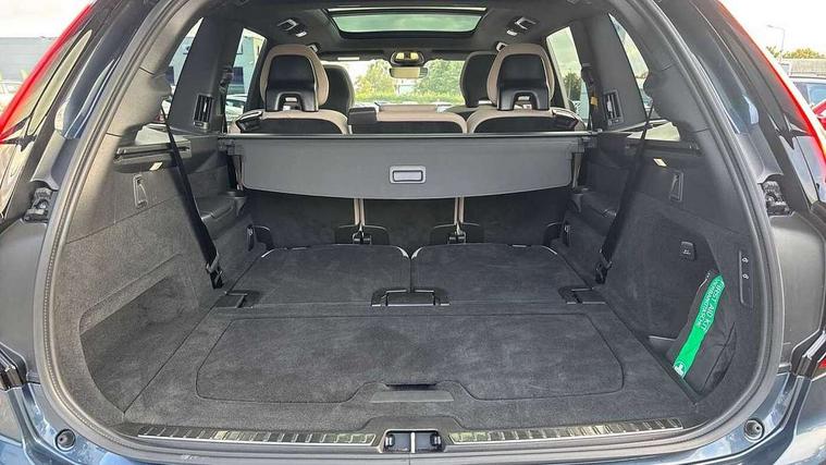 11.2" centre console touch screen, 12.3" Progressive Driver Display, 360 degree surround view parking camera with side proximity sensors, Adjustable steering wheel force, Apple carplay (wired), Bluetooth handsfree system, Drive mode settings, Driver alert control with lane keeping aid, Driver assistance (pilot assist and adaptive cruise control), Driver awareness - Blind spot information system with steer assist, cross traffic alert with autobrake and rear collision warning and mitigation, Emergency call service, Front and rear park assist, Google Automotive Services - Navigation with Voice recoginition and google assistant, Handsfree power tailgate opening and closing, Intelligent speed assistance, Oncoming Lane Mitigation, PAS, Power operated tailgate, Service interval indicator, Speed sensitive steering, Trip computer, Volvo on call, Wireless/Inductive Mobile Phone Charging, 6m 3 phase 16amp Type 2 / mode 3 charge cable, 7m 10amp charge cable with 3 pin plug, 8 speed automatic transmission with start/stop + manual change functions, Active four C chassis - four corner adaptive dampers with electronic air suspension, Electric rear axle drive, Lithium-ion battery, On board charger - 6.4 kW 2 phase/3.7kW single phase, Recharging port located in nearside front wing, DAB Radio (Digital Audio Broadcasting), Low speed exterior sound speaker, Premium Sound by Harman Kardon, dirac unison, dolby pro logic II surround sound, 13 speakers/600W output and fresh air subwoofer, Steering wheel remote infotainment controls, Adaptive brake lights with high level LED brake lights, Auto dimming interior + exterior mirrors, Auto folding and heated power door mirrors, Automatic headlight levelling system, Automatic matrix LED headlights with Adaptive shadow technology and Active high beam, incorporating Day running lights, Body colour bumpers, Front and rear power windows, Headlight cleaning system, Heated front windscreen, High gloss black door mirrors and window surround, High gloss black front and rear bumper deco, High gloss black front grille and deco, Home safe and approach lighting, Integrated roof rails in high gloss black, Power glass tilt and slide panoramic sunroof with sun curtain, Puddle lights, Rain sensor with automatic windscreen wiper activation, Rear side wing doors, Rear wash/wipe with intermittent wipe setting, Roof antenna, Roof spoiler, Visible VIN plate, 12V socket in luggage compartment, 2nd Row centre armrest with and cupholders, 3 Spoke tailored sport steering wheel with chrome trim, 4 zone electronic climate control with Clean zone air quality system + pollen filter, A-pillar parking ticket holder, Air conditioning for 3rd row of seats, Air purifier PM2.5, Ambient door and instrument panel lighting, B Pillar ventilation, Bright metal luggage scuff plate, Centre console cupholders and storage, Floor mats, Front and rear courtesy lights, Front and rear door pocket illumination, Front footwell and side step illumination, Front headrests, Front reading lights, Front seat cushion extensions, Front tunnel storage illumination, Glovebox compartment light, Heated front seats, Heated rear seats, Heated steering wheel, Height/reach adjustable steering column, Illuminated front and rear aluminium tread plates, Illuminated luggage compartment, Illuminated tailgate, Illuminated vanity mirrors + ticket holder, Inner door release handle illumination, Isofix outer rear child seat preparation in 2nd row, Load cover, Load protection net, Lockable glovebox compartment, Luggage compartment divider with grocery bag holder, Outboard armrest with cupholder and storage for third row passengers, Power driver seat with multi directional lumbar support and memory for seat and exterior mirrors, Power folding 2nd row headrests, Power passenger seat with multi directional lumbar support and memory, Rear footwell and side step illumination, Rear headrests, Rear reading lights, Second row integrated child seat for centre seat, Single front passenger seat, Textile headlining, Three 2nd row individual folding passenger seats with fore/aft adjustment, Two 3rd row individual folding passenger seats, Underfloor luggage compartment storage, 7 three point seatbelts, City safety with steering support includes pedestrian, cyclist detection, front collision warning with full auto brake and rear auto brake, Driver and passenger airbags, Drivers knee airbag, First aid kit, Front seats SIPS airbags, Hill descent control - off drive mode, Hill start assist, IC (Inflatable Curtains) - Full Length, Passenger airbag cut-off switch, Power child locks on rear doors, Power parking brake with auto hold function, Road sign information display, Run off Road Protection, Seatbelt reminder and pretensioners for all seats, SIPS (Side Impact Protection System), Slippery road and hazard light alert, Stability and Traction Control with Spin control, Engine Drag Control and Corner Traction Control, Tyre pressure monitoring system, Vehicle deceleration control with Anti-lock Brake System, Electronic Brake Distribution and Emergency Brake Assist, Warning triangle, WHIPS whiplash protection system - front, 2x Key integrated remote control central locking + deadlocking system and auto open/close windows, Anti-theft alarm including immobiliser/volume sensor + level sensor, Keyless drive includes keyless entry and keyless start, Locking wheel nuts, Tailored instrument panel and door tops, Tyre sealant kit and compressor,