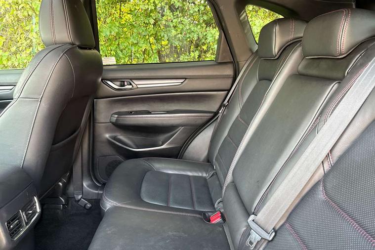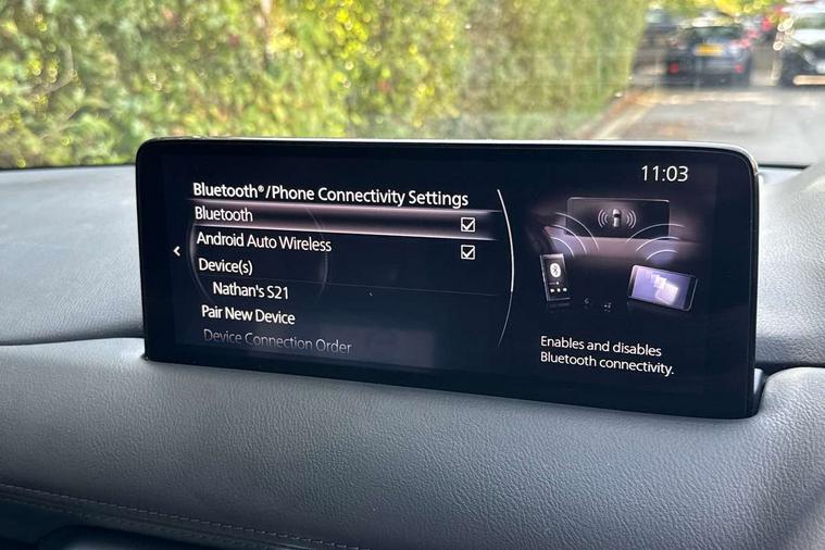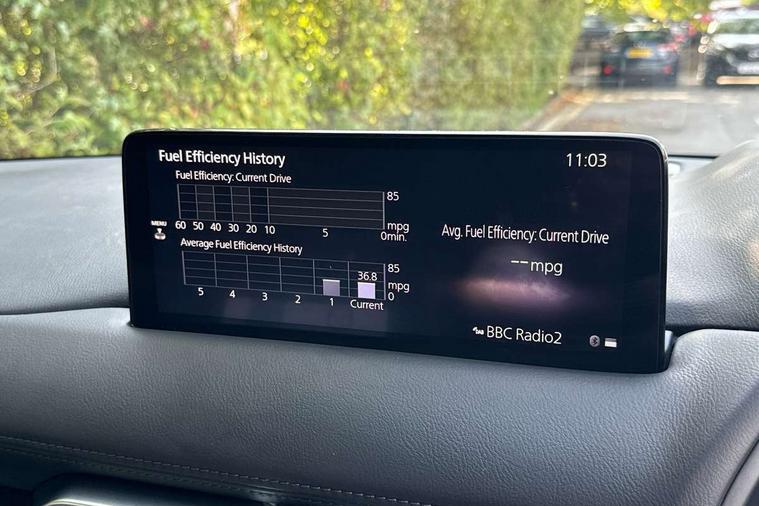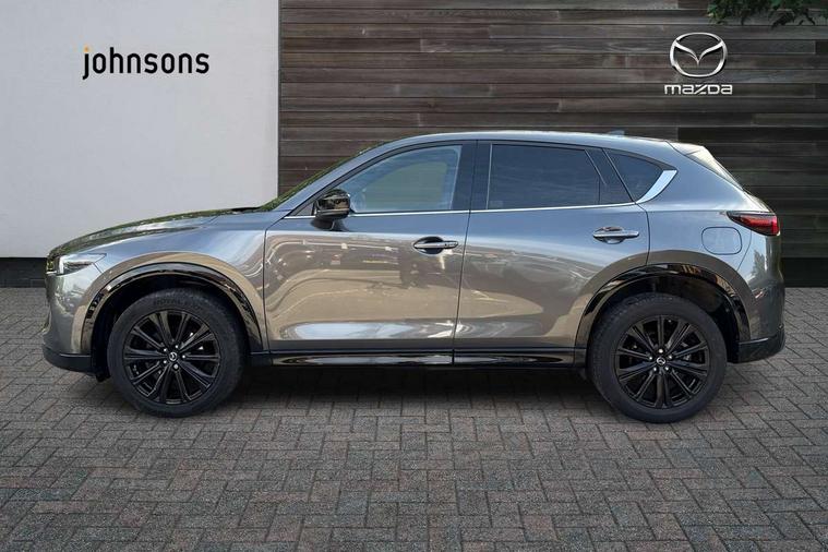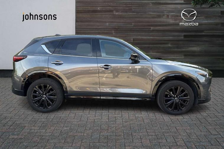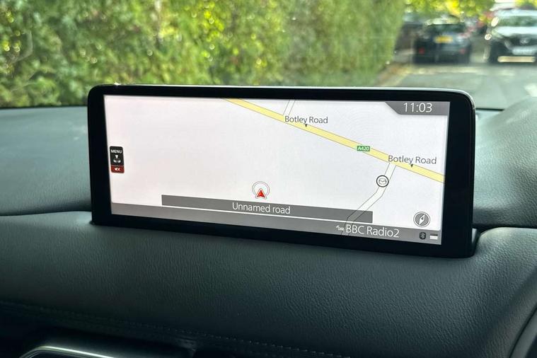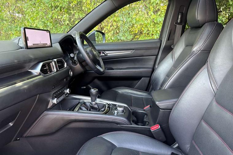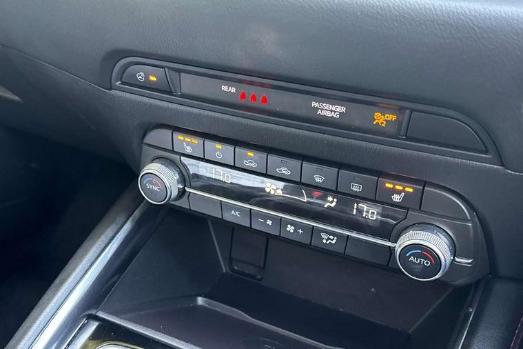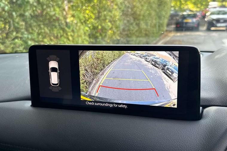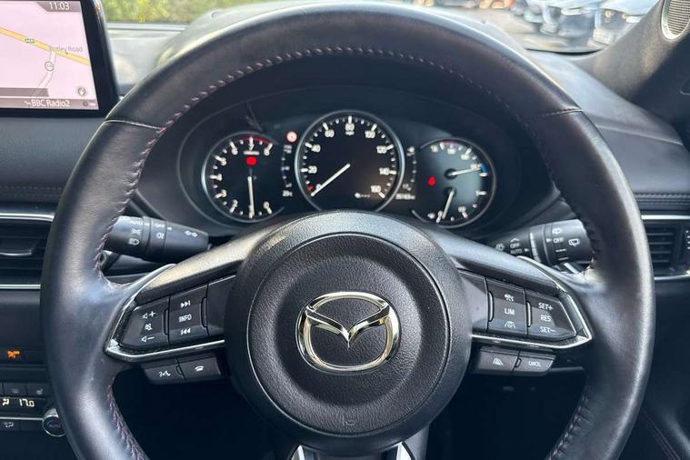 10.25" display with Mazda Connect infotainment, 7" colour TFT display, Advanced blind spot monitoring, Bluetooth connectivity with voice control, Collision prevention assist, Connected services, Cruising Traffic Support, Electric power steering, Emergency stop signalling system, Engine start/stop button, Forward collision warning, Front and rear parking sensors, Integrated navigation system, Intelligent speed assist, Lane departure warning system, Lane keep assist, Power liftgate, Qi wireless phone charging, Radar cruise control, Rear cross traffic alert, Reversing camera, Service indicator, Traffic sign recognition (TSR), Trip computer, Windscreen projected colour active driving display (HUD) with memory, Wireless apple car play/android Auto, Cylinder Deactivation, i-stop, AM/FM radio, Bluetooth audio streaming, Bose premium sound system with 10 speakers, DAB Digital radio, Multimedia Commander including separate volume dial, Steering wheel mounted audio controls, Adaptive front lighting system, Auto dimming rear view mirror, Automatic headlights, Black honeycomb door trim decoration panel, Black honeycomb interior decoration panel, Body colour roof spoiler, Coming/leaving home lighting function, Door mirror integrated indicators, Dual large chrome tailpipes, Dusk sensitive headlamps, Electric front/rear windows with one touch auto up/down, Front grille in gloss black finish, Front grille in gloss black with red accent + gloss black signature wing, Gloss black B and C pillars garnish, Gloss black door mirrors, Gloss black front and rear lower bumper mouldings, Gloss black tire arch and side mouldings, High beam assist, Intermittent rear wash/wipe, LED auto levelling, LED daytime running lights, LED front fog lights, LED Headlights, LED third brake light, Power folding and heated door mirrors, Power tilt/slide sunroof, Privacy glass (rear side windows only), Rain sensing front wipers, Rear side wing doors, Red front grille accent, Red stitching and accents on door trim, knee pad, console lid, steering wheel, shift boots, Scuff plates, Shark fin antenna, Signature LED rear combination lights, Variable intermittent front wash/wipe, Windscreen wiper de-icer, 12v electrical power outlet, 3 seat bench in 2nd row, 3 stage heated front seats, 40:20:40 Karakuri fold-flat seat system, 6 way electric adjustable passenger seat, 8 way electric driver seat with lumbar support + memory, Black roof lining, Cargo room flat floor board with waterproof undertray, Driver seat power slide, recline and height adjustment, Driver, Front passenger and two rear grab handles with coat hooks, Driver/passenger front seatback pockets, Driver/passenger sunvisors + illuminated vanity mirrors (drivers with ticket holder), Dual zone climate control, Folding centre armrest with 2 cup holders, Front and rear door pockets, Front centre storage with two cupholders, Front passenger seat power slide, recline and height adjustment, Gear shift indicator, Heated steering wheel, Humidity sensor, Illuminated glovebox, Interior dome light with integral spotlight, ISOFIX child seat anchorage points attached on outer rear seats, Karakuri tonneau cover, Leather upholstery, Leather wrapped steering wheel and gear knob, Luggage compartment LED lighting, Luggage compartment power outlet, Rear air vents, Rear headrests, Rear seat recline, Roof mounted sunglasses holder, Single front passenger seat, Three height adjustable head restraints, Tilt/height adjustable steering wheel, USB Connectivity (2x front Type-C, 2x rear Type-B), White interior LED illumination lighting, 3 point front seatbelts with pre-tensioners, 3 rear 3 point seatbelts, ABS, Advanced Smart City Brake Support - SCBS, Child locks on rear doors, Driver and front passenger side airbags, DSTC-Dynamic Stability and Traction Control, Dual front airbags, Electronic brake force distribution, Electronic parking brake with auto hold, ESP, Front and rear curtain airbags, Front passenger airbag deactivation, G-Vectoring control, Hill hold assist, Seatbelt reminder front and rear, Single stage passenger airbags, Smart brake support with forward obstruction warning, Tyre pressure monitoring system, Automatic door locking when moving off, Deadlock, Immobiliser, Power door locks, Remote central locking, Smart keyless entry, Thatcham Cat.1 alarm, 19" Black alloy wheels, Tyre repair kit,