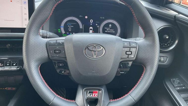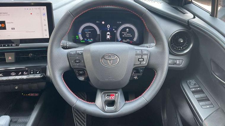 12.3" Digital Combimeter, 12.3" multimedia display screen, 4 rear parking sensors, Acceleration suppression at low speed, Adjustable speed limiter, Blind spot monitor, Bluetooth connectivity, Built-in and cloud navigation, Colour multi information display, Digital speedometer, Digital tachometer, eCall emergency call system, Electric power steering, Emergency driving stop system, Emergency steering assist, Front parking sensors with auto braking, HUD - Head up Display, Hybrid system indicator, I/P center cluster X, Instrument finish panel, Intelligent adaptive cruise control, Intelligent parking sensors (objects and vehicle), Lane Departure Alert (LDA) switch on steering wheel, Lane departure alert with steering control, Lane trace assist, Memory on speed limiter, MyT connected services, Power tailgate, Pre collision system with emergency steering assist, Pre collision system with intersection detection, Proactive driving assist (PDA), Push button tailgate release, Rear cross traffic alert, Remote boot door release in cabin, Reversing camera, Reversing camera display in audio screen, Road sign assist - RSA, Safe exit assist, Smart entry and push button start, Smart voice assist, Start and stop, Static guide lines on reversing camera, Toyota Smart Connect multimedia system with wireless Smartphone integration incl Apple CarPlay, Voice recognition, Wireless phone charger, Electric accelerator pedal, Fast charger 32A Mennekes cable, Front and rear stabilizers, Vehicle Stability Control (VSC), 9 loudspeakers, Aux-in connector, DAB Radio (Digital Audio Broadcasting), Front USB Type-C connector, JBL Premium Sound System, Rear USB Type-C connector, Road events, Toyota touch 2 with go navigation, USB connector integrated with radio and CD player, Anti-jam protection on power windows, Auto dimming rear view mirror, Auto high beam, Auto up and down function on all power windows, Auto wipers, Automatic headlights, Automatic headlights cut-off, Automatic rear flashing hazard lights, Automatically retractable door mirrors, B - Pillar in Black, Bi-tone+ with black rear bumper extension, Black bi-tone roof, Black centre air vent, Black painted insert on boot door, Black side air vents, Black wheel arch mouldings, Body colour door handles, Body coloured front bumper, Clear headlights design, Dark grey surround on lower front grille, Electric heated door mirrors, Emergency brake-light signal (EBS), exhaust tail pipe and diffuser, Flush front and rear door handles, Follow me home headlights, Front and rear power windows, Fuel caution label, G-mesh front side grille, Gloss black door belt moulding, Gloss black lower front grille, GR sport front aluminium scuff plates, Headlight cut off reminder, LED daytime running lights, LED fog lights, LED front light guide, LED Headlights, LED High mounted stop light, LED rear brake lights, LED rear combination lights, LED reverse light, Manual headlight levelling, Noise reduction layer on front windows, Noise reduction layer on windscreen, Piano Black Front Side Grille, Piano black rear spoiler, Power adjustable door mirrors, Pre wiring for towing hook, Premium Bi-tone Black Rear Execution, Privacy glass, Puddle lights, Rain sensor, Rear bumper with dark grey insert, Rear fog lamps, Rear side wing doors, Rear tailgate, Rear window defogger, Rear window wiper, RHD aiming, Satin chrome centre air vent surrounds, Satin chrome insert on centre air vents, Satin chrome insert on side air vents, Satin chrome side air vent surrounds, Silver large centre cap surrounds, Standard roof, Turning signal integrated in door mirrors (LED), UV-filter on driver and passenger windows, UV-filter on rear windows, Variable front intermittent wipers, Wing liner front and rear with sil, 12v power outlet - front, 2 rear coat hooks, 220v power output in luggage compartment, 3 bench rear seats in 2nd row, 3 rear headrests, 3 spoke premium synthetic leather steering wheel, 60/40 split folding 2nd row rear seats, Adjustable rear headrests, Assist grips front and centre pillar, Audio and telephone switches on steering wheel, Boot light, Boot under floor storage, Clean air filter, Cover front console box, Customisable multi-ambient illuminated entry system, Customisable multi-ambient lighting on front doors, Dark grey interior door handles, Door Edge Protection Film, Driver and front passenger personal light, Driver and front passenger Whiplash Injury Lessening seats, Dual zone automatic air conditioning, Floor mats - border/stitching, Front console box, Front cupholders, Front door pockets, Front headrests, Front passenger seatback pockets, Front premium sports seats, Front room light, Full-flat loading, Glovebox with internal light, GR logo on steering wheel, Hard tonneau cover, Heat pump system with humidifier, Heated driver and front passenger seats, Heated steering wheel, Hooks for luggage holding net, Hybrid key cover, ISOFIX child restraint system, LED Overhead Console light, Light on driver sun visor, Light on passenger sun visor, Luggage floor board with protection mat, Manual telescopic steering wheel, Manual tilt steering wheel, Manually height adjustable front passenger seat, Manually reclining front passenger seat, Manually sliding front passenger seat, Mat Fitment, Memory function on driver seat, Microphone on front personal light, Mirror on driver sun visor, Mirror on passenger sun visor, Multimedia switches on steering wheel, Nanoe-X air purifier, Pollen air filter with deodorising odour eliminator, Power adjustable lumbar support on driver seat, Power height adjustable driver seat, Power reclining driver seat, Power sliding driver seat, Power tilting cushion on driver seat, Rear door cup holder, Rear door pockets, Rear passenger personal lights, Red stitching on front door armrests, Red stitching on steering wheel, Remote air conditioning, Single compartment glovebox, Single front passenger seat, Slow opening on lower glovebox, Suede front door trim, Suede rear door armrest, Suede/s