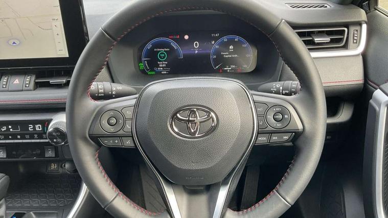 12.3" Digital Combimeter, Analog tachometer, Android Auto, Bluetooth system, Cyclist Detection, Digital speedometer, Drive mode selector, Driver attention alert system, eCall emergency call system, ECO-driving indicator, Electric power steering, EV audible alert, Front parking sensors, Full range intelligent adaptive cruise control, Hybrid system indicator, Lane departure alert with steering control, Lane trace assist, Lights on warning, Memory on adjustable speed limiter, MirrorLink, My T Connected services, Night Time Pedestrian Detection, Power boot opening and closing, Rear parking camera, Rear parking sensors, Remote boot door release in cabin, Remote boot door release in key, Road sign assist - RSA, Smart entry and push button start, Smartphone hazard lights notification, Tailgate, Toyota smart connect navigation, Traffic sign recognition, Trip computer, Voice control system, 6.6 kw fast charger, 7.5m cable with home charging plug, Vehicle Stability Control (VSC), 10.5" Toyota smart connect multimedia with wireless smartphone integration incl apple car play, 6 speakers, Auxiliary socket for external MP3 player, Digital audio broadcast (DAB)+, Gloss black surround on multimedia display, Multimedia Road Events, Rear USB connection, Toyota touch media system, USB in front armrest, Adaptive automatic high beam, Anti-jam protection on power windows, Auto dimming interior rear view mirror, Auto up and down function on power windows, Automatic headlights, Automatic wipers, Automatically retractable door mirrors, Black door moulding, Black front bumper, Black painted upper front grille, Black rear bumper, Black rear under-run, Black roof rails, Body colour door handles, Body colour rear roof spoiler, Body coloured door mirrors, Body coloured Shark-fin antenna, Chrome window surround, Dual exhaust pipes, Electric adjustable door mirrors, Electric heated door mirrors, Emergency brake-light signal (EBS), Follow me home headlights, Front wipers with variable intermittent facility, Honeycomb upper front grille, LED daytime running lights, LED dual beam projector headlights, LED front fog lights, LED front light guide, LED High mounted stop lamp, LED Indicators, LED rear brake lights, LED rear combination lights, PHEV badge in rear, Power front windows, Power rear windows, Privacy glass, Rear side wing doors, Rear windscreen defogger, Rear wiper, Silver front under-run, Smartphone remote power window operation, Trailer sway control, Turning signal integrated indicators in door mirrors, 1.5L front and rear bottle holder, 12 volt front socket, 12V power outlet - Boot, 220v power socket in boot, 2x Rear coat hooks, 3 rear headrests, 3 seat bench in 2nd row, 60/40 split fold rear seat back, Adjustable speed limiter switch on steering wheel, Array microphone, Black roof lining, Clean air filter, Cloth upholstery, Driver and front passenger personal light, Driver and front passenger Whiplash Injury Lessening seats, Driver and passenger seatback pockets, Driver and passenger sunvisors with illuminated vanity mirrors, Dual sided deck board in boot, Dynamic sports seats, Energy saving heat pump, Folding rear centre armrest, Front and rear cup holders, Front centre armrest, Front headrests, Front leather armrest, Front/rear roof mounted assist grips, Gloss black surround on centre console, Heated driver and front passenger seats, Heated rear seats, Illuminated entry system, Isofix child seat preparation, Leather gear shift with chrome surround, LED boot light, LED centre room light, Lockable glovebox, Manual telescopic and tilt 3-spoke nappa leather steering wheel, Manually reclining and sliding front passenger seat, Multimedia switches on steering wheel, Pollen filter, Power height-adjustable sliding reclining and lumbar support for driver seat, Rear console box, Rear door armrests, Rear passenger air vents, Rear view display in display audio screen with dynamic guide lines, Reclining rear seats, Remote dual zone automatic air conditioning, Retractable tonneau cover, Satin chrome interior door handles, Single front passenger seat, Sunglasses holder, Telephone and voice recognition switches on steering wheel, White ambient lighting in footwell, White ambient lighting on front cup holders, White ambient lighting on open tray, 3x3 point rear seatbelts, ABS/EBD, Acoustic vehicle alerting system, Adjustable front driver and passenger seat belt extender, Brake assist function, Brake hold function, Child proof door locks, Collision mitigation braking system, Driver/Front Passenger airbags, Driver/front passenger side airbags, Drivers knee airbag, Electronic parking brake, Electronic Stability Programme (ESP), Front and rear curtain airbags, Front and rear seatbelt reminder, Front passenger airbag detector, Hill start assist, Passenger airbag cut-off device, Pedestrian detection, Pre collision system, Seatbelt pretensioners with load limiters, Supplemental restraint system (SRS) airbags, Toyota safety sense 2, Traction control, Tyre pressure warning, Glass-breaking alarm sensors, Immobiliser, Intrusion alarm, Light - on and Key in reminder, Motion sensor alarm, Power door locks, Remote central locking, Smartphone remote door lock, Speed sensitive auto door locking, Tilt detection sensors, Black centre air vent surround, Gloss black centre console, Open tray on passenger dashboard, Soft-touch black upper dashboard with silver insert, Soft-touch texture on lower dashboard, 18" 5 spoke grey machined face alloy wheels, Full size spare wheel,