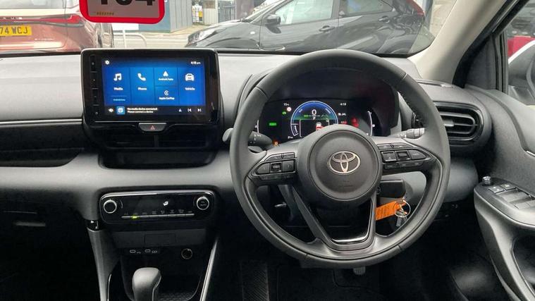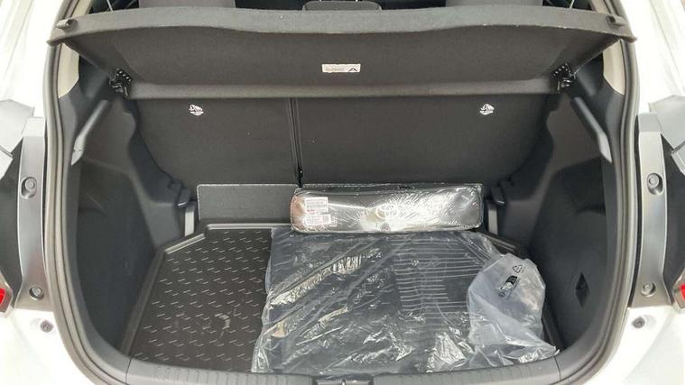 7" Digital Combimeter, Adaptive cruise control, Adjustable speed limit with speed warning, Bluetooth connectivity, Colour binocular inspired displays with digital speedometer, E-call, Electric power steering, Hybrid energy display, Lane trace assist, Multi information display switches on steering wheel, Pre-collision system (PCS), Reversing camera, Smartphone integration with Apple CarPlay and Android auto, Tailgate, Voice recognition, Vehicle Stability Control (VSC), 4 speakers, 9" Multimedia touch display, Toyota Touch 3 system with DAB radio, USB connection, Acoustic windscreen glass, Auto high beam assist, Auto windscreen wipers, Automatic headlights, Body coloured door mirrors, Electric adjustable heated door mirrors, Follow me home headlights, Front auto power windows with anti jam protection, LED daytime running lights, LED front fog lights, LED front light guide, LED Headlights, LED High mounted stop lamp, LED Indicators, LED rear light guide, Manual headlight levelling, Painted chequered front grille, Rain sensor, Rear auto power windows with anti jam protection, Rear privacy glass, Rear roof spoiler, Rear side wing doors, Rear wiper, Shark fin antenna, Turning signal integrated indicators in door mirrors, Variable front intermittent wipers, 3 adjustable rear headrests, 3 seat bench in 2nd row, 3 spoke leather steering wheel, 60/40 split folding rear seat, Active headrests, Adjustable boot height, Auto air conditioning, Coat hooks in rear grab handles, Cup holders (2 front & door), Data Communication Module (DCM) connected services, Fabric upholstery, Front armrest, Glovebox, Grey roof lining, Height adjustable driver's seat, Isofix seat fixing, Leather gearshift, Pollen filter, Shopping bag hooks, Single front passenger seat, Tilt/telescopic steering column, 3 point seatbelts on all rear seats, ABS+EBD+Brake assist, Electronic parking brake, Emergency brake light system (EBS), Front passenger airbag on/off switch, Front seatbelt reminder, Hill start assist control (HAC), Rear child proof door locks, Rear seat belt reminder, Supplemental Restraint System (SRS) 8 airbags: Driver & passenger's airbags, dual side curtain airbags, side impact airbags, front centre airbag, Toyota Safety Sense 3 with over the air updates, Tyre pressure warning system, 2x Master key, Alarm/immobiliser, Remote powered central double locking doors, Soft touch instrument panel, Space saver spare wheel,