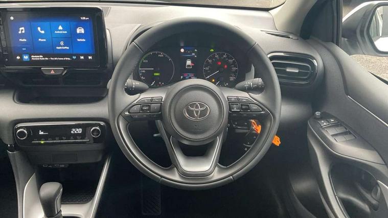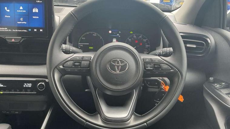 4.2" coloured TFT multi information display with analogue speedometer, Adaptive cruise control, Adjustable speed limit with speed warning, Bluetooth connectivity, E-call, Electric power steering, Hybrid energy display, Lane trace assist, Multi information display switches on steering wheel, Pre-collision system (PCS), Reversing camera, Smartphone integration with Apple CarPlay and Android auto, Tailgate, Voice recognition, Vehicle Stability Control (VSC), 4 speakers, 9" Multimedia touch display, Toyota Touch 3 system with DAB radio, USB connection, Acoustic windscreen glass, Auto high beam assist, Auto windscreen wipers, Automatic headlights, Body coloured door mirrors, Bulb indicators, Chequered front grille, Daytime running lights, Electric adjustable heated door mirrors, Follow me home headlights, Front auto power windows with anti jam protection, Front halogen fog lights, Halogen projector headlights, LED High mounted stop lamp, Manual headlight levelling, Rain sensor, Rear auto power windows with anti jam protection, Rear roof spoiler, Rear side wing doors, Rear wiper, Shark fin antenna, Turning signal integrated indicators in door mirrors, Variable front intermittent wipers, 3 adjustable rear headrests, 3 seat bench in 2nd row, 3 spoke leather steering wheel, 60/40 split folding rear seat, Active headrests, Adjustable boot height, Auto air conditioning, Coat hooks in rear grab handles, Cup holders (2 front & door), Data Communication Module (DCM) connected services, Fabric upholstery, Front armrest, Glovebox, Grey roof lining, Height adjustable driver's seat, Isofix seat fixing, Leather gearshift, Pollen filter, Shopping bag hooks, Single front passenger seat, Tilt/telescopic steering column, 3 point seatbelts on all rear seats, ABS+EBD+Brake assist, Electronic parking brake, Emergency brake light system (EBS), Front passenger airbag on/off switch, Front seatbelt reminder, Hill start assist control (HAC), Rear child proof door locks, Rear seat belt reminder, Supplemental Restraint System (SRS) 8 airbags: Driver & passenger's airbags, dual side curtain airbags, side impact airbags, front centre airbag, Toyota Safety Sense 3 with over the air updates, Tyre pressure warning system, 2x Master key, Alarm/immobiliser, Remote powered central double locking doors, Soft touch instrument panel, 16" 5 spoke silver finish alloy wheels, Space saver spare wheel,