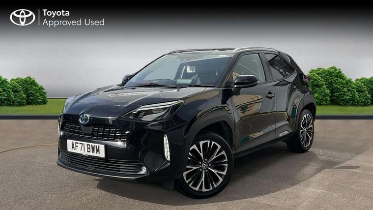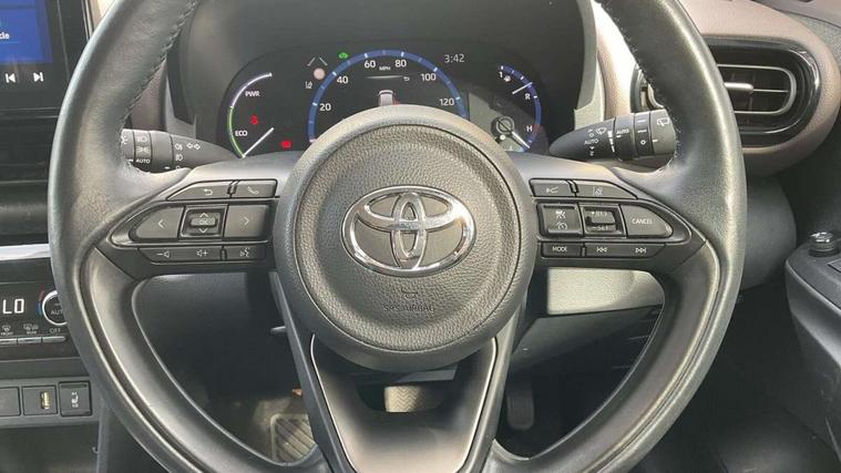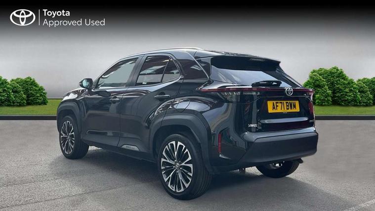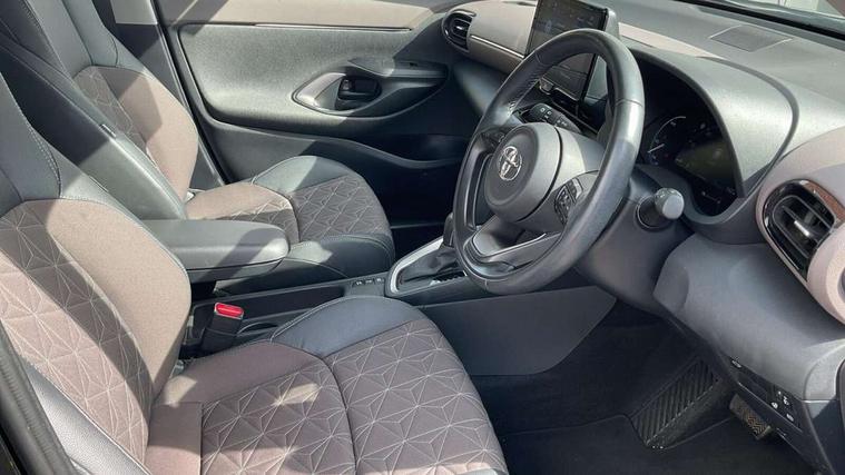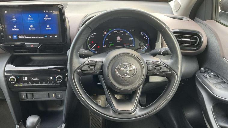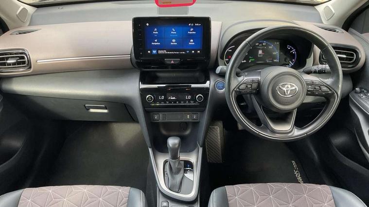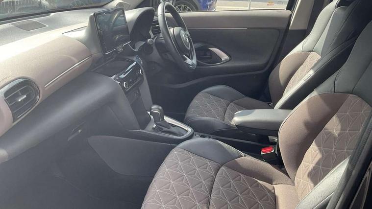 Blind spot monitoring, Bluetooth connectivity, Driver attention alert system, eCall emergency system, Electric power steering, Front and rear parking sensors with intelligent clearance sonar and automatic braking, Full range intelligent adaptive cruise control, Lane trace assist, Multimedia, audio, telephone and voice recognition switches on steering wheel, My T Connected services, Pre-collision system enhanced with emergency steering assist, Rear cross traffic alert with brake assist, Reversing camera, Road sign assist - RSA, Vehicle Stability Control (VSC), 6 speakers, DAB Digital radio, USB connection, Acoustic windscreen glass, Aluminium roof rails, Auto high beam [AHB] with on/off switch, Auto windscreen wipers, Automatic headlights, Automatically retractable door mirrors, Black Shark-fin antenna, Body colour door handles, Body colour rear bumper, Dark chrome plated insert on upper front grille, Electric adjustable heated door mirrors, Electrochromatic auto dimming rear view mirror, Follow me home headlights, Front and rear electric windows with auto up/down function, Front auto power windows with anti jam protection, Gloss black upper front grille, Kick activated power back door, LED daytime running lights guide, LED front fog lights, LED front light guide, LED projector headlights, LED rear light guide, Privacy glass, Rear auto power windows with anti jam protection, Rear LED lights with sequential indicators, 12v power outlet - front, 12V power point in boot, 2x Rear coat hooks, 3 spoke leather steering wheel, 40:20:40 split folding rear bench seat, Centre console in light blue ambent lighting, Driver and passenger seatback pockets, Dual zone automatic air conditioning, Fabric seat with synthetic leather upholstery, Footwell in light blue ambient lighting, Front console box, Front cup holders, Front head restraints, Glovebox, Grey roof lining, Heated driver and passenger seats, Heated steering wheel, Height adjustable driver's seat, Height adjustable front passenger seat, Hooks for luggage holding belts, Leather gearshift, Light blue ambient lighting on front doors, Light on driver and front passenger sun visor, Manual telescopic and tilting steering wheel, Mirror on driver and passenger sun visor, Power adjustable lumbar support on driver seat, Rear cup holders, Rear head restraints, Soft tonneau cover, Storage box under boot floor, Tech pack - Yaris Cross, 3x3 point rear seat belts, ABS+EBD+Brake assist, Driver and passenger central airbags, Driver and passenger front airbags, Driver and passenger side airbags, Electronic parking brake, Emergency brake light system (EBS), Pre-collision system with pedestrian and cyclist detection, Rear passenger side airbags, Supplemental Restraint System (SRS) 8 airbags: Driver & passenger's airbags, dual side curtain airbags, side impact airbags, front centre airbag, Traction control, Tyre pressure warning system, Keyless smart entry with push button start, Tyre repair kit,