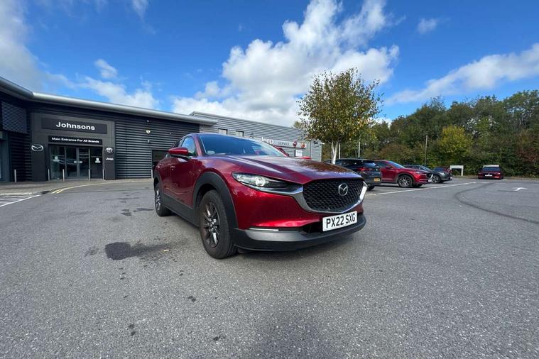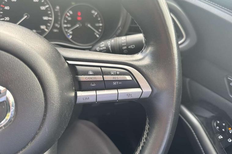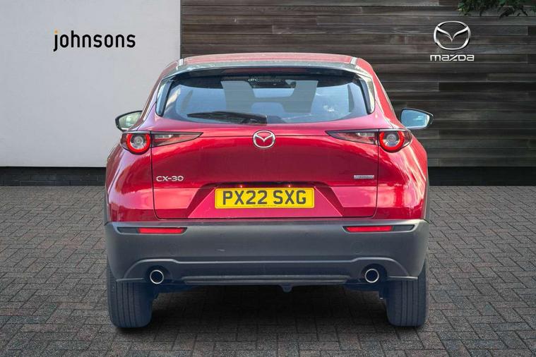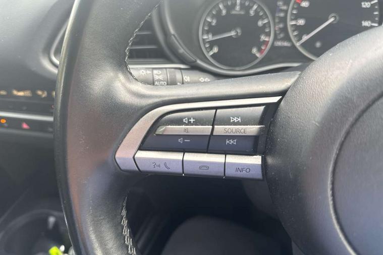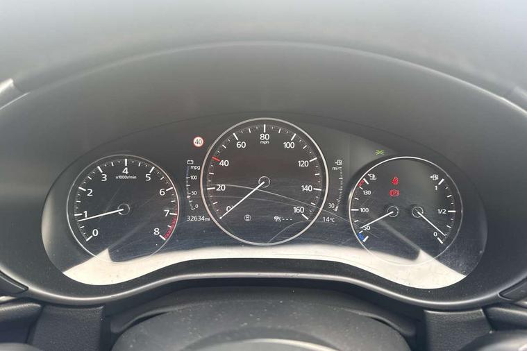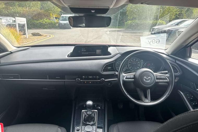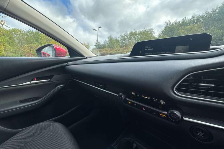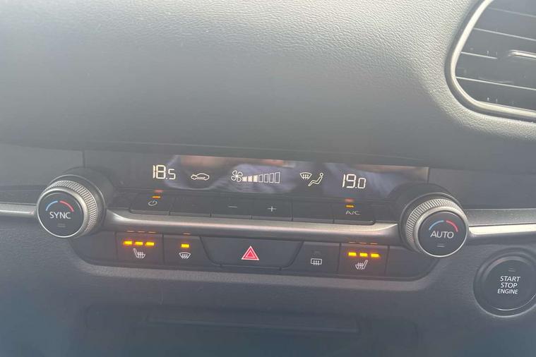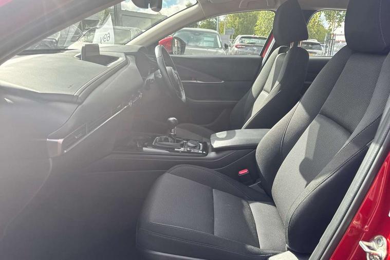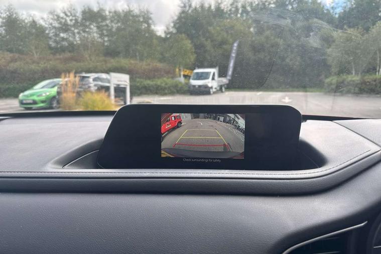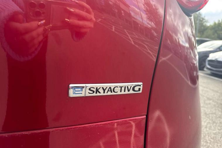 7" TFT Colour driver instrument panel display, 8.8" Colour centre touch screen display with Mazda Connect infotainment, Adaptive cruise control (Mazda radar cruise control), Apple car play/Android Auto, Blind spot monitoring with rear cross traffic alert, Driver attention alert system, E-call with GPS, Emergency stop signalling system, Engine start/stop button, Front and rear parking sensors, Integrated bluetooth, Integrated Mazda navigation system, Intelligent speed assist, Lane keep assist system (LAS) with Lane departure warning system (LDWS), Mazda connected services, PAS, Reversing camera, Service indicator, Tailgate, Traffic sign recognition, Trip computer, Windscreen projected colour active driving display (HUD), Cylinder Deactivation, i-stop, 2 USB charging ports in front inner central armrest, AM / FM / DAB radio with 8 speakers, Multimedia Commander including separate volume dial, Steering wheel mounted audio/bluetooth controls, B-pillar and C-pillar garnishes in satin black finish, Auto dimming driver's door mirror, Auto dimming rear view mirror, Auto headlight levelling, Body coloured, electrically adjustable, heated auto power folding door mirrors with integrated indicators, Chrome finish signature wing in front grille, Coming/leaving home lighting function, Dual chrome exhaust, Dusk sensing headlights, Electric front/rear windows with one touch auto up/down, Front kodo turn signal, Gloss black rear roof spoiler, LED headlights with halogen daytime running lights and high beam control, LED rear combination lights, Rain sensing front wipers with adjustable speed and intermittent wipe, Rear fog lights, Rear side wing doors, Rear wiper, Satin black front grille, Third brake light, 12V power outlet in centre console, 3 seat bench in 2nd row, 60/40 split fold down rear seats, Cloth upholstery with interior accents, Dark cloth door panel inserts, Dashboard, door cards and front centre armrest in black cloth, Driver and front passenger visors with covered vanity mirror and driver ticket holder, Driver seat manual slide, recline, height and seat tilt adjust, Driver, front passenger and two rear door storage, Driver, Front passenger and two rear grab handles with coathooks, Dual zone climate control air conditioning with rear air vents, Folding rear centre armrest with two cup holders, Front and rear (x3) head restraints, Front and rear LED lighting, Front armrest, Front centre storage with two cupholders, Front passenger seatback pockets, Front passengers seat manual slide, recline and height adjustment, Gear shift indicator, Glovebox illumination, Heated front seats with 3 stage setting, ISOFIX child seat anchorage points attached on outer rear seats, Leather wrapped gear shift knob, Leather wrapped steering wheel with telescopic and tilt adjustment, LED luggage compartment lighting, Light roof headlining and pillars, Roof mounted sunglasses holder, Single front passenger seat, 3 point ELR front seat belts x2 with pretensioners, 3 point ELR rear seat belts, Anti-lock braking system (ABS), Drivers knee airbag, DSC - Dynamic Stability Control, Electronic parking brake with auto disengage function and auto hold function, Front and rear curtain airbags, Front dual stage driver and single stage front passenger airbags, Front passenger airbag cut-off switch, Front side airbags, Front smart city brake support, G-Vectoring control plus, Hill launch assist, Manual child lock in rear doors, Mild Hybrid system with regenerative braking, Seatbelt reminder for driver/front passenger and rear seats, Traction control system (TCS), Tyre pressure monitoring system (TPMS), Remote central locking with deadlocking and automatic door lock when driving, Smart keyless entry, Thatcham accredited alarm and immobiliser, 16" Grey alloy wheels, Emergency tyre repair kit,