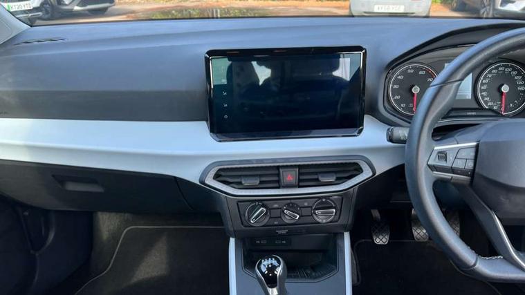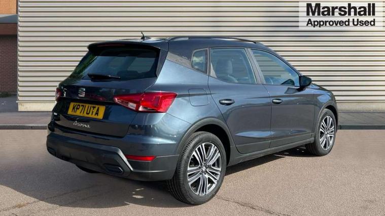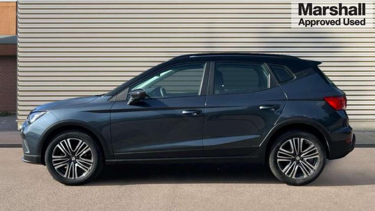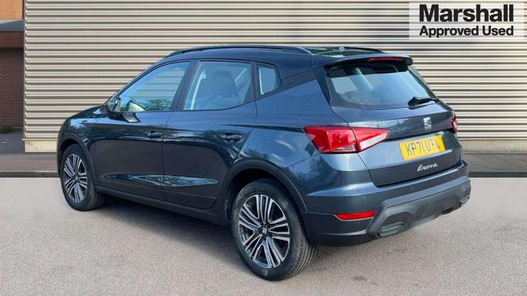 'Lights On' Reminder warning buzzer, Cruise control and speed limiter, Digital clock, Electric speed sensitive power steering, Full Link Smartphone Integration with Mirror Link, Apple Car Play, Google Android Auto with USB Type C cable for Apple and Android compatibility, Lane keeping system, Low fuel warning light, Outside temperature display, Rear parking sensor, RPM counter, Seat connect with safety, service, remote and online, Trip computer, Bluetooth interface for hands free and audio streaming, DAB digital radio and AM/FM radio, Steering wheel mounted audio controls, Anti theft roof antenna, Automatic activation of hazard warning lights, Black roof rails and window surrounds, Black window trims, Body coloured bumpers, Body coloured door handle inserts, Body coloured door mirrors, Dimming rear view mirror, ECO LED automatic headlights and LED daytime running lights, Electric adjustable door mirrors, Electric front/rear windows, Hidden exhaust pipe, Protective side mouldings, Rear spoiler, Rear window wash/wipe, Visible VIN plate, Windshield wiper with intermittent control and potentiometer, 2 cupholders, 60/40 split folding rear seat, Air conditioning, Cloth upholstery, Double boot floor, Driver sunvisor with covered mirror + card holder, Dust/pollen filter, Flat bottomed leather steering wheel/gear knob/handbrake, Front courtesy light with front reading lights, Gear shift indicator, Grey interior roof, Height adjustable front seats, Height/reach adjustable steering column, Honey mustatd coloured air vent, Illuminated boot, Instrument lighting with brightness control, ISOFIX points in outer rear seats with top tether anchorage points, Passenger sunvisor with vanity mirror, Two front and three rear height adjustable headrests, Connectivity pack plus - Arona, Interior chrome pack - Arona, 3 point seatbelts on all rear seats, ABS, Active front headrests, Child locks on rear doors, Driver and front passenger airbags with front passenger airbag de activation, front side and curtain airbags, Electronic stability control, Emergency Brake Assist (EBA) and front assist, Front and rear seatbelt reminder, Hill hold control, Multi-Collision braking, Tiredness recognition system, Traction control, Tyre pressure monitoring system, Electronic engine immobiliser, Locking wheel bolts, Remote central locking + deadlocks, Titan black dashboard, 17" Dynamic machined alloy wheels,