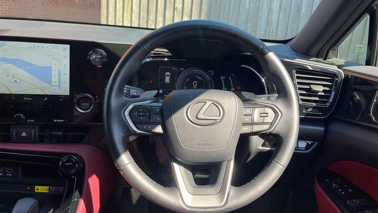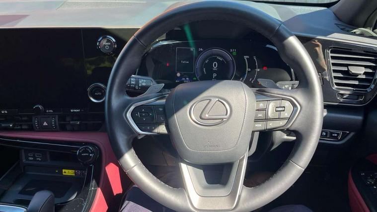 4 driving modes EV/Eco/Normal/Sport, 7" display in instrument binnacle, Blind spot monitoring with rear cross traffic alert, Bluetooth telephone connectivity, eCall emergency system, Electric speed sensitive power steering, Intelligent parking sensors - 4 front and 4 rear, Lane change flasher function, Lexus link connect - Cloud based navigation, cloud based voice assistant, always online and 9.8" VGA touchscreen, Push button starter, Reversing camera with back guidelines, Service interval indicator, Wireless Apple CarPlay and wired Android Auto, Wireless Smartphone charger, 6.6 kW onboard charger, All Wheel Drive (AWD), Hybrid automatic transmission, Vehicle Dynamics Integrated Management (VDIM), Vehicle Stability Control (VSC), 10 speakers, 4 USB ports - 2 front, one USB C, 2 rear USB C, DAB Digital radio, Auto dimming interior rear view mirror, Automatic headlights, Bi LED headlights, Double hidden exhaust pipes, Front and rear one touch power windows, with anti-jam protection, Heated, auto-folding, auto-dimming outside mirrors with reverse tilt function and turn indicators, Illuminated door handles with puddle light, LED brake lights and rear lights with emergency brake signal, LED daytime running lights, LED front fog lights, LED Indicators, Power back door with kick sensor, Privacy glass, rear doors and tailgate, Rain sensor windscreen wipers, Rear side wing doors, Rear wiper, Roof rails, 12V accessory port centre console and luggage compartment, 2 cupholders in front centre console, 2 way electrical lumbar adjustment for driver, 2 x fixed shopping bag hooks in boot, 2 x sun visors with vanity mirror and lamp, 3 seat bench in 2nd row, 4 x tie down hooks in the boot, 6 way manually adjustable front seats, 60/40 split folding rear seat, Adjustable rear seat backrest, Card holder installed in driver and passengers sun visors, Centre armrest with storage box, Dual climate control air conditioning system, Front and rear head restraints, Front and rear textile carpet mats, Front passenger seat, Heated front seats, Heated steering wheel, Leather gear lever, LED interior illumination, Power adjustable leather steering wheel with paddle shifts, Rear centre armrest with 2 cupholders, Tahara leather upholstery, Whiplash Injury Lessening (WIL) feature (active headrest) for seats, 2 x Isofix child rear seat restraints, 3 point ELR front seatbelts with pretensioners, 3x3 point rear seat belts, ABS, Adjustable seat belt anchor points, Driver and front passenger 2 stage airbag, Driver/front passenger side airbags, Drivers knee airbag, E-Latch with safe exit assist, EBD + Brake Assist, ECB (Electronically Controlled Brake System), Electronic parking brake, Front and rear curtain shield airbags, Front center airbag, Front passenger seat cushion airbag, Hill assist control, Lexus safety system - dynamic radar cruise control, pre collision system day and night, lane tracing assist, road sign, automatic high beam, OTA, Manual rear child locks, Passenger airbag cut-off device, Traction control, Tyre pressure warning, 2 x remote key fobs, Anti-theft system with alarm, intrusion sensor, glass breakage sensor, tilt sensor and engine immobiliser, Locking wheel nuts, Smart keyless entry, Speed sensitive auto door locking, Two motion door lock with double lock, VIN Window etching, 3D prism black Inlay, Tyre repair kit,