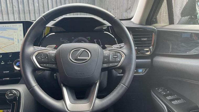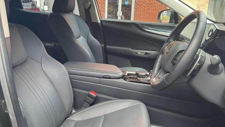 4 driving modes EV/Eco/Normal/Sport, 7" display in instrument binnacle, Blind spot monitoring with rear cross traffic alert, Bluetooth telephone connectivity, eCall emergency system, Electric speed sensitive power steering, Intelligent parking sensors - 4 front and 4 rear, Lane change flasher function, Lexus link connect - Cloud based navigation, cloud based voice assistant, always online and 9.8" VGA touchscreen, Push button starter, Reversing camera with back guidelines, Service interval indicator, Tailgate, Wireless Apple CarPlay and wired Android Auto, Wireless Smartphone charger, 6.6 kW onboard charger, All Wheel Drive (AWD), Hybrid automatic transmission, Vehicle Dynamics Integrated Management (VDIM), Vehicle Stability Control (VSC), 10 speakers, 4 USB ports - 2 front, one USB C, 2 rear USB C, DAB Digital radio, Auto dimming interior rear view mirror, Automatic headlights, Bi LED headlights, Double hidden exhaust pipes, Front and rear one touch power windows, with anti-jam protection, Heated, auto-folding, auto-dimming outside mirrors with reverse tilt function and turn indicators, Illuminated door handles with puddle light, LED brake lights and rear lights with emergency brake signal, LED cornering lights, LED daytime running lights, LED front fog lights, LED Indicators, Power back door with kick sensor, Privacy glass, rear doors and tailgate, Rain sensor windscreen wipers, Rear side wing doors, Rear wiper, Roof rails, 12V accessory port centre console and luggage compartment, 2 cupholders in front centre console, 2 way electrical lumbar adjustment for driver, 2 x fixed shopping bag hooks in boot, 2 x sun visors with vanity mirror and lamp, 3 seat bench in 2nd row, 4 x tie down hooks in the boot, 60/40 split folding rear seat, 8 way driver/passenger electrically adjustable front seats, Adjustable rear seat backrest, Card holder installed in driver and passengers sun visors, Centre armrest with storage box, Dual climate control air conditioning system, Front and rear head restraints, Front and rear textile carpet mats, Front passenger seat, Heated front seats, Heated steering wheel, Leather gear lever, LED interior illumination, Power adjustable leather steering wheel with paddle shifts, Premium Tahara leather upholstery, Rear centre armrest with 2 cupholders, Whiplash Injury Lessening (WIL) feature (active headrest) for seats, 2 x Isofix child rear seat restraints, 3 point ELR front seatbelts with pretensioners, 3x3 point rear seat belts, ABS, Adjustable seat belt anchor points, Driver and front passenger 2 stage airbag, Driver/front passenger side airbags, Drivers knee airbag, E-Latch with safe exit assist, EBD + Brake Assist, ECB (Electronically Controlled Brake System), Electronic parking brake, Front and rear curtain shield airbags, Front center airbag, Front passenger seat cushion airbag, Hill assist control, Lexus safety system - dynamic radar cruise control, pre collision system day and night, lane tracing assist, road sign, automatic high beam, OTA, Manual rear child locks, Passenger airbag cut-off device, Traction control, Tyre pressure warning, Anti-theft system with alarm, intrusion sensor, glass breakage sensor, tilt sensor and engine immobiliser, Locking wheel nuts, Smart keyless entry, Speed sensitive auto door locking, Two motion door lock with double lock, Ultra Wide Band (UWB) Anti-theft system, VIN Window etching, 3D prism black Inlay, Organic inlay, Tyre repair kit,