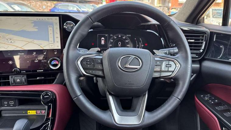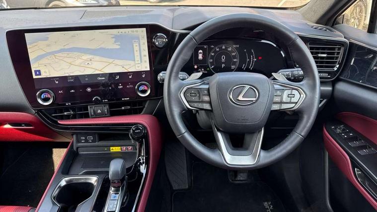 4 driving modes EV/Eco/Normal/Sport, 7" display in instrument binnacle, Bluetooth telephone connectivity, eCall emergency system, Electric speed sensitive power steering, Intelligent parking sensors - 4 front and 4 rear, Lane change flasher function, Lexus link connect - Cloud based navigation, cloud based voice assistant, always online and 9.8" VGA touchscreen, Push button starter, Reversing camera with back guidelines, Service interval indicator, Tailgate, Wireless Apple CarPlay/Android Auto, All Wheel Drive (AWD), Hybrid automatic transmission, Vehicle Dynamics Integrated Management (VDIM), Vehicle Stability Control (VSC), 10 speakers, 4 USB ports - 2 front, one USB C, 2 rear USB C, DAB Digital radio, Auto dimming interior rear view mirror, Automatic headlights, Bi LED headlights, Double hidden exhaust pipes, Front and rear one touch power windows, with anti-jam protection, Heated, auto-folding, auto-dimming outside mirrors with reverse tilt function and turn indicators, LED brake lights and rear lights with emergency brake signal, LED daytime running lights, LED Indicators, Light green UV acoustic rear doors & rear glass, Power back door system, Rain sensor windscreen wipers, Rear side wing doors, Rear wiper, Roof rails, 12V accessory port centre console and luggage compartment, 2 cupholders in front centre console, 2 x fixed shopping bag hooks in boot, 2 x sun visors with vanity mirror and lamp, 3 seat bench in 2nd row, 4 x tie down hooks in the boot, 6 tie down hooks in boot, 6 way manually adjustable front seats, 60/40 split folding rear seat, Adjustable rear seat backrest, Card holder installed in driver and passengers sun visors, Centre armrest with storage box, Dual climate control air conditioning system, Front and rear head restraints, Front and rear textile carpet mats, Front passenger seat, Heated front seats, Leather gear lever, LED interior illumination, Power adjustable leather steering wheel with paddle shifts, Rear centre armrest with 2 cupholders, Tahara leather upholstery, Whiplash Injury Lessening (WIL) feature (active headrest) for seats, 2 x Isofix child rear seat restraints, 3 point ELR front seatbelts with pretensioners, 3x3 point rear seat belts, ABS, Adjustable seat belt anchor points, Driver and front passenger 2 stage airbag, Driver/front passenger side airbags, Drivers knee airbag, E-Latch electric door release, EBD + Brake Assist, ECB (Electronically Controlled Brake System), Electronic parking brake, Front and rear curtain shield airbags, Front center airbag, Front passenger seat cushion airbag, Hill assist control, Lexus safety system - dynamic radar cruise control, pre collision system day and night, lane tracing assist, road sign, automatic high beam, OTA, Manual rear child locks, Passenger airbag cut-off device, Traction control, Tyre pressure warning, Anti-theft system with alarm, intrusion sensor, glass breakage sensor, tilt sensor and engine immobiliser, Locking wheel nuts, Speed sensitive auto door locking, Ultra Wide Band (UWB) Anti-theft system, VIN Window etching, Black microdot inlay, Tyre repair kit,