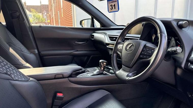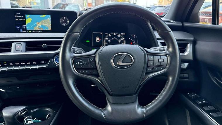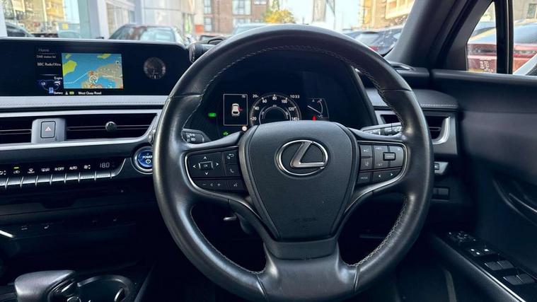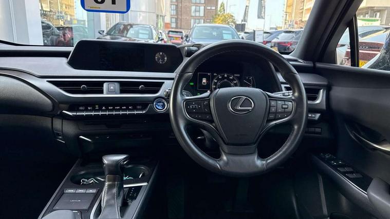 4 driving modes EV/Eco/Normal/Sport, 7" Lexus media display, 7" TFT instrument cluster, Analogue clock with GPS function, Apple car play/Android Auto, Compatible mobile phone bluetooth with audio streaming, E-call, Electric power steering (EPS) with speed sensitive features, Lane change flasher function, Lexus link connected services, Lexus navigation system, Lexus safety systems + includes dynamic radar cruise control, pre collision system day and night, lane tracing assist, road sign assist, Push button start, Remote touch interface, Reversing camera with back guide lines, Trip computer, Vehicle Dynamics Integrated Management (VDIM), Vehicle Stability Control (VSC), 2 front USB and 2 rear USB charging points, 6 speakers, AM/FM and DAB radio, AUX socket with VTR compatibility, CD player, Acoustic windscreen, Aero stabilising arch mouldings, Aero stabilising rear lights, Aero ventilated wheels, Aluminium roof rails, Bi-LED (low and high beam) headlights with Auto High Beam (AHB), Body adhesive, laser screw welding and laser brazed roof structure, Electric adjustable/heated door mirrors, Front and rear one touch power windows, with anti-jam protection, Headlight cleaners, LED daytime running lights, LED front and rear fog lights, LED tail lights, Light green UV glass, Rain sensor windscreen wipers, Rear wiper, Shark fin roof aerial, Single hidden exhaust pipe, Towing preparation, 12V accessory port centre console and luggage compartment, 2 cup holders in the front and rear centre console, 2 x folding shopping bag hooks in boot, 2 x sun visors with vanity mirror and lamp, 4 x tie down hooks in the boot, 5 headrests, 6 way driver and passenger manually adjustable front seats, 60/40 split folding rear seat, Card holder installed in driver and passengers sun visors, Centre armrest with storage, Driver and passenger door pocket, Dual zone electronic climate control + Nano-E humidity sensor, Glovebox, Leather gear lever, Leather steering wheel, LED interior illumination, Map pockets in the rear of passenger's front seat, Premium fabric upholstery, Rear air vents with 2 USB chargers, Rear armrest with 2 cupholders, Storage tray under audio panel, Textile carpet mats, Tilt/reach adjustable steering column, Under deck storage, Under desk side storage, 2 x Isofix child rear seat restraints, 3x3 point rear seatbelts, Anti-lock braking system (ABS), BAS (Brake Assist System), Driver and front passenger 2 stage airbag, Driver and front passenger knee airbag, Driver/front passenger side airbags, EBD - Electronic brakeforce distribution, ECB (Electronically Controlled Brake System), Electric parking brake, Front adjustable seatbelt anchor points, Front and rear curtain shield airbags, Front outer seatbelt+pre-tensioners, force limiter+tension reduction: 3-point with active safety link to PCS, Hill start assist control (HAC), Passenger airbag cut-off device, Rear outer seatbelt+pre-tensioners, force limiter+tension reduction: 3-point with active safety link to PCS, Centre belt w/o pre tensioner+force limiter, Secondary Collision Brake (SCB), TRC (Traction Control), Tyre pressure warning, 2 x remote key fobs, Anti theft system : Alarm instruction sensor, glass breakage sensor and engine immobiliser, Locking wheel nuts, Remote central door locking, Speed sensitive auto door locking, Two motion door lock with double lock, VIN Window etching, 17" alloy wheels, Tyre repair kit,