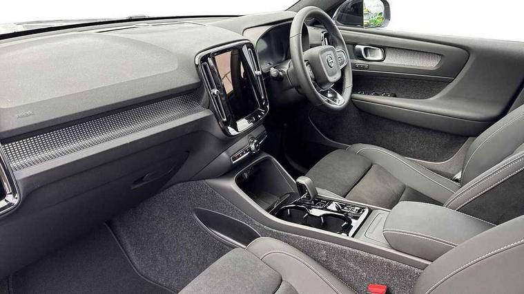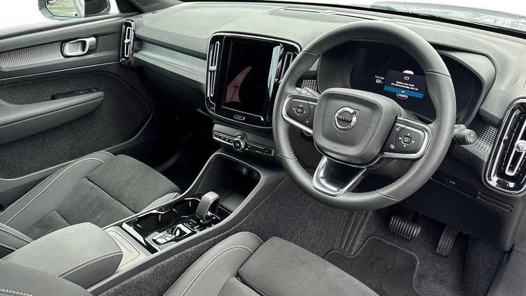 12.3" Progressive Driver Display, 9" centre console portrait touch screen, Adjustable steering wheel force, Android auto (Wired), Apple carplay (wired), Bluetooth handsfree system, Driver alert control, Driver assistance (pilot assist and adaptive cruise control), Driver awareness - Blind spot information system with steer assist, cross traffic alert with autobrake and rear collision warning and mitigation, E-call, Front and rear parking sensors, Front park assist, Google automotive services - Enabled entertainment apps, navigation with google maps, voice recognition with google assistant, Hands free power tailgate, Intelligent speed assistance, Lane keeping aid, Oncoming Lane Mitigation, Speed sensitive steering, Volvo cars services with app - Driving journal, emergency and breakdown call, engine remote start, remote door locking/unlocking and vehicle dashboard, Wireless/Inductive Mobile Phone Charging, Automatic transmission with start/stop and manual change functions, Dynamic chassis, DAB Digital radio, Steering wheel mounted remote controls, Adaptive brake lights with high level LED brake lights, Auto dimming feature for exterior door mirrors, Auto dimming interior mirror, Auto folding and heated power door mirrors, Automatic headlamp levelling, Automatic LED Headlights + Active high beam incorporating daytime running lights, Front aluminium tread plates, Front and rear electric windows, High gloss black front and rear skid plate, High gloss black front bumper deco, High gloss black mesh front grille with high gloss black surround, High gloss black window trim, Home safe and approach lighting, Integrated roof rails in high gloss black, LED front fog lights, Puddle lights, Rain sensor with automatic windscreen wiper activation, Rear side wing doors, Rear wiper, Roof antenna, Roof spoiler, Visible VIN plate, 12V socket in front tunnel console and luggage compartment, 2-Zone electronic climate control with CleanZone air quality system and pollen filter, 3 seat bench in 2nd row, 3 Spoke tailored steering wheel with chrome trim, 60/40 versatile split folding rear seat, Centre console cupholders and storage, Charcoal carpet and floor mats, Charcoal headlining, Connect suede textile/microtech upholstery, Flexible load floor and grocery bag holder, Front headrests, Front seat cushion extensions, Glovebox bag hook, Heated front seats, Height adjustable passenger seat, Height/reach adjustable steering column, High gloss centre tunnel deco, High level illumination - Front door pocket, front side step (under door), tailgate, instrument panel, front door inlay, rear courtesy&reading lights, Integrated waste bin, Isofix attachments on outer rear seats, Load cover, Load protection net, Mid level illumination - Front footwell, luggage & glovebox compartment, front cabin courtesy & reading lights, illuminated vanity mirrors+ticket holder, Multi directional lumbar support for driver and passenger seat, Power driver seat with memory + exterior mirrors memory, Rear armrest with cupholders, Rear headrests, Single front passenger seat, Underfloor luggage compartment storage, Climate pack without heated front seats - XC40, 3x3 point rear seatbelts, City safety with steering support with Pedestrian + cyclist + front collision warning with full auto brake and rear auto brake, Driver and passenger airbags, Drivers knee airbag, Electronic parking brake with auto hold, First aid kit, Front and outer rear seatbelt reminder and pretensioners, Front seats SIPS airbags, Hill descent control - Off-road drive mode, Hill start assist, IC (Inflatable Curtains) - Full Length, Passenger airbag cut-off device, Power child locks on rear doors, Road sign information display, Run off Road Protection, SIPS (Side Impact Protection System), Slippery road and hazard light alert, Stability and Traction Control with Spin control, Engine Drag Control and Corner Traction Control, Tyre pressure monitoring system, Vehicle deceleration control with Anti-lock Brake System, Electronic Brake Distribution and Emergency Brake Assist, Warning triangle, WHIPS whiplash protection system - front, 2 x Key integrated remote control central locking including with deadlocking system and auto open/close windows, Anti-theft alarm including immobiliser/volume sensor + level sensor, Keyless drive includes keyless entry and keyless start, Locking wheel nuts,