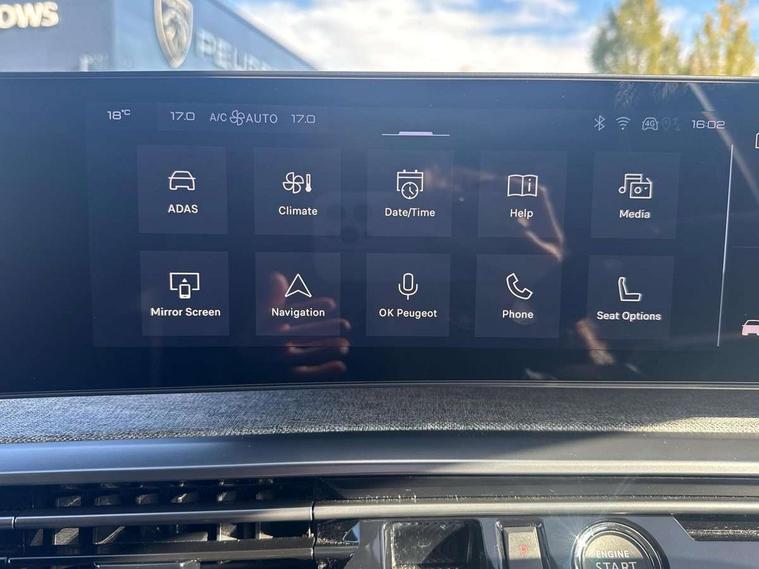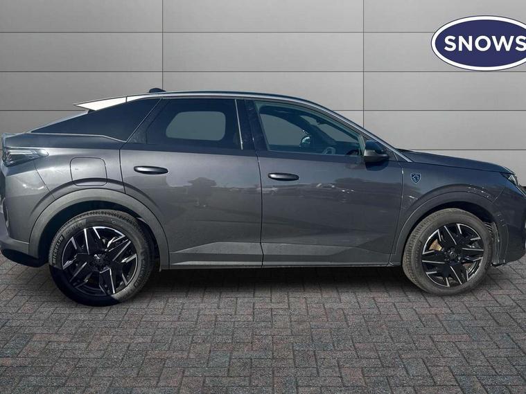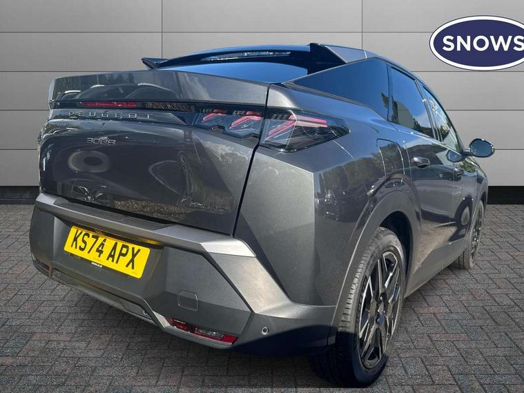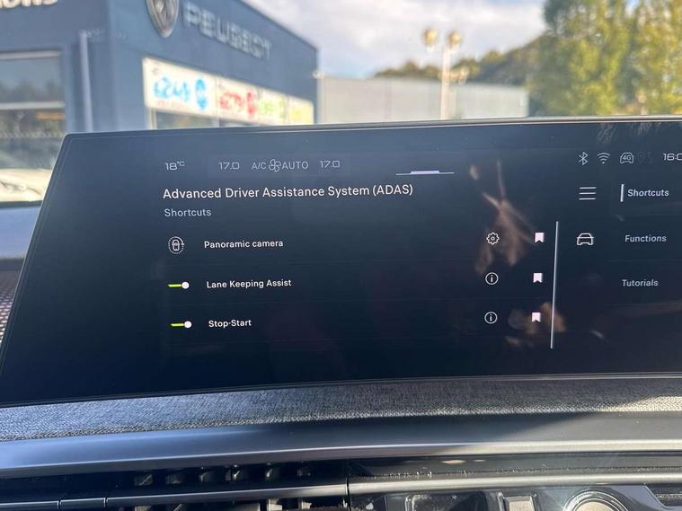 Adaptive cruise control with Stop and Go, Bluetooth with two microphones (Connect up to 2 phones), Drive modes select (Eco, normal and sport) with configurable ambient lighting, Driver foot rest, Driver profile selection, E-call, Exterior temperature indicator with ice warning, Front parking sensor, Front passenger seat detection, Hands free Smart Electric Tailgate (foot operated), Lane keep assist, Manual gear changes via steering mounted paddles, Multi function trip computer, Natural voice recognition, PEUGEOT i-Cockpit - 21" HD panoramic curved display incorporating instrument panel and touchscreen with 3colour themes, PEUGEOT i-connect advanced HD fully customisable touch screen, Navigation with Tom Tom Live updates and over the air map updates, PEUGEOT SOS and assistance, Rear parking sensor, Speed limit and traffic sign recognition and recommendation, Wireless mirror screen with apple carplay and android auto, Wireless smartphone charger with status light and ambient lighting, Dynamic stability control and electronic anti-skid system, AM/FM bi-tuner, DAB Radio (Digital Audio Broadcasting), Peugeot customisable virtual iToggles, USB-C sockets (2 x front and 2 x rear), 3008 model designation badgers front and rear in basalt grey, Acoustic windscreen, Automatic hazard light activation upon heavy brake application, Automatic headlamp activation, Automatic windscreen wiper activation with interval wiping intensity control, Black diamond roof and floating effect rear spoiler finished in nera black metallic, Body coloured exterior door handles, Dark tinted privacy glass for rear door, Tailgate and Quarter windows, Door mirrors - Welcome lighting and integrated LED indicators, Electric adjustable/heated/folding door mirrors, Flat blade wipers with magic wash integrated nozzles, Frameless electrochrome rear view mirror, Front and rear electric windows with one touch, Front grille with body coloured accents, Gloss black connecting strip between rear lights, Gloss black finish B pillar, Grained black lower door claddings and wheel arches, Heated rear window, Hybrid rear badging in basalt grey, Laminated windscreen, LED daytime running lights, LED exterior lighting, LED third brake light, Lower front and rear bumper trims in meteor grey, Orbital gloss black door mirrors, PEUGEOT shield on front wings, Pixel LED Technology headlights with adaptive high beam assist, Rain sensor, Rear full LED 3D peugeot signature claw effect lights with daylight function, Rear side wing doors, 2 cupholders in front centre console, 2 rear cupholders, 3 seat rear bench, 3x 12V sockets (Cabin front and rear and boot), 4 Grab handles retractable and damped, 4 tie down luggage rings, 40/20/40 folding rear seat backrest with fixed base, Aluminium pedals, Arch design central console with concealed storage, Cabin high efficiency filter, Central front armrest with ventilated storage compartment and LED lighting, Chrome finish interior door handles, Compact heated multifunction steering wheel with full grain leather Iced Clay stitching, gloss black and satin chrome detailing and GT badge, Dual zone climate control, Dynamic front seats, e-Toggle compact gear selector, Electric power steering with reach and rake adjustable steering column, Glasses storage box, roof mounted, LED boot light, LED footwell lights, LED front and rear roof lights, LED Glovebox light, LED illuminated driver and passenger concealed sunvisor mirrors, Luggage cover, Luxury front and rear carpet mats with Iced Clay stitching and GT logo, Mistral black pillars and headlining, Quick launch cabin heating/cooling function, Rear air vents, Rear smartphone holder, Roof lining - Meteor grey, Seatbelt unfastened on the move audible and visual alert for front and rear seats, Single front passenger seat, Stainless steel PEUGEOT door sill trims, Two bag hooks, Two position boot floor, 2x Isofix child seat fitting on outer rear seats with zipped cover, 3x3 point rear seat belts, ABS (Anti-lock Braking System) with EBD (Electronic Brakeforce Distribution) and EBA (Emergency Braking Assistance), Adaptive driver and front passenger airbags with passenger airbag deactivation function, Advanced Emergency Braking System with radar (AEBS3) providing night detection of pedestrians and cyclists, Child locking functionality on rear doors, Driver and front passenger side airbags, Electric parking brake, Front and rear curtain airbags, Front optimised safety headrests and 3 x rear retractable headrests with height adjustable, Front/rear disc brakes, Hill start assist, Post collision safety brake, Seatbelts - Front and rear outer seats with pyrotechnic pretensioners and force limiters, Tyre under inflation monitoring and detection (Indirect), 2x Keys (Lock, Unlock, Boot release function with concealed key), Acoustic vehicle alert system (AVAS), Automatic door locking when moving off, Deadlocking system, Electronic code immobiliser, Exterior passenger door lock, Locking wheel nuts, Peugeot Open and Go (keyless entry and push button start), Seatbelts reminder and unfastend warning indicator, Thatcham category 1 Perimetric and volumetric alarm with anti-lift detection, Aluminium printed dashboard and front door panel Alcove decor, Textile decor for dashboard, door panels and centre console arch, 19" YARI diamond cut alloy wheels with star center cap in orbital black, Michelin e-primacy class A tyres, Tyre repair kit includes 12V compressor, Sealant and storage box,