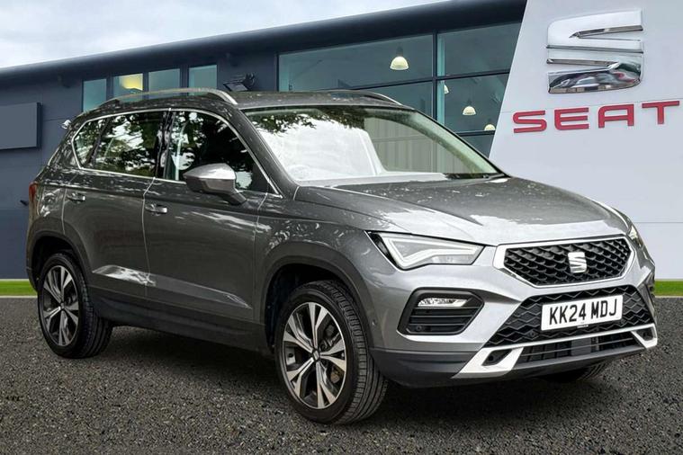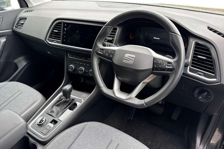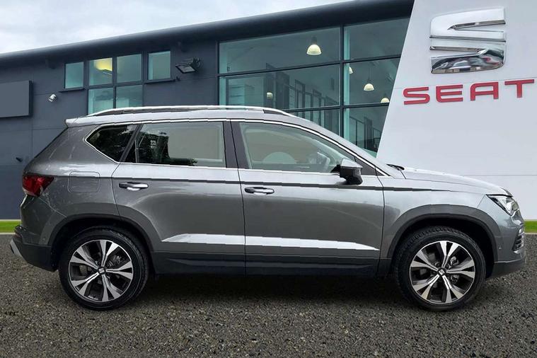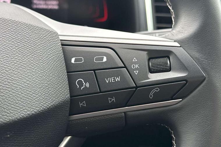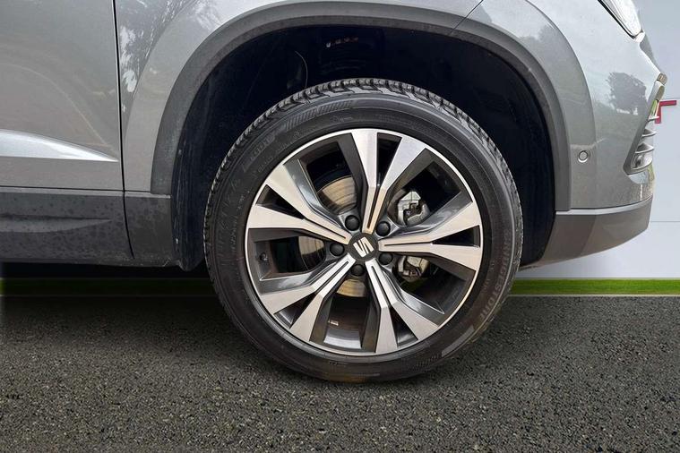 8" Digital cockpit, Colour multi-function on board computer display, Cruise control system with speed limiter, E-call, Outside temperature gauge, PAS, SEAT drive profile with driving experience button - Normal, Sport, Eco and Individual mode, gearshift, steering and throttle response, Self parking functionality (includes front and rear parking sensors), Start/stop system, Tailgate, Trip computer, wired and wireless full link smartphone integration, Wireless phone charger, Steering wheel mounted audio/phone controls, Black wheel arch surrounds, Body colour bumpers, Chrome front grille frame, Chrome roof rails, Chrome side window trim, Daytime running lights, Door mirrors with welcome light silhouette, Dynamic headlight range control with self adjusting whilst driving, Electric adjustable/heated/folding door mirrors, Front and rear electric windows, Full LED headlamps with lens and LED front fog lamps with cornering function, LED 3rd brake light, LED rear tail lights, Rear exhaust tailpipe, Rear fog lights, Rear side wing doors, Rear wash/wipe, Variable front intermittent wipers, 12v socket in front, 3 seat bench in 2nd row, 60/40 split folding rear seat, Cloth upholstery with front comfort seats, Drawer under right front seat, Dual zone climate control, Front and rear head restraints, Front centre armrest, Front seat back storage pockets, Height adjustable driver and passenger seat with lumbar adjustment, ISOFIX points in outer rear seats with top tether anchorage points, Leather sports steering wheel and gear knob, Rear armrest and easy back seat release mechanism from boot, Single front passenger seat, Steering wheel mounted gearshift paddles, Convenience pack - Ateca, Interior lighting pack - Ateca, Navigation system pack with DAB - Ateca, Safety and driving pack with attention and drowsiness assist - Ateca, 3x3 point rear seatbelts, ABS, Traction control system (TCS), Electronic stability control (ESC) and Electronic differential lock system (XDS), Airbags - Driver and front passenger airbag with deactivation, front side, two curtain and driver's knee airbags, Electric parking brake with auto hold function, Front and rear seatbelt reminder, Front assist with autonomous emergency braking, Hill hold control, Manual rear child locks, Single tone horn, Tiredness recognition system, Tyre pressure monitoring system, Alarm, Keyless entry, Locking wheel bolts, Remote central locking, Chrome interior detailing, 18" Performance machined alloy wheels 36/2 in nuclear grey,
