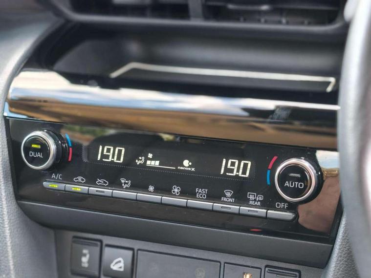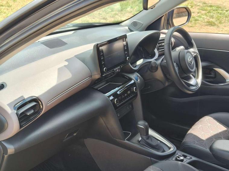 10.5" Multimedia display screen, 10.5" Toyota smart connect+ with navi multimedia system with wireless Smartphone integration incl Apple CarPlay, 360 degree panoramic view monitor, 7" Multi information display screen, Adaptive cruise control, multi info switches on steering wheel, Adjustable speed limiter, Advanced parking assist, Blind spot monitoring, Bluetooth connectivity, Color multi-information display, Digital speedometer, Digital tachometer, Drive mode selector, Driver attention alert system, Dynamic guide lines on reversing camera, eCall emergency system, Electric power steering, Emergency driving stop system, Full range intelligent adaptive cruise control, Hybrid system indicator, Intelligent front and rear parking sensors with clearance sonar and automatic braking, Intersection turn assist, Key reminder warning, Lane change assist, Lane departure warning, Lane trace assist, My T Connected services, Power tailgate, Pre-collision system enhanced with emergency steering assist, Rear cross traffic alert with brake assist, Remote boot door release in cabin, Road sign assist - RSA, Safe exit assist, Telephone switch on steering wheel, Wireless Mobile Phone Charger, Rear limited slip differential (LSD) lock, Steering assisted vehicle stability control, 6 speakers, DAB Digital radio, Front USB Type-C connector, Front USB-C device charger, 3rd brake light, Acoustic windscreen glass, Anti-jam protection on power windows, Auto dimming rear view mirror, Auto high beam [AHB] with on/off switch, Auto intermittent windscreen wipers, Automatic headlights, Automatic headlights cut-off, Automatically retractable door mirrors, AWD i-Badge, Black door moulding, Black lower front grille, Black protection moulding on side doors, Black roof rails, Black wheel arch mouldings, Body colour door handles, Body colour front bumper, Body colour rear bumper, Electric adjustable heated door mirrors, Follow me home headlights, Front and rear electric windows with auto up/down function, Gloss black upper front grille, Headlight cut off reminder, Indicators integrated on door mirrors, Intermittent rear wiper, Kick activated power back door, LED daytime running lights guide, LED front fog lights, LED front light guide, LED Indicators, LED projector headlights, LED rear lights with sequential indicators, Manual headlight levelling, Meshed upper front grille, Noise reduction layer on windscreen, Privacy glass, Rain sensor, Rear side wing doors, Rear spoiler, Rear window defogger, Shark fin antenna, 12v power outlet - front, 12V power point in boot, 2x Rear coat hooks, 3 seat bench in 2nd row, 3 spoke leather steering wheel, 40/60 split deckboard, 40:20:40 split folding rear bench seat, Adjustable rear headrests, Adjustable speed limiter switch on steering wheel, Boot light, Central armrest, Driver and front passenger personal lights, Driver and front passenger Whiplash injury Lesseing seats, Driver and passenger seatback pockets, Dual zone automatic air conditioning, Fabric door trim, Front console box, Front cup holders, Front door pockets, Front head restraints, Front sport seats, Front/rear assist grips, Gear shift indicator, Gloss black surround on gear shift console, Grey roof lining, Heated driver and passenger seats, Heated steering wheel, Height adjustable driver's seat, Height adjustable front passenger seat, Hooks for luggage holding belts, ISOFIX child restraint system, Lane departure alert switch on steering control, Leather gearshift, LED centre room light, Light on driver and passenger sun visor, Manual telescopic and tilting steering wheel, Mirror on driver and passenger sun visor, Nanoe-X air purifier, Partial synthetic leather upholstery, Pollen air filter, Power adjustable lumbar support on driver seat, Rear cup holders, Rear door pockets, Rear head restraints, Remote air-conditioning system, Single compartment glovebox, Single front passenger seat, Soft tonneau cover, Storage box under boot floor, Voice recognition switch on steering wheel, White ambient lighting in centre console, White ambient lighting in footwell, White ambient lighting on front doors, Yaris cross floor mats, Tech pack - Yaris Cross, 3x3 point rear seat belts, ABS+EBD+Brake assist, Downhill Assist Control (DAC), Driver and passenger central airbags, Driver and passenger front airbags, Driver and passenger side airbags, Electronic parking brake, Emergency brake light system (EBS), Front seat belt reminder, Hill start assist control (HAC), Passenger airbag on/off switch, Pre-collision system with pedestrian and cyclist detection, Rear door child safety locks, Rear passenger side airbags, Rear seat belt reminder, Traction control, Tyre pressure warning system, Immobiliser, Intrusion alarm, Keyless smart entry with push button start, Power door locks, Power passenger window lock, Remote door lock, Gloss black side air vent surrounds, Tyre repair kit,