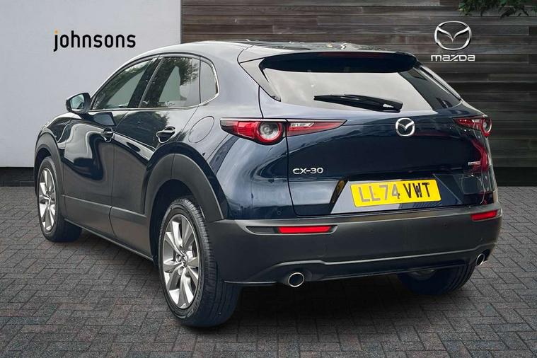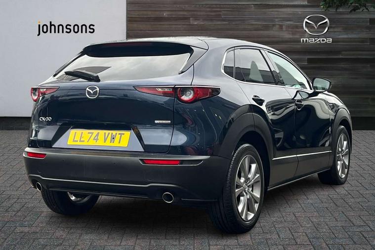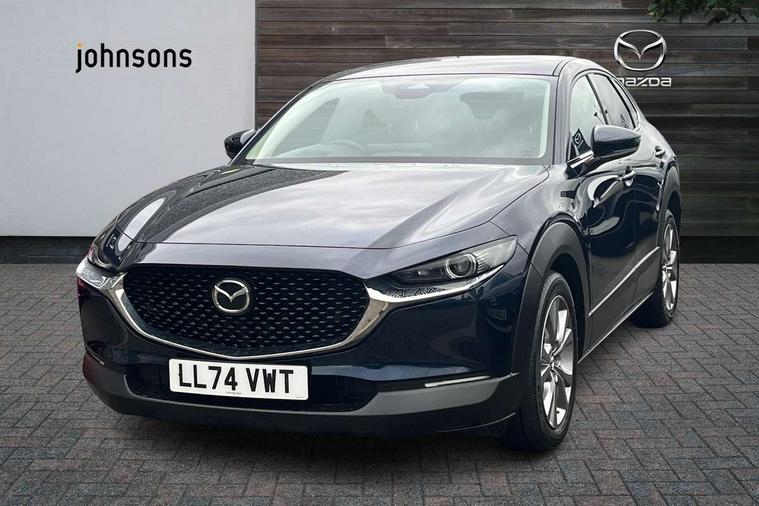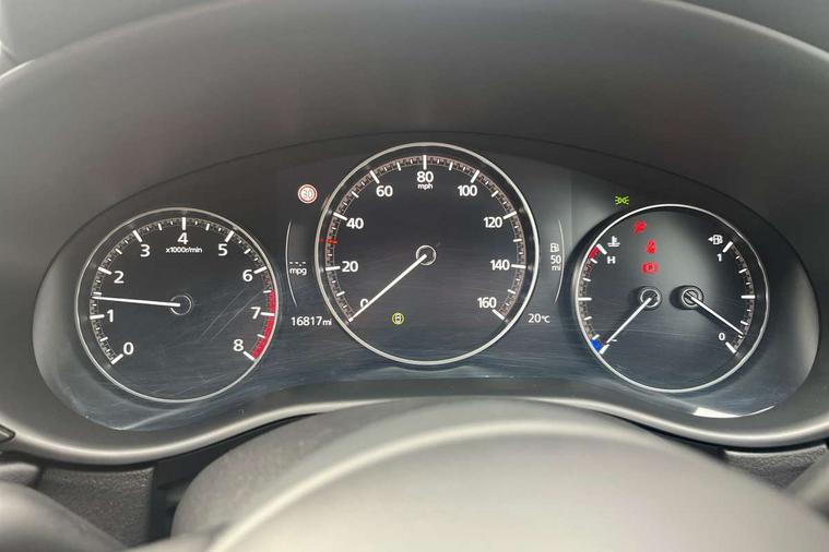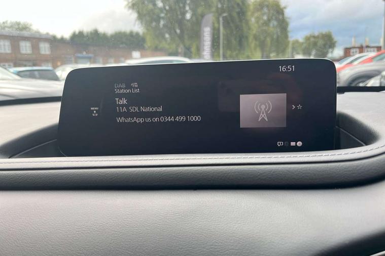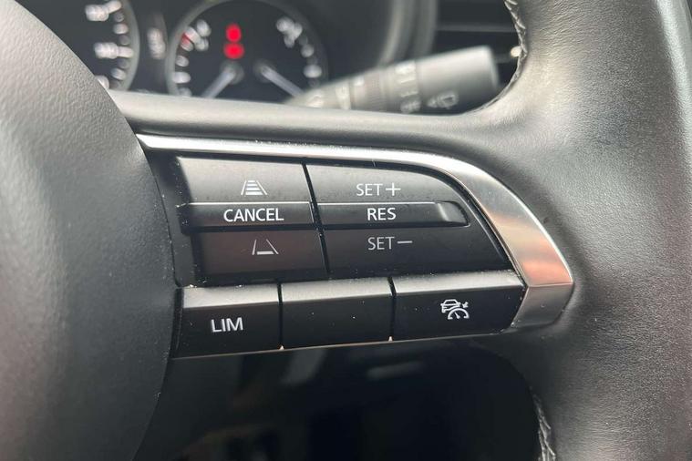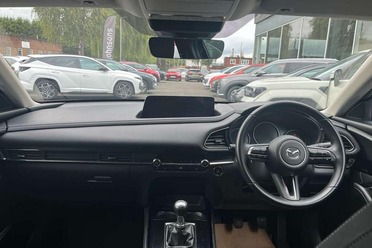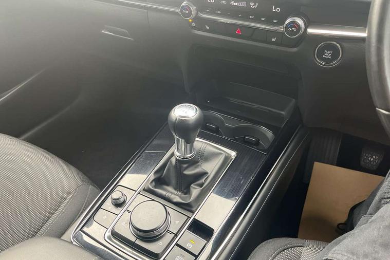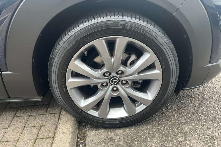 10.25" display with Mazda Connect infotainment, 7" TFT Colour driver instrument panel display, Adaptive cruise control (Mazda radar cruise control), Blind spot monitoring with rear cross traffic alert, Driver attention alert system, E-call with GPS, Emergency stop signalling system, Engine start/stop button, Front and rear parking sensors, Integrated Alexa Voice Assistant, Integrated bluetooth, Integrated Mazda navigation system, Intelligent speed assist, Lane keep assist system (LAS) with Lane departure warning system (LDWS), Mazda connected services, PAS, Power lift gate, Qi wireless charging, Reversing camera, Service indicator, Tailgate, Traffic sign recognition, Trip computer, Windscreen projected colour active driving display (HUD), Wireless Apple CarPlay/Android Auto, Cylinder Deactivation, i-stop, 2 x USB Type-C inputs, AM/FM and DAB radio, Bose surround sound system with 12 Speaker, Bose center point, Bass match and audio pilot technology, Multimedia Commander including separate volume dial, Steering wheel mounted audio/bluetooth controls, Adaptive LED Headlights, Auto dimming driver's door mirror, B-pillar and C-pillar garnishes in gloss black finish, Body coloured, electrically adjustable, heated auto power folding door mirrors with integrated indicators, Chrome finish signature wing in front grille, Coming/leaving home lighting function, Dual bright finish exhaust tip trim, Dusk sensing headlights, Electric front/rear windows with one touch auto up/down, Frameless auto dimming interior rear view mirror, Front kodo turn signal, Gloss black front grille, Gloss black rear roof spoiler, High beam assist, LED auto headlight levelling, LED signature daytime running lights, Privacy glass (rear side windows and rear screen), Rain sensing front wipers with adjustable speed and intermittent wipe, Rear fog lights, Rear side wing doors, Rear wiper, Signature LED rear combination lights, Third brake light, 12V power outlet in centre console, 3 seat bench in 2nd row, 60/40 split fold down rear seats, Bright interior trim accents with steering wheel centre bezel, surround of engine start / stop button and glove box handle, Cloth upholstery with interior accents, Dark cloth door panel inserts, Dashboard, door cards and front centre armrest in black cloth, Driver and front passenger visors with covered vanity mirror and driver ticket holder, Driver seat manual slide, recline, height and seat tilt adjust, Driver, front passenger and two rear door storage, Driver, Front passenger and two rear grab handles with coathooks, Dual zone climate control air conditioning with rear air vents, Folding rear centre armrest with two cup holders, Front and rear (x3) head restraints, Front and rear LED lighting, Front armrest, Front centre storage with two cupholders with lid, Front passenger seatback pockets, Front passengers seat manual slide, recline and height adjustment, Gear shift indicator, Glovebox illumination, Heated front seats with 3 stage setting, ISOFIX child seat anchorage points attached on outer rear seats, Leather wrapped gear shift knob, Leather wrapped steering wheel with telescopic and tilt adjustment, LED luggage compartment lighting, Light roof headlining and pillars, Roof mounted sunglasses holder, Single front passenger seat, 3 point ELR front seat belts x2 with pretensioners, 3 point ELR rear seat belts, Anti-lock braking system (ABS), Drivers knee airbag, DSC - Dynamic Stability Control, Electronic parking brake with auto disengage function and auto hold function, Front and rear curtain airbags, Front dual stage driver and single stage front passenger airbags, Front passenger airbag cut-off switch, Front side airbags, Front smart city brake support, G-Vectoring control plus, Hill launch assist, Manual child lock in rear doors, Mild Hybrid system with regenerative braking, Seatbelt reminder for driver/front passenger and rear seats, Traction control system (TCS), Tyre pressure monitoring system (TPMS), Remote central locking with deadlocking and automatic door lock when driving, Smart keyless entry, Thatcham accredited alarm and immobiliser, 18" Silver metallic alloy wheels, Emergency tyre repair kit,