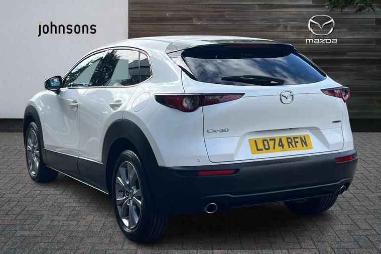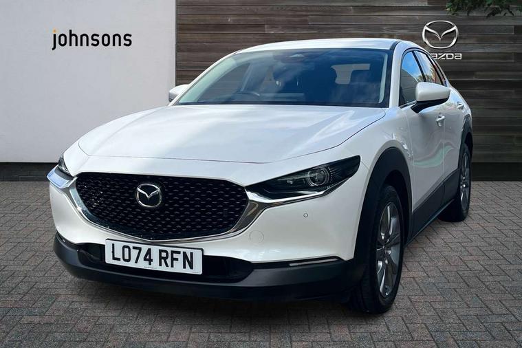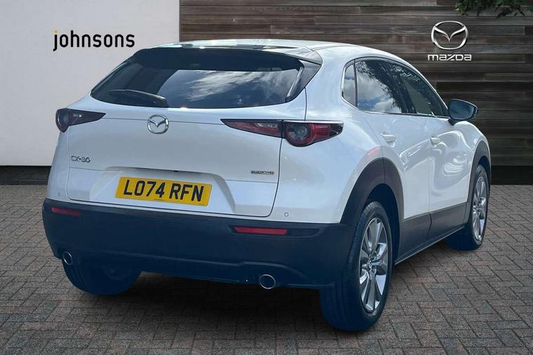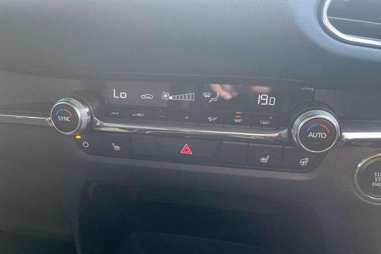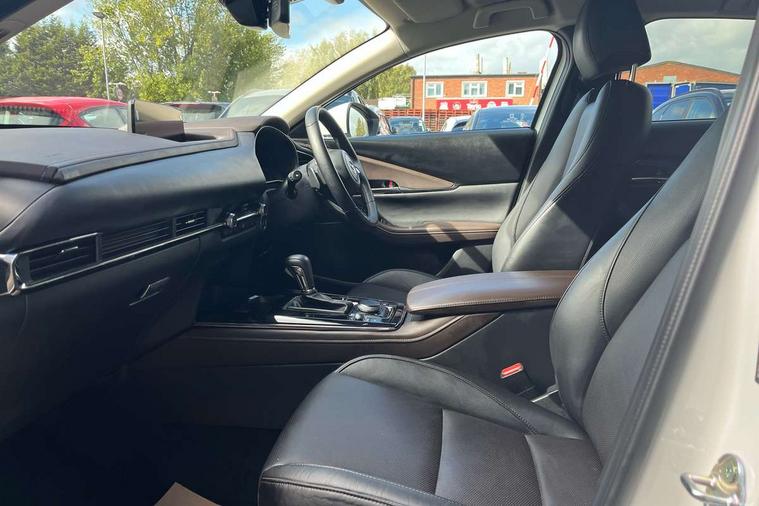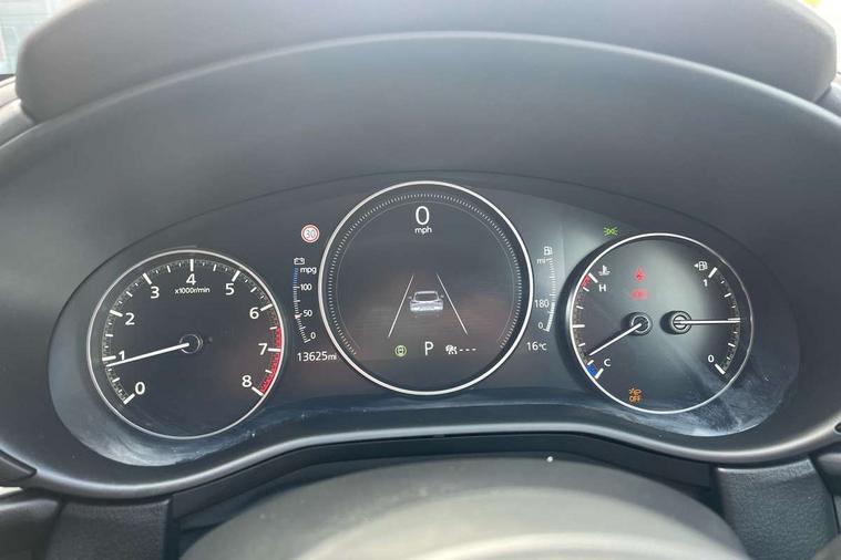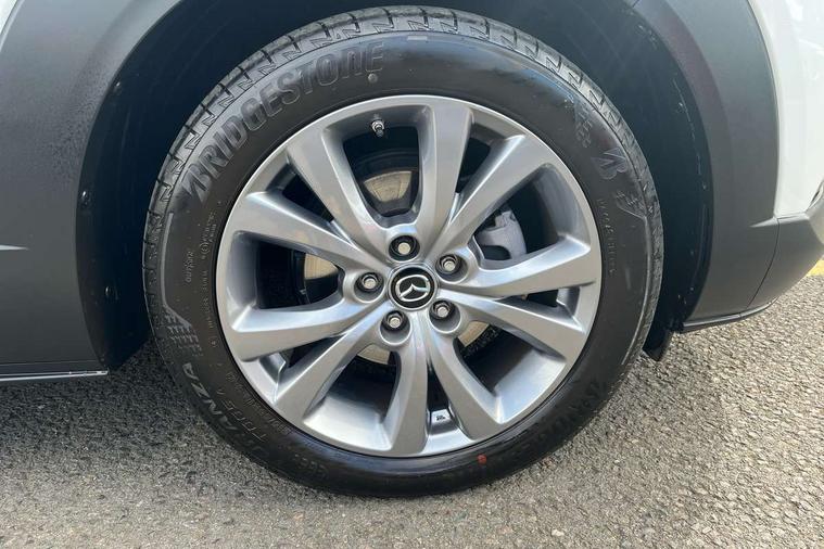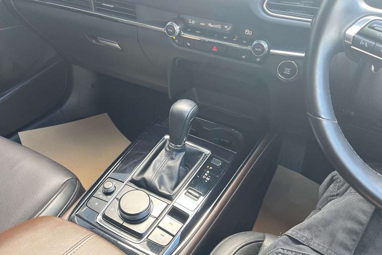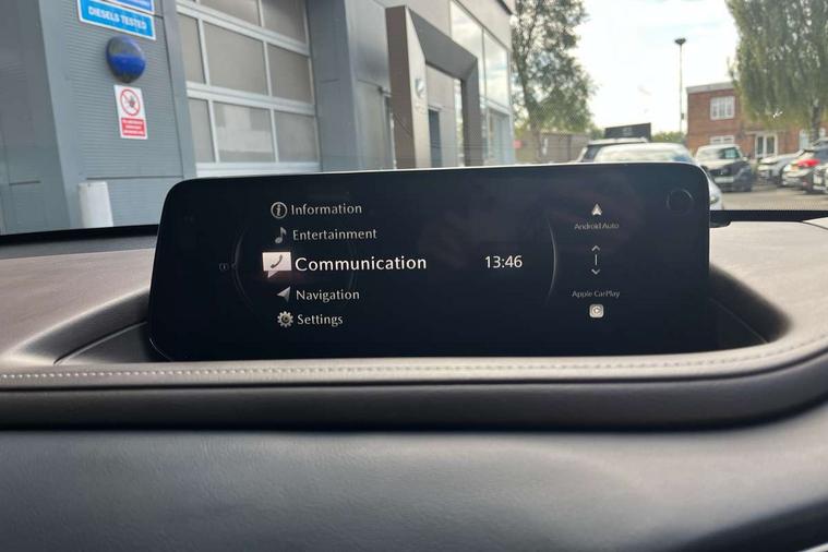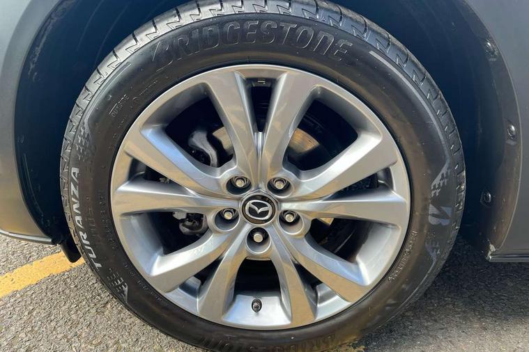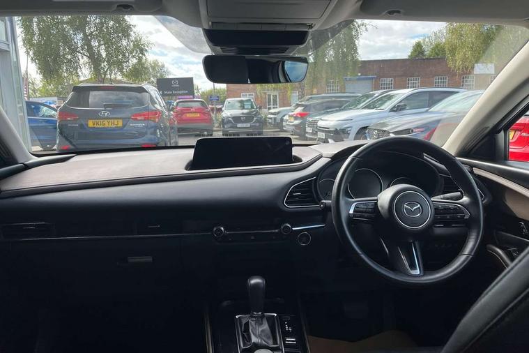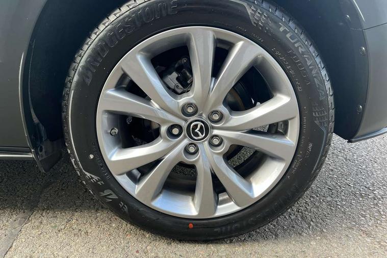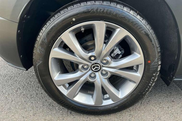 10.25" display with Mazda Connect infotainment, 360 View Monitor, 7" TFT Colour driver instrument panel display, Adaptive cruise control (Mazda radar cruise control) features stop and go, Blind spot monitoring with rear cross traffic alert, Cruising Traffic Support, Drive mode selector, Driver attention alert system, Driver monitoring system, E-call with GPS, Emergency stop signalling system, Engine start/stop button, Front and rear parking sensors, Front Cross Traffic Alert, Integrated Alexa Voice Assistant, Integrated bluetooth, Integrated Mazda navigation system, Intelligent speed assist, Lane keep assist system (LAS) with Lane departure warning system (LDWS), Mazda connected services, PAS, Power lift gate, Qi wireless charging, Service indicator, Tailgate, Traffic sign recognition, Trip computer, Windscreen projected colour active driving display (HUD), Wireless Apple CarPlay/Android Auto, Cylinder Deactivation, i-stop, 2 x USB Type-C inputs, AM/FM and DAB radio, Bose surround sound system with 12 Speaker, Bose center point, Bass match and audio pilot technology, Multimedia Commander including separate volume dial, Steering wheel mounted audio/bluetooth controls, Adaptive LED Headlights, Auto dimming driver's door mirror, B-pillar and C-pillar garnishes in gloss black finish, Body coloured, electrically adjustable, heated auto power folding door mirrors with integrated indicators, Chrome finish signature wing in front grille, Coming/leaving home lighting function, Door mirrors with adjustable memory and tilt-down function when reversing, Dual bright finish exhaust tip trim, Dusk sensing headlights, Electric front/rear windows with one touch auto up/down, Frameless auto dimming interior rear view mirror, Front kodo turn signal, Front wiper de-icer, Gloss black front grille, Gloss black rear roof spoiler, High beam assist, LED auto headlight levelling, LED signature daytime running lights, Privacy glass (rear side windows and rear screen), Rain sensing front wipers with adjustable speed and intermittent wipe, Rear fog lights, Rear side wing doors, Rear wiper, Signature LED rear combination lights, Third brake light, 12V power outlet in centre console, 3 seat bench in 2nd row, 60/40 split fold down rear seats, Bright interior trim accents with steering wheel centre bezel, surround of engine start / stop button and glove box handle, Dashboard, door cards and front centre armrest in rich brown leather, Driver and front passenger visors with covered vanity mirror and driver ticket holder, Driver's seat, power tilt, slide, recline, height and lumbar adjustment, Driver, front passenger and two rear door storage, Driver, Front passenger and two rear grab handles with coathooks, Dual zone climate control air conditioning with rear air vents, Folding rear centre armrest with two cup holders, Front and rear (x3) head restraints, Front and rear LED lighting, Front armrest, Front centre storage with two cupholders with lid, Front passenger seatback pockets, Front passengers seat manual slide, recline and height adjustment, Gear shift indicator, Glovebox illumination, Heated front seats with 3 stage setting, Heated steering wheel, ISOFIX child seat anchorage points attached on outer rear seats, Leather upholstery with interior accents, Leather wrapped gear shift knob, Leather wrapped steering wheel with telescopic and tilt adjustment, LED luggage compartment lighting, Light roof headlining and pillars, Paddle shift controls, Roof mounted sunglasses holder, Single front passenger seat, 3 point ELR front seat belts x2 with pretensioners, 3 point ELR rear seat belts, Anti-lock braking system (ABS), Drivers knee airbag, DSC - Dynamic Stability Control, Electronic parking brake with auto disengage function and auto hold function, Front and rear curtain airbags, Front and rear smart city brake support, Front dual stage driver and single stage front passenger airbags, Front passenger airbag cut-off switch, Front side airbags, G-Vectoring control plus, Hill launch assist, Manual child lock in rear doors, Mild Hybrid system with regenerative braking, Rear cross traffic braking, Seatbelt reminder for driver/front passenger and rear seats, Traction control system (TCS), Tyre pressure monitoring system (TPMS), Remote central locking with deadlocking and automatic door lock when driving, Smart keyless entry, Thatcham accredited alarm and immobiliser, Dark vinyl door panel inserts, 18" Silver metallic alloy wheels, Emergency tyre repair kit,
