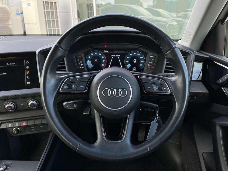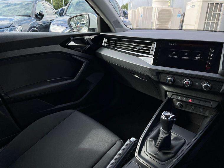 Black inlays polygon structure, Luggage compartment pack - A1, 15" 5 arm design alloy wheels, Anti theft alarm, Anti theft wheel bolts and loose wheel warning, Audi pre-sense front with pedestrain and cyclist recognition, Immobiliser, Remote central locking with 2 foldaway keys, 1 x SDXC card reader, 1 x USB type C and 1 USB type A charging points, 6 passive loudspeakers, DAB Digital radio, MMI radio plus with 8.8" colour MMI display screen and MMI touch, 3x3 point rear seatbelts, Brake assist function, Driver and front passenger airbag with front side and head airbags, Electronic Stability Control including ABS, EBD, ASR and EDL, Front and rear seatbelt reminder, Front passenger airbag deactivation switch, Hill hold assist, Seatbelt height adjustment for front seats, Seatbelt monitoring, Tyre pressure warning light, Warning triangle and first aid kit, Auto dimming rear view mirror, Body coloured bumpers, Body coloured door mirrors, Electric front and rear windows, Electrically adjustable, heated, folding door mirrors with integrated LED side indicator, Front side air inlets with front spoiler lip and rear diffuser in matt black grained, Heat insulating glass windscreen and side windows, Heated rear windscreen, LED headlights with LED rear lights + dynamic rear indicators + headlight adjustment and high beam, turning light + LED daytime running lights, Radiator grille in matt black, Rain and light sensors, Rear fog lights, Rear wiper, 12V socket in centre console with two cup holders, 3 rear seats with headrests, 3 spoke leather multifunction plus steering wheel, 40:60 Split folding rear seat or folded fully, Air vents, door handle recesses and centre console in black, Delta cloth upholstery, Driver and passenger seat with manual height adjust with forward and backwards adjustment, Front head restraints, Front/rear floor mats, ISOFIX child seat mounting for front passenger and outer rear seats including top tether attachment point of outer rear seats, Leather gear knob with aluminium trim, Leatherette handbrake grip, Luggage compartment light with front and rear reading lights, Manual air conditioning, Titanium grey cloth headlining, 10.25" Digital instrument cluster display classis style instrument dials + speed, odometer, time, outside temperature, telephone menu + fuel level warning, Audi connect safety emergency and service including E-call, Audi smartphone interface with connect compatible smartphone via USB directly MMI display + Nav, music, third party apps controlled via MMI controller, Automatic start/stop system, Bluetooth interface, Driver's information system, Electromechanical power steering, Lane departure warning system, Service interval indicator, Speed limiter, Voice control system, Washer fluid level indicator, Dynamic suspension,