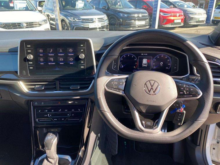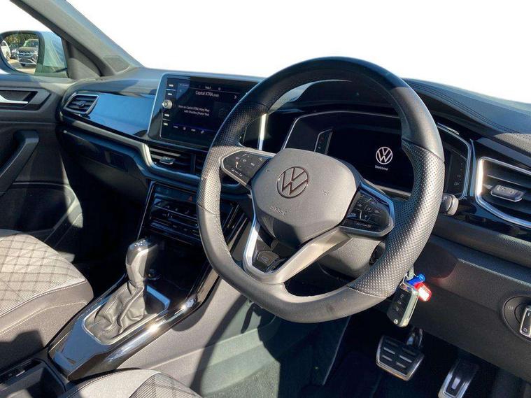 10.25" Digital cockpit pro, Bluetooth mobile phone interface, Driver alert system with fatigue detection, Driver tips and journey analysis, Emergency call service, Lane keeping system Lane Assist, Modified key software - reduce switch off time for key status change to Long no motion, Online services, Park assist including front and rear parking sensors, Service interval indicator, Tailgate/trunk lid release from outside, Think blue trainer driver tips and journey analysis, Warning sound and light for front seatbelts unfastened, Wireless app connect, Battery regeneration during braking, Start/stop function with battery regeneration, Diversity antenna for FM reception, Front and rear 6 speakers, Music playback - MP3, WMA and AAC files, Premium USB cable in choice of either Apple or Android smartphone compatibility, SD card slot, Simultaneous pairing of 2 compatible mobile devices, Title and cover art display, We Connect and We Connect Plus functionality, 3rd brake light, Auto dimming interior rear view mirror, Automatic hazard lights activation under emergency braking, Automatic headlight control with LED separate daytime running lights with coming/leaving home function, Extended roof spoiler, Exterior mirrors aspherical on driver side, convex on front passenger side, External USB type C socket and charging sockets, Front windscreen wiper with intermittent wipe and 4 position delay, Heated rear window, LED Plus headlamps, LED rear combination lamps, LED rear number plate lights, LED tail lamp rear comination lamps, Power windows with comfort operation and circuit breaker, R-Line design body coloured bumpers, Rain sensor, Rear exhaust tailpipe, Rear fog light on one side and reversing lights on both sides, Rear side wing doors, Rear wash/wipe with intermittent wipe setting, Remote electrically foldable door mirrors, puddle lights and reverse activated passenger's door mirror, 12V power socket in centre console, 3 rear head restraints, 3 seat bench in 2nd row, 4 load lashing points in luggage compartment, Air care climatronic air conditoning system with active combination filter and 2-zone temperature control, Black roof lining, Chrome plated radiator grille inserts, air vent surrounds and light switch surrounds, Door and side trim panel with leatherette insert, Drawer under drivers seat, Front + rear carpet mats, Front centre armrest, Front cupholders x 2, Front footwell illumination, Front reading light, Front scuff plates with R logo, Instrument lighting, white adjustable panel illumination, Interior ambient lighting and surround lighting, Interior light delay, Isofix child seat preparation, Leather gearshift handle, Load-through provision with cup holder when folded down ('Unsplit rear seat bench, split folding backrest, with centre armrest), Luggage compartment lighting, Single front passenger seat, Stainless steel pedals, Storage compartment in left and right luggage area, Storage compartment in rear doors, Storage compartments in driver and front passenger doors, Sunvisors with illuminated vanity mirrors, Variable boot floor, height adjustable and removable, Driver assistance pack without proactive passenger protection - T-Roc, 3 point height adj front seatbelts + pretensioners, 3 point seatbelts in outer rear with ECE label, ABS, Child locks on rear doors, Driver and front passenger airbag with front passenger airbag deactivation, Driver and front passenger safety-optimised head restraints, Drivers seatbelt reminder, Electronic parking brake, Electronic Stability Control (ESC) inc EDL (Electronic Differential Lock) and ASR (Traction Control), Front and rear passengers curtain airbag system including front side airbags, Front assist with city emergency braking and pedestrian monitoring, Front seat side impact airbags, Hill start assist, Predictive pedestrian protection, Rear disc brakes, Single tone horn, Tyre pressure loss indicator, Volkswagen roadside assistance, Alarm with interior protection, Anti-theft alarm system with interior monitoring, backup horn, and towing protection, Remote central locking with SAFELOCK, radio remote control with 2 remote control folding keys, Trims for alloy wheels,
