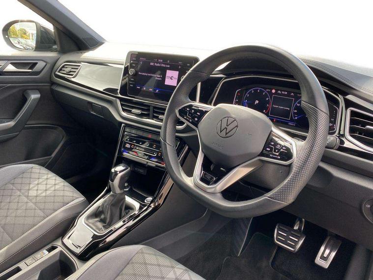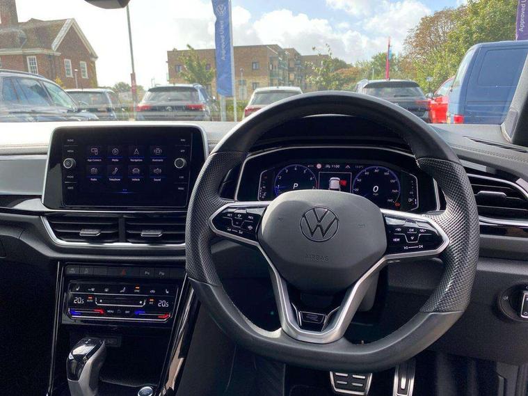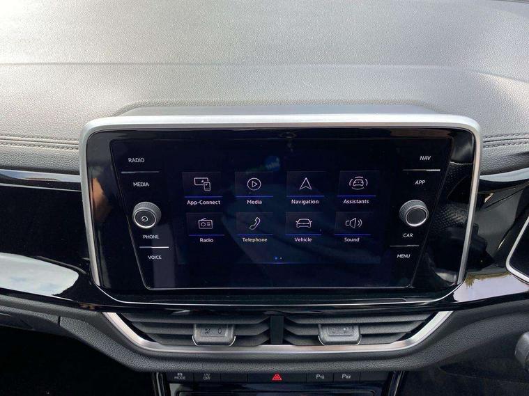10.25" Digital cockpit pro, Bluetooth mobile phone interface, Driver alert system with fatigue detection, Driver tips and journey analysis, Emergency call service, Lane keeping system Lane Assist, Modified key software - reduce switch off time for key status change to Long no motion, Online services, Park assist including front and rear parking sensors, Service interval indicator, Tailgate/trunk lid release from outside, Think blue trainer driver tips and journey analysis, Warning sound and light for front seatbelts unfastened, Wireless app connect, Battery regeneration during braking, Start/stop function with battery regeneration, Diversity antenna for FM reception, Front and rear 6 speakers, Music playback - MP3, WMA and AAC files, Premium USB cable in choice of either Apple or Android smartphone compatibility, SD card slot, Simultaneous pairing of 2 compatible mobile devices, Title and cover art display, We Connect and We Connect Plus functionality, 3rd brake light, Auto dimming interior rear view mirror, Automatic hazard lights activation under emergency braking, Automatic headlight control with LED separate daytime running lights with coming/leaving home function, Extended roof spoiler, Exterior mirrors aspherical on driver side, convex on front passenger side, External USB type C socket and charging sockets, Front windscreen wiper with intermittent wipe and 4 position delay, Heated rear window, LED Plus headlamps, LED rear combination lamps, LED rear number plate lights, LED tail lamp rear comination lamps, Power windows with comfort operation and circuit breaker, R-Line design body coloured bumpers, Rain sensor, Rear exhaust tailpipe, Rear fog light on one side and reversing lights on both sides, Rear side wing doors, Rear wash/wipe with intermittent wipe setting, Remote electrically foldable door mirrors, puddle lights and reverse activated passenger's door mirror, 12V power socket in centre console, 3 rear head restraints, 3 seat bench in 2nd row, 4 load lashing points in luggage compartment, Air care climatronic air conditoning system with active combination filter and 2-zone temperature control, Black roof lining, Chrome plated radiator grille inserts, air vent surrounds and light switch surrounds, Door and side trim panel with leatherette insert, Drawer under drivers seat, Front + rear carpet mats, Front centre armrest, Front cupholders x 2, Front footwell illumination, Front reading light, Front scuff plates with R logo, Instrument lighting, white adjustable panel illumination, Interior ambient lighting and surround lighting, Interior light delay, Isofix child seat preparation, Leather gearshift handle, Load-through provision with cup holder when folded down ('Unsplit rear seat bench, split folding backrest, with centre armrest), Luggage compartment lighting, Single front passenger seat, Stainless steel pedals, Storage compartment in left and right luggage area, Storage compartment in rear doors, Storage compartments in driver and front passenger doors, Sunvisors with illuminated vanity mirrors, Variable boot floor, height adjustable and removable, Driver assistance pack without proactive passenger protection - T-Roc, 3 point height adj front seatbelts + pretensioners, 3 point seatbelts in outer rear with ECE label, ABS, Child locks on rear doors, Driver and front passenger airbag with front passenger airbag deactivation, Driver and front passenger safety-optimised head restraints, Drivers seatbelt reminder, Electronic parking brake, Electronic Stability Control (ESC) inc EDL (Electronic Differential Lock) and ASR (Traction Control), Front and rear passengers curtain airbag system including front side airbags, Front assist with city emergency braking and pedestrian monitoring, Front seat side impact airbags, Hill start assist, Predictive pedestrian protection, Rear disc brakes, Single tone horn, Tyre pressure loss indicator, Volkswagen roadside assistance, Alarm with interior protection, Anti-theft alarm system with interior monitoring, backup horn, and towing protection, Remote central locking with SAFELOCK, radio remote control with 2 remote control folding keys, Trims for alloy wheels,
