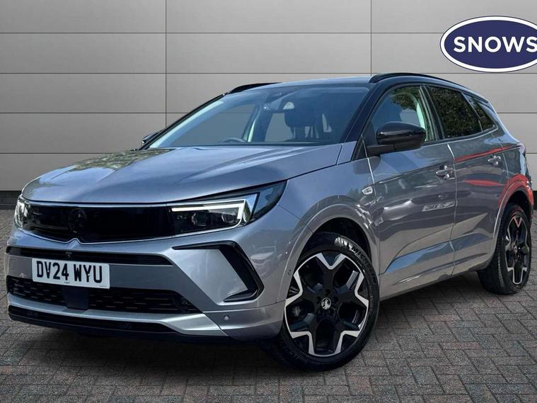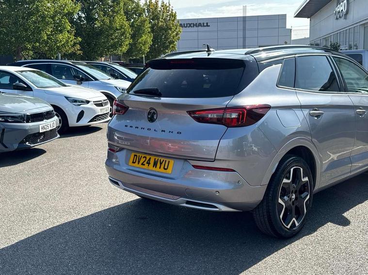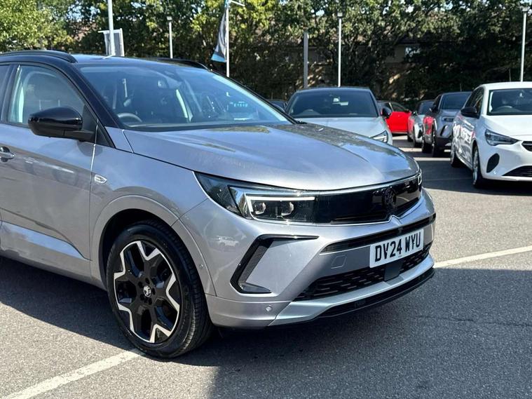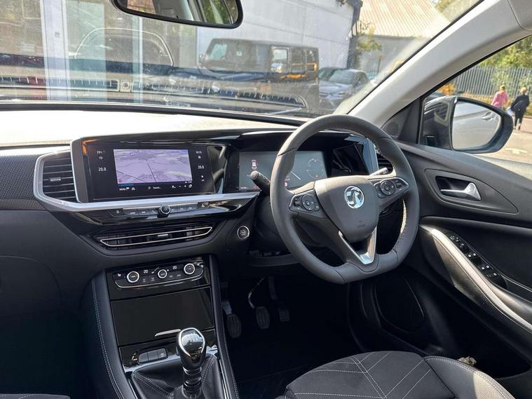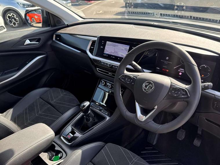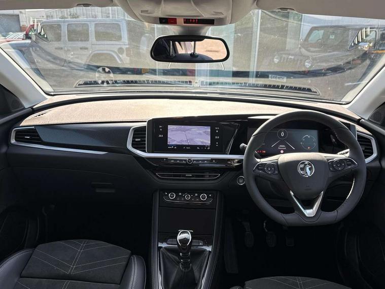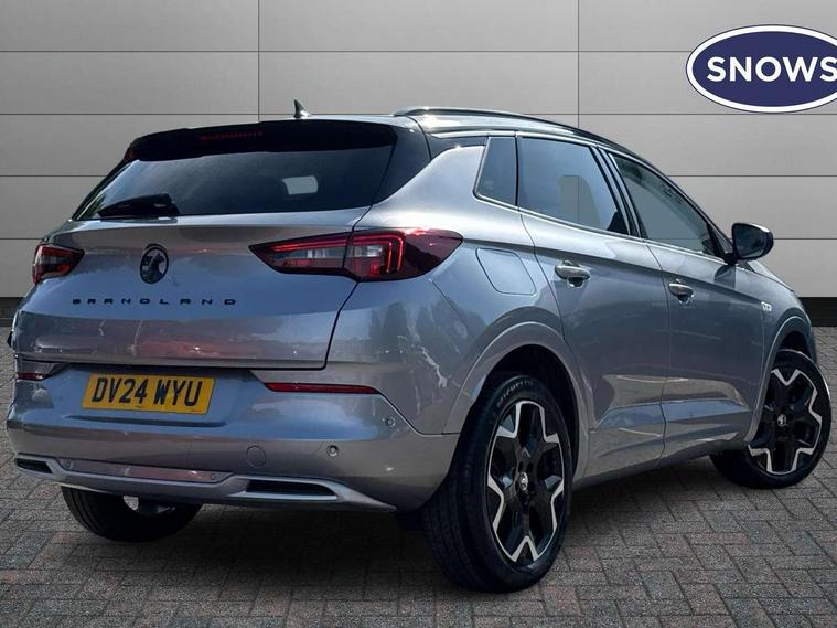 Bluetooth + USB, Central facia display with digital clock, outside air temperature and audio information, Cruise control with speed limiter, Digital fuel gauge with low fuel level warning light, Digital rev counter, Digital speedometer, Digital water temperature gauge with warning light, Driver drowsiness alert system, Driver information - Total mileage, service indicator, oil life, Front and rear parking distance sensors with 360 degree rear view camera and advanced park assist, Gearshift up/down indication light, Lane departure warning system, Lane keep assist, Lights on audible warning, Multi function trip computer - Trip odometer, vehicle range, average speed and fuel economy, instantaneous fuel economy and driving time, Multimedia Pure Panel Navigation System incl 10" colour touchscreen, 12" digital instrument cluster & satellite naviagtion, Power operated tailgate with foot sensor, RDS with traffic programme, Side blind spot alert, Speed sensitive electric power assisted steering, Speed sign recognition, Start/stop system, Vauxhall connect including Emergency call (SOS e-call) and Breakdown call (b-call), Wireless charger for mobile devices, Anti-roll bars, Compound crank rear suspension with coil springs and gas pressure dampers, Independent decoupled MacPherson strut front suspension with gas pressure dampers and coil springs, AM/FM and DAB radio, Six speaker - four front + two rear, Smartphone interface with apple carplay and android auto, Steering wheel mounted audio/phone/cruise controls, Automatic lighting control, Automatically dimming anti dazzle rear view mirror, Black door mirrors, Black side window trim, Body colour door handles, Body colour upper front bumper, Carbon black lower front and rear bumpers, protective wheel arches and lower door cladding, Collapsible windscreen wipers, Dark tinted rear windows, Door to door illumination, Electric adjustable/heated/folding door mirrors, Electrically operated front and rear windows with safety auto reverse and one touch up/down facility, Front wiper system spraying directly from wipers, Hazard warning lights, Heated rear screen with timed cut off, Heated windscreen, High beam assist, High gloss black cladding, High gloss black exterior detailing, High gloss black Griffin for Vizor and tailgate with high gloss black Grandland tailgate lettering, High gloss black protective front and rear skid plates and C-shape bumper inserts, High gloss black roof rails, High level centre rear brake light, IntelliLux adaptive LED pixel headlights and LED tail lights, Intermittent rear window wash/wipe, LED daytime running lights, LED front fog lights, Magic wash, Manual headlight beam levelling, Rain sensor windscreen wipers, Rear side wing doors, Rear spoiler, Reversing light, Shark fin aerial, Soundproof insulated windscreen, Two speed windscreen wipers with variable intermittent wipe, Upper and lower bumper design, Vizor front grille, Welcome lighting, 12V electrical accessory socket in front, 3 bench rear seats in 2nd row, 3 spoke heated flat bottom leather effect steering wheel with satin chrome effect bezel, 6 way adjustable Ergonomic active heated sports style front seats AGR approved with seat cushion extension and lumbar adjustment, 60/40 split folding rear seat with centre rear seat armrest and load though facility, Advanced predictive logic control system using a sun sensor, Alcantara cloth upholstery, Ambient centre console downlighter, Automatic air direction and fan speed with manual override, Black premium leather effect side bolsters, Charcoal filter, Chrome effect interior door handles, Covered storage compartment in centre console and in driver armrest, Driver's centre armrest, Driver/passenger sunvisors with illuminated vanity mirrors, Dual zone electronic climate control, Front door pockets with 2.6 litre capacity, Front seat back storage pockets, Fully carpeted luggage area, Height adjustable headrests, Illuminated luggage area, ISOFIX on front passenger and rear outer seats, Luggage compartment cover, Reach + rake adjustable steering column, Rear centre seat head restraint, Rear door pockets with 1.8 litre capacity, Rear passenger compartment heating ducts, Rear reading lights, Two drinks holders in centre console, Anti-lock braking system (ABS), Automatic emergency braking with pedestrian detection, Child proof locks on rear doors, CSC - Cornering stability control, Deactivation switch for front passenger front and side impact airbags, Deflation detection system, Driver airbag, Dual seatbelt pretensioners on front seats, EBD - Electronic brakeforce distribution, Electronic parking brake, Electronic stability program (ESP) including traction control, Front brake ventilated disc 304mm diameter, Front passenger airbag, Front seat side impact airbags, Full-size curtain airbags for driver and front passenger, Hill start assist, Hydraulic Brake Assist (HBA), Inertia reel lap and diagonal seatbelts for all seats, Load limiters on outer rear seatbelt retractors, Pretensioners on outer rear seatbelt retractors, Rear brake ventilated disc 268mm diameter, Smart seatbelt reminder for front and rear seats, Tyre pressure monitoring system, Central locking, Deadlocking system, Electronically protected audio equipment, Engine deadlock immobiliser, Keyless entry and start, Locking wheel nuts, Remote security alarm system, Black door panels with black premium leather effect inserts, Dax decor facia panel with palladium medium finish, 19" diamond cut bi-colour alloy wheel,
